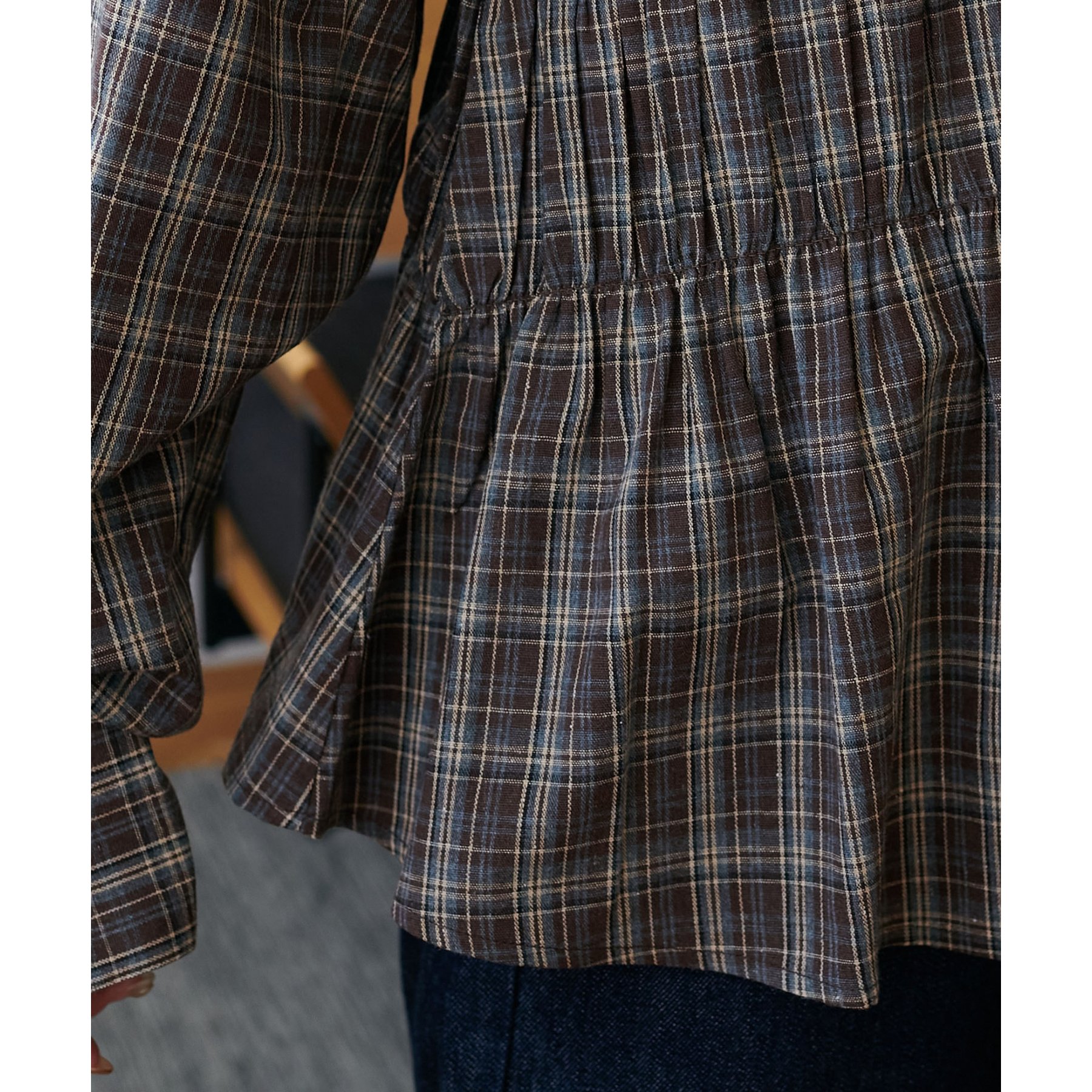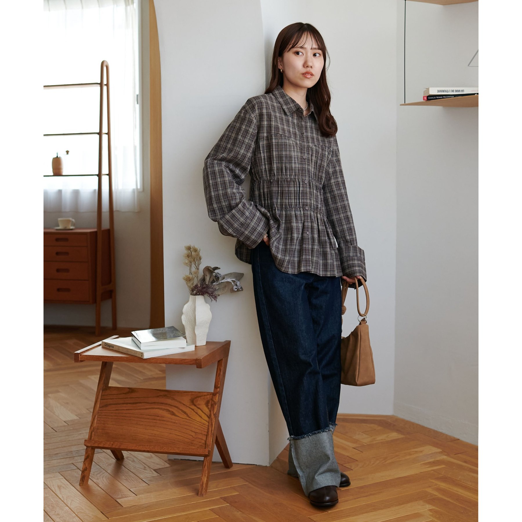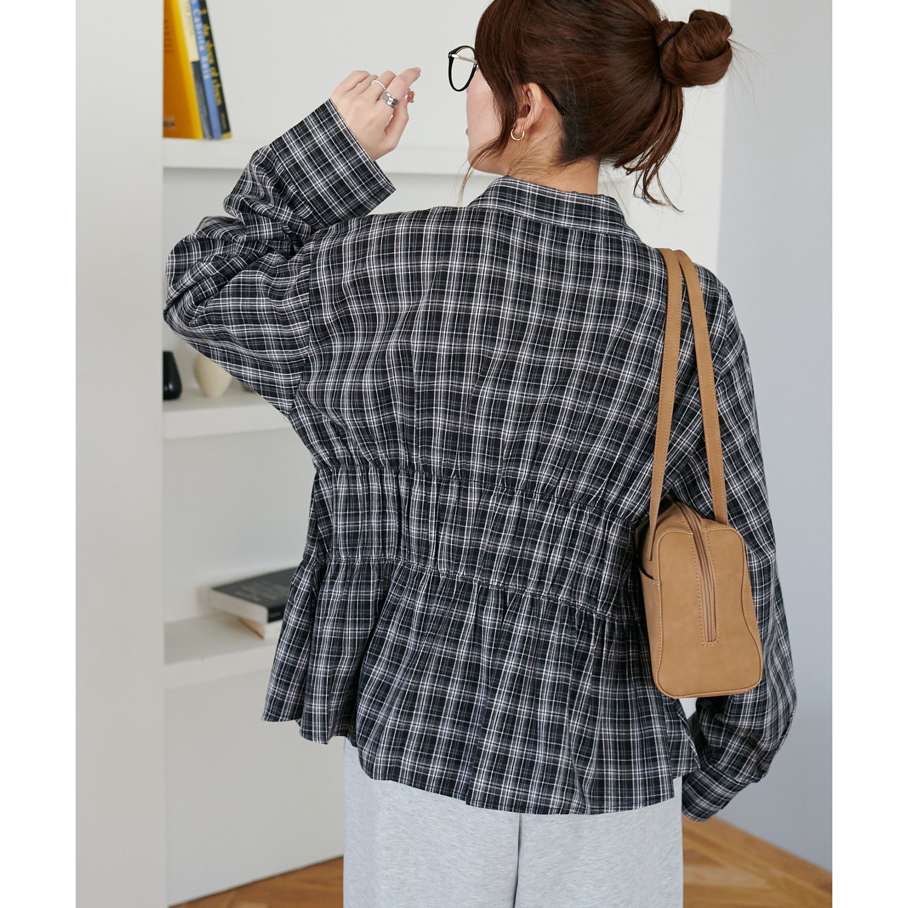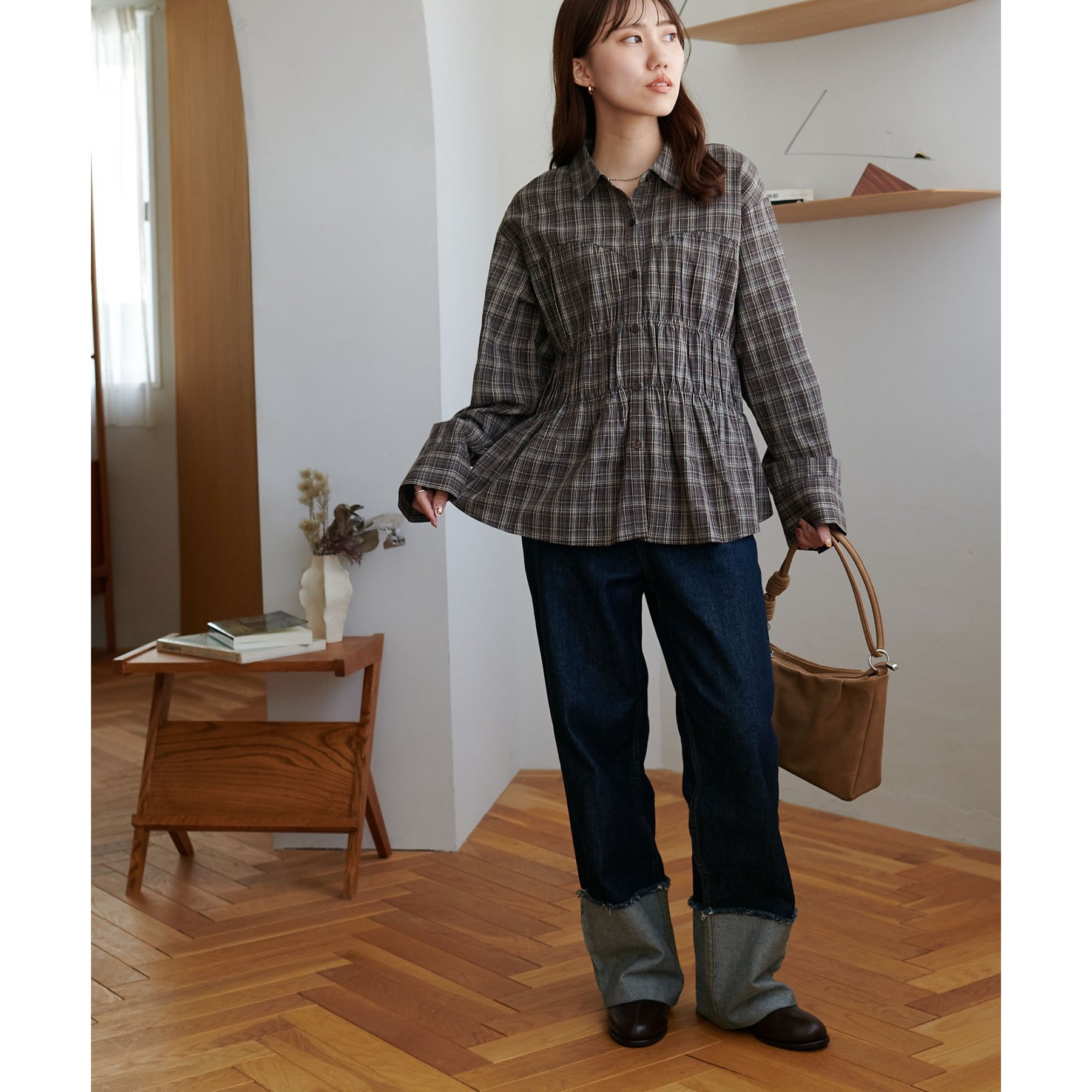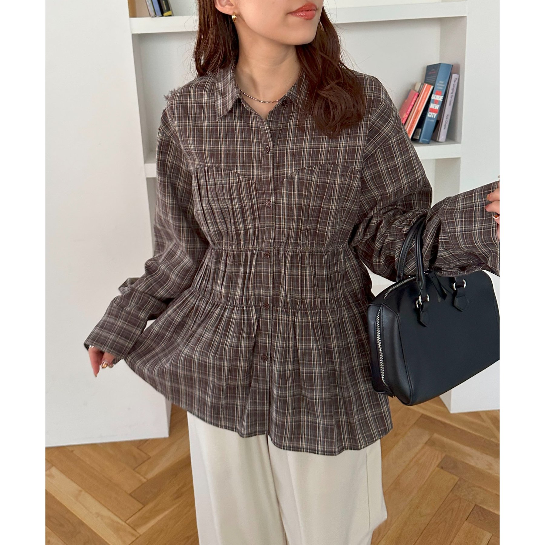 柔らかなシルエットが女性らしい、シャーリングチェックシャツ