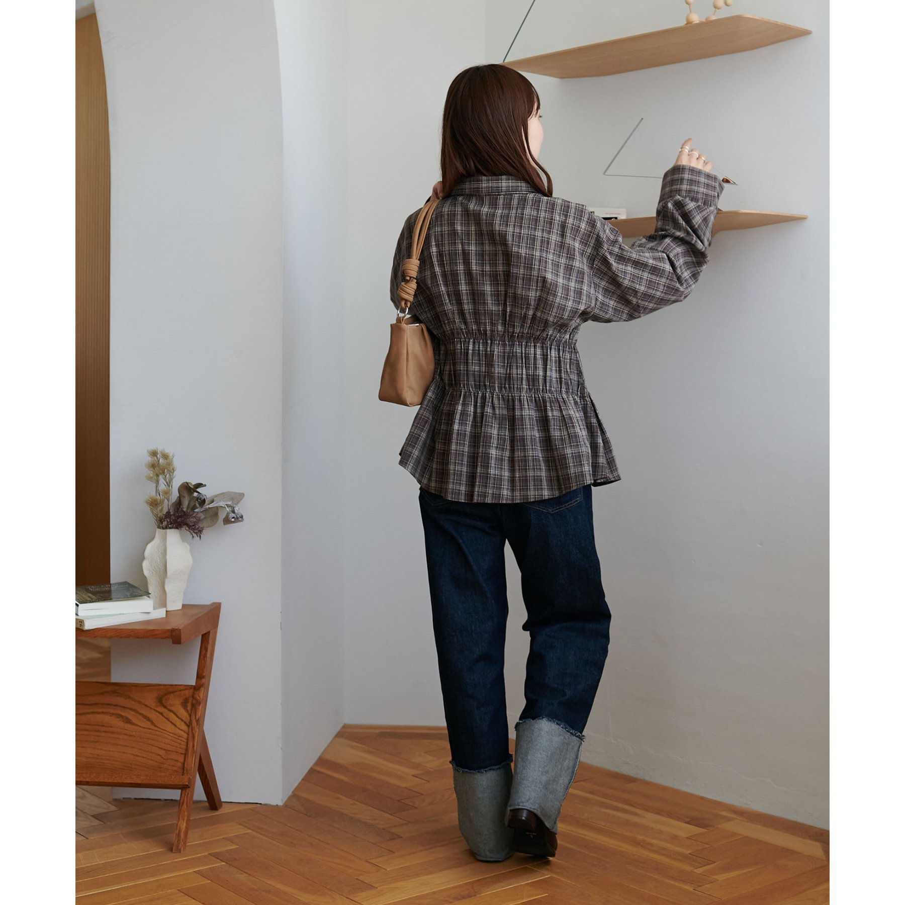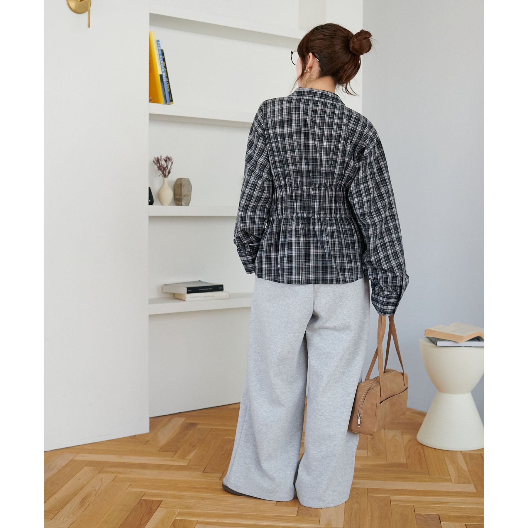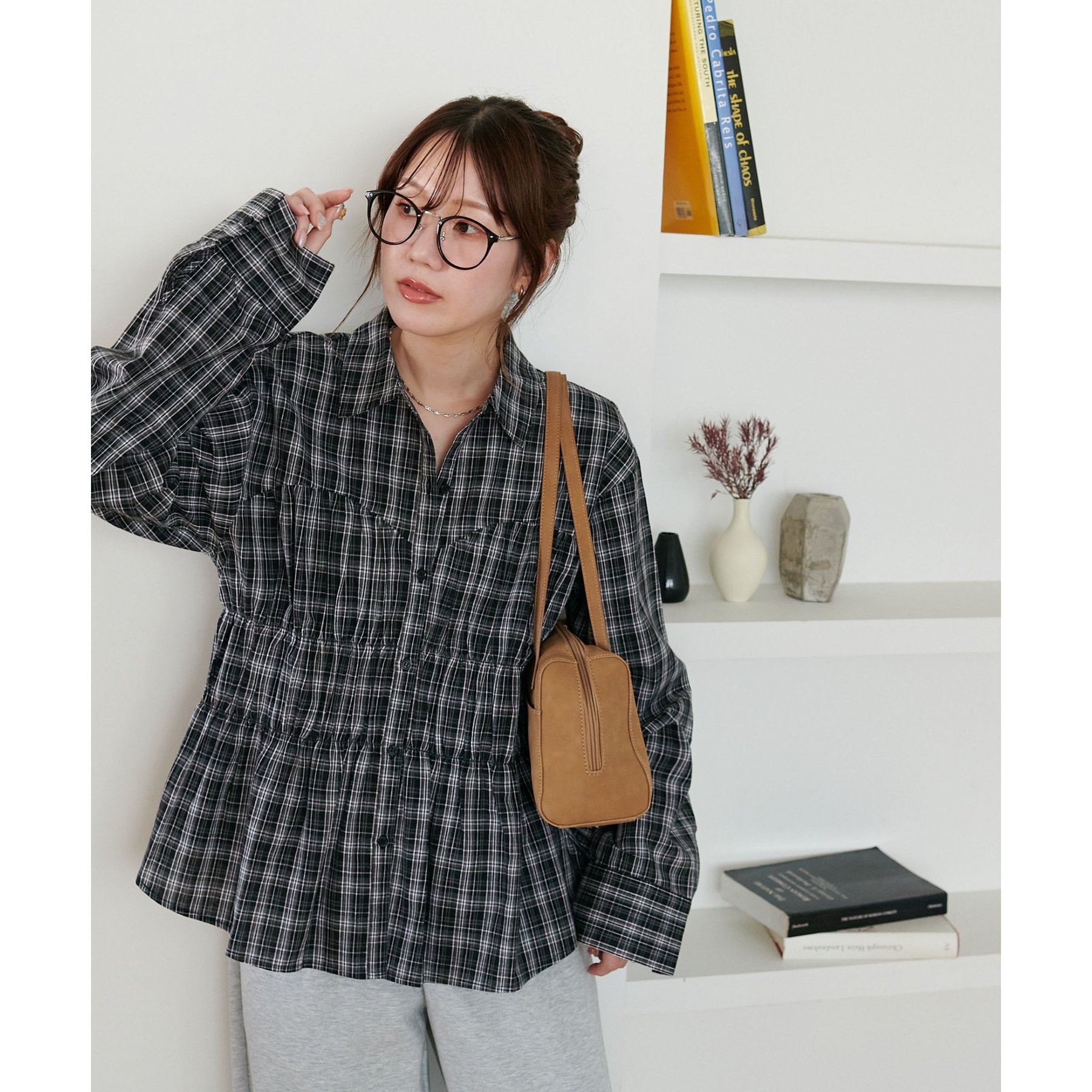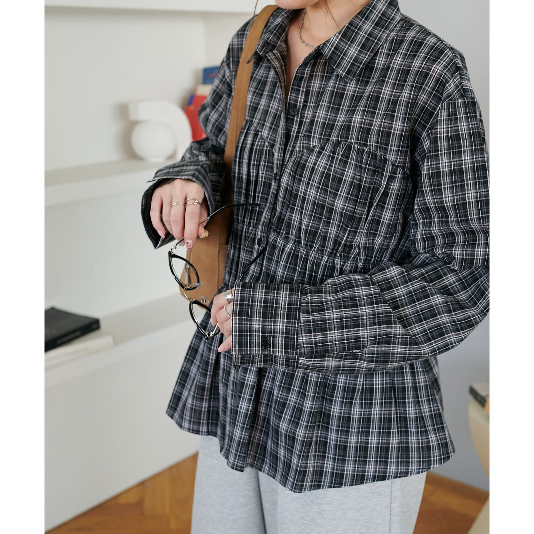 柔らかなシルエットが女性らしい、シャーリングチェックシャツ