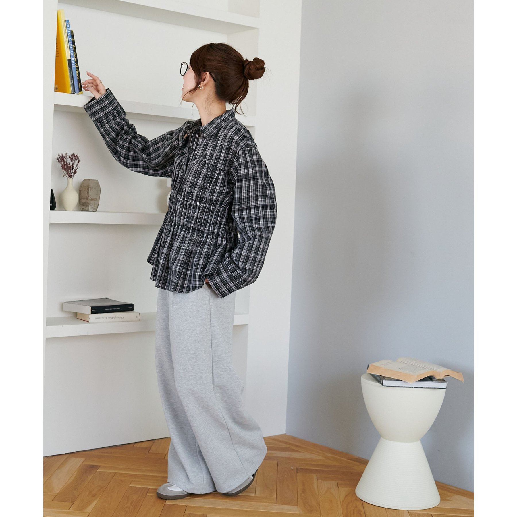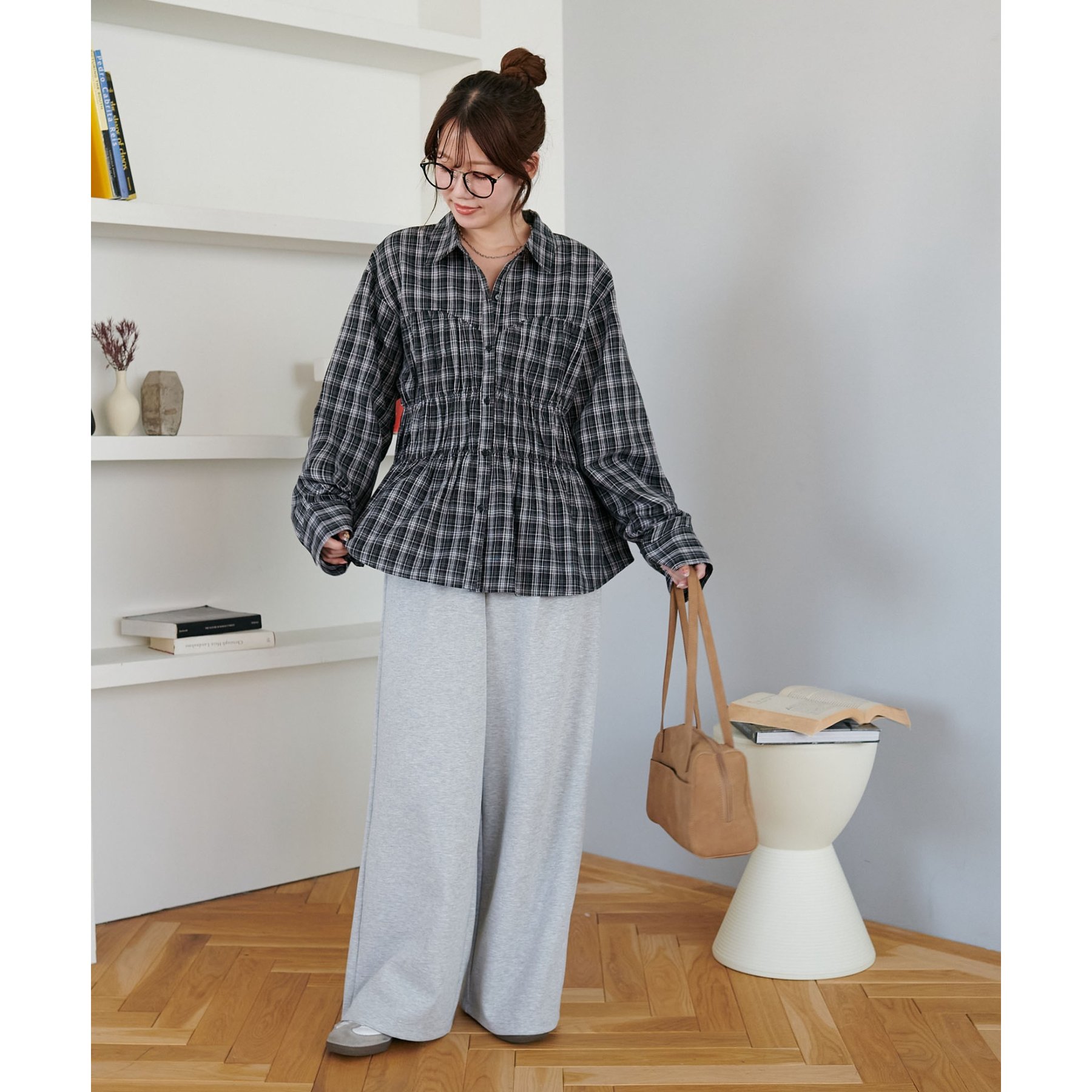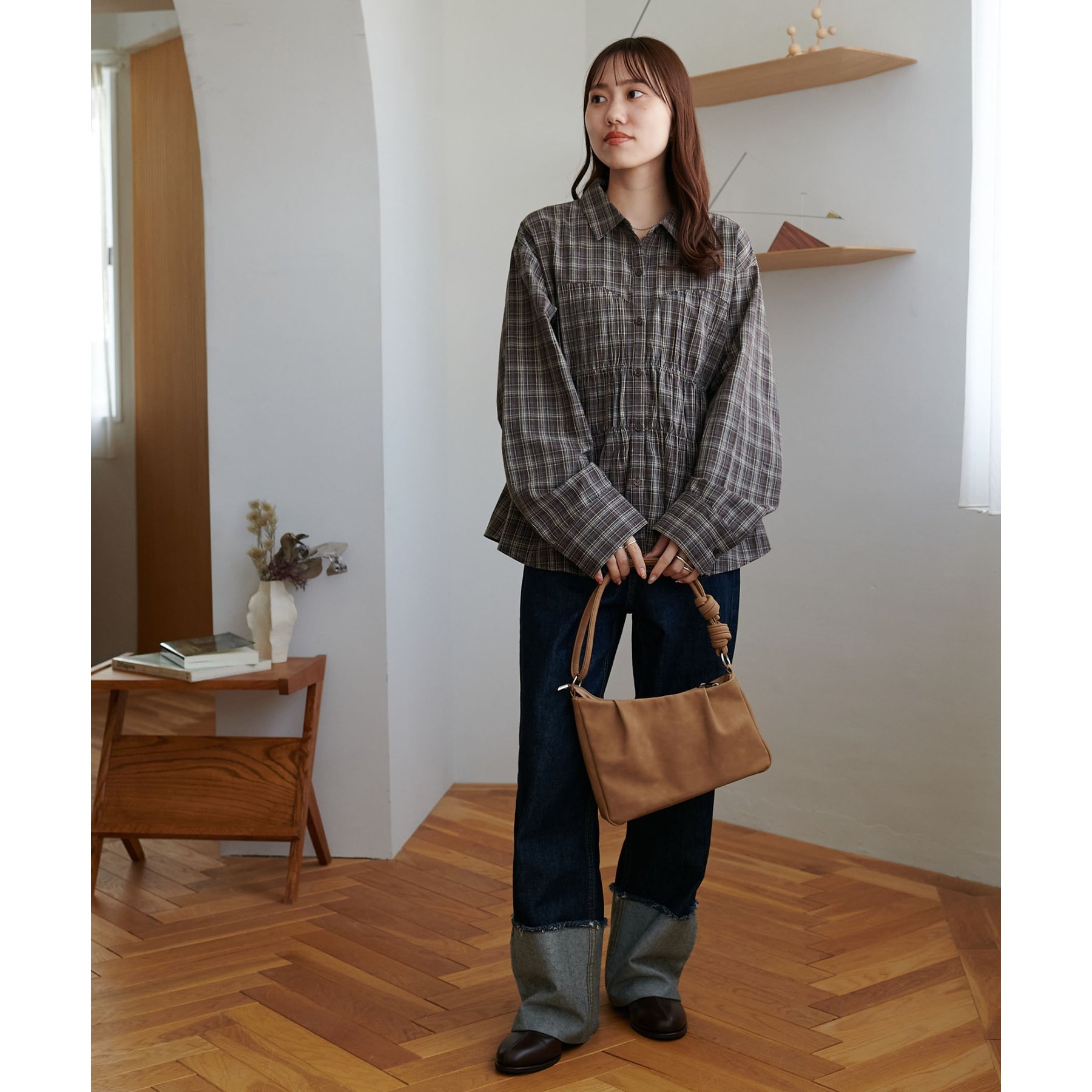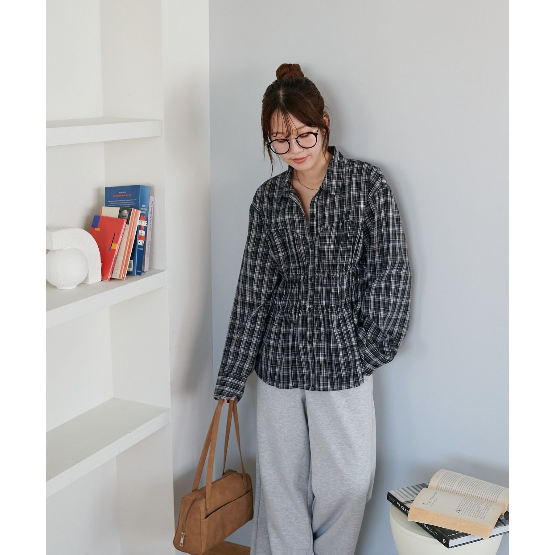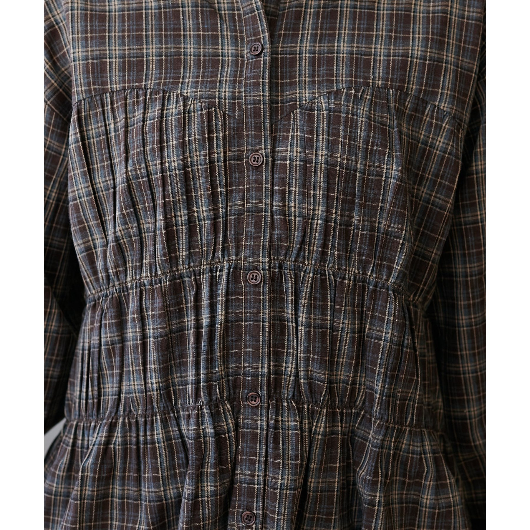 柔らかなシルエットが女性らしい、シャーリングチェックシャツ