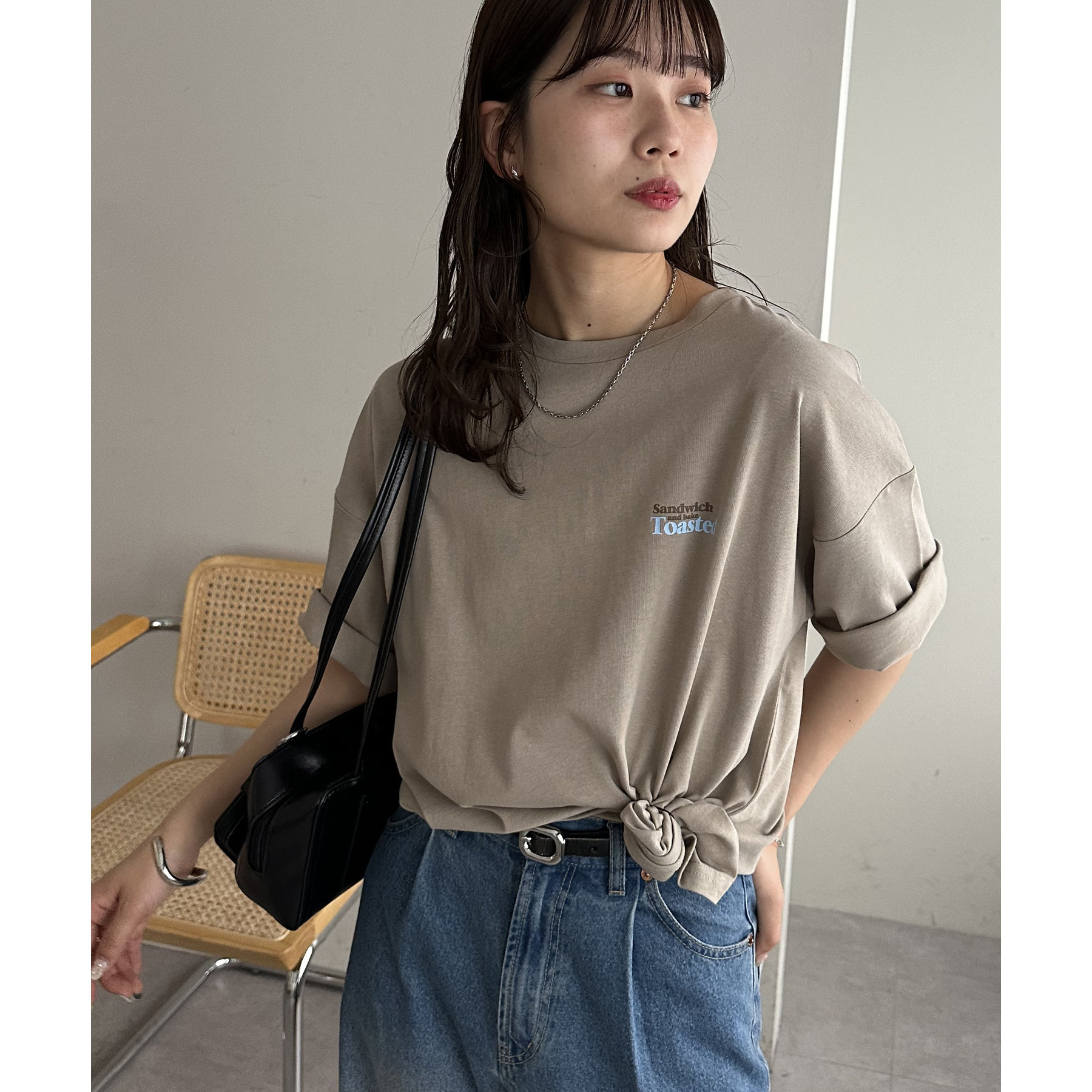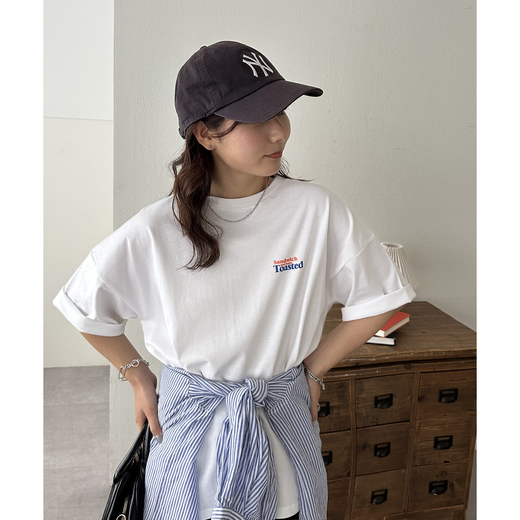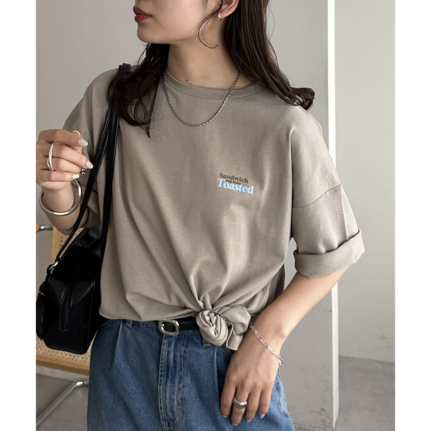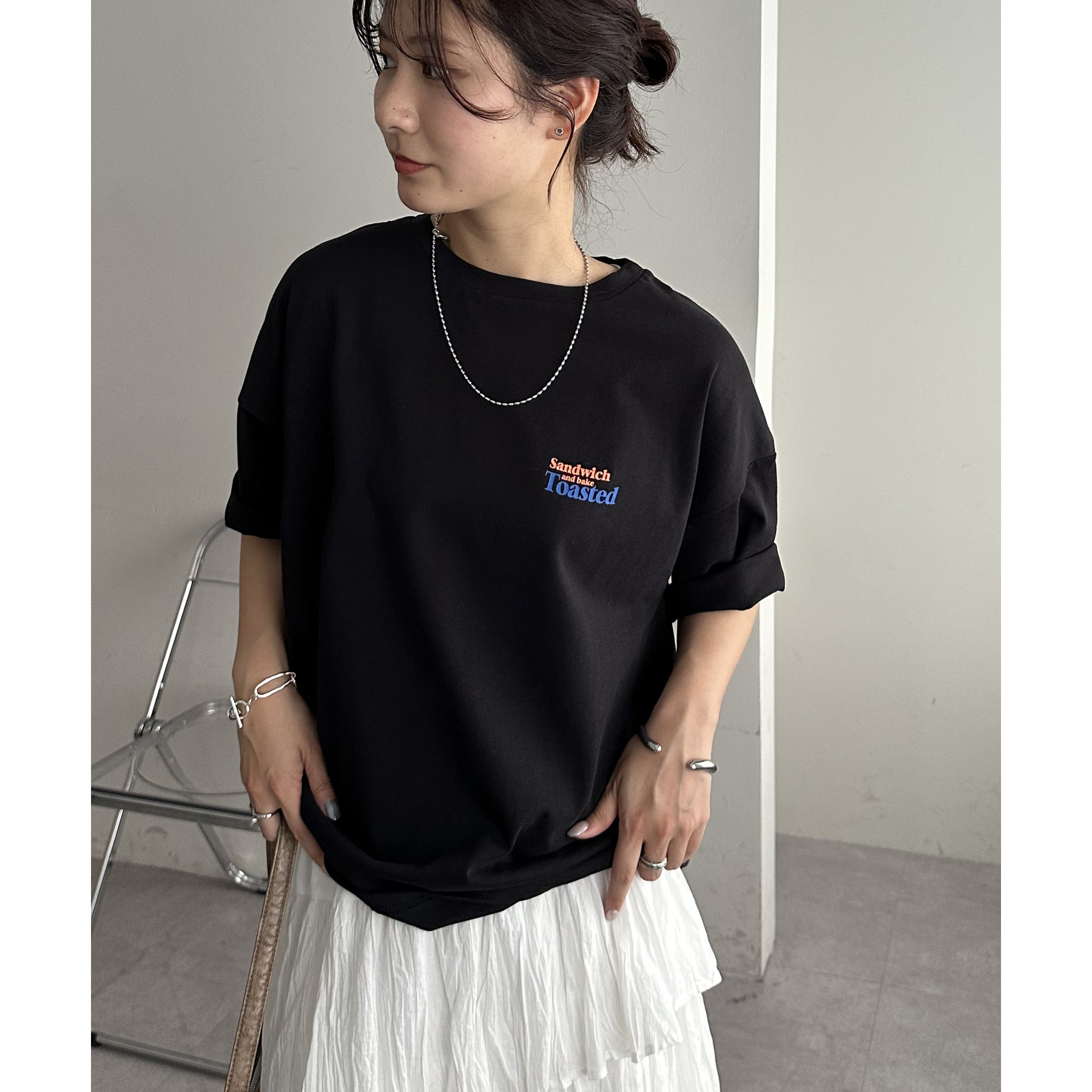 162cmスタッフ:袖のロールアップやイン・アウトで着こなしの幅が広がります!全体的にゆったりしていて、メンズライクにも着られるTシャツです。