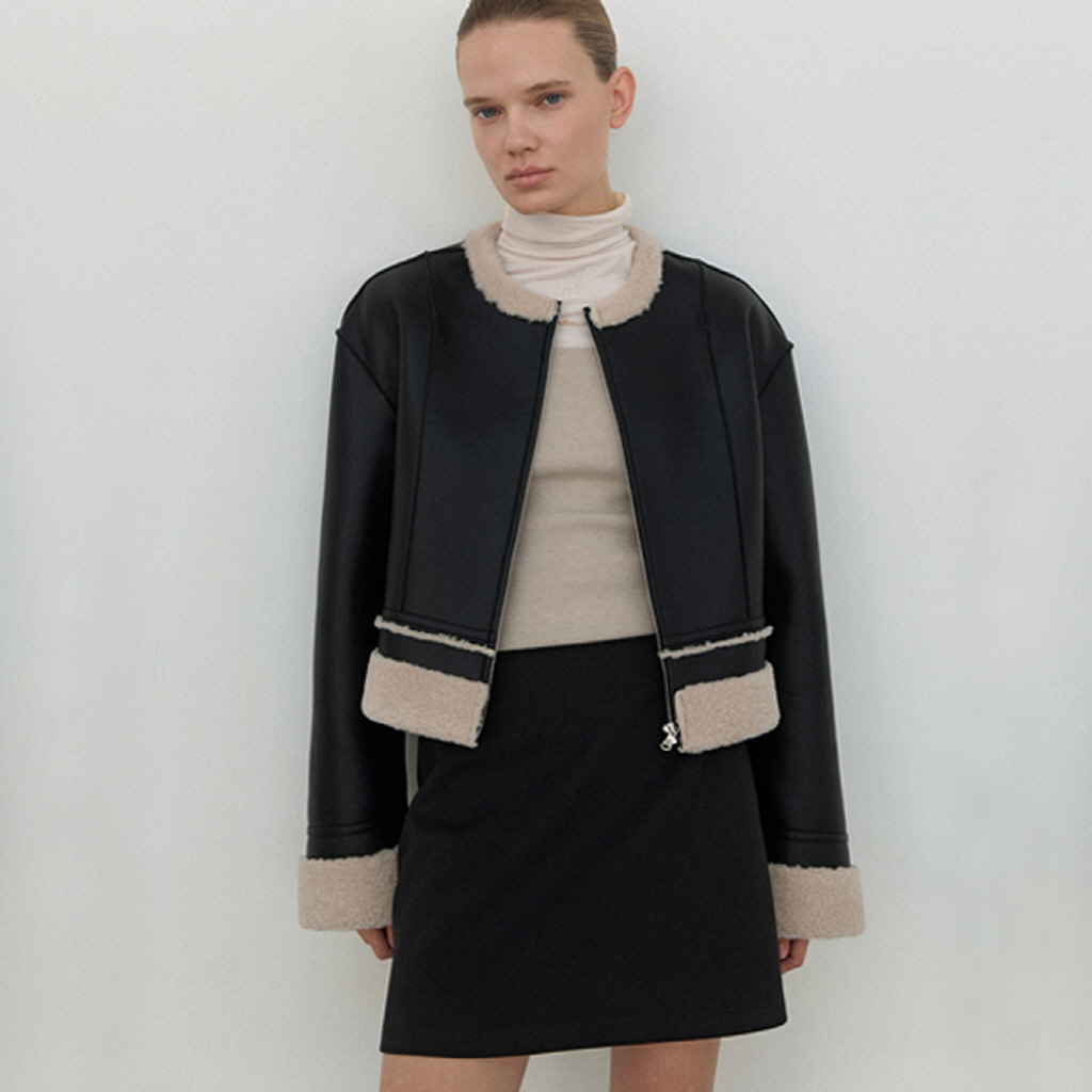 (JK-2999)VEGAN MUSTANG CROP JACKET
