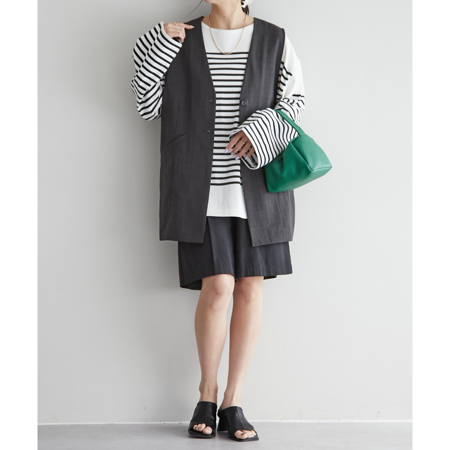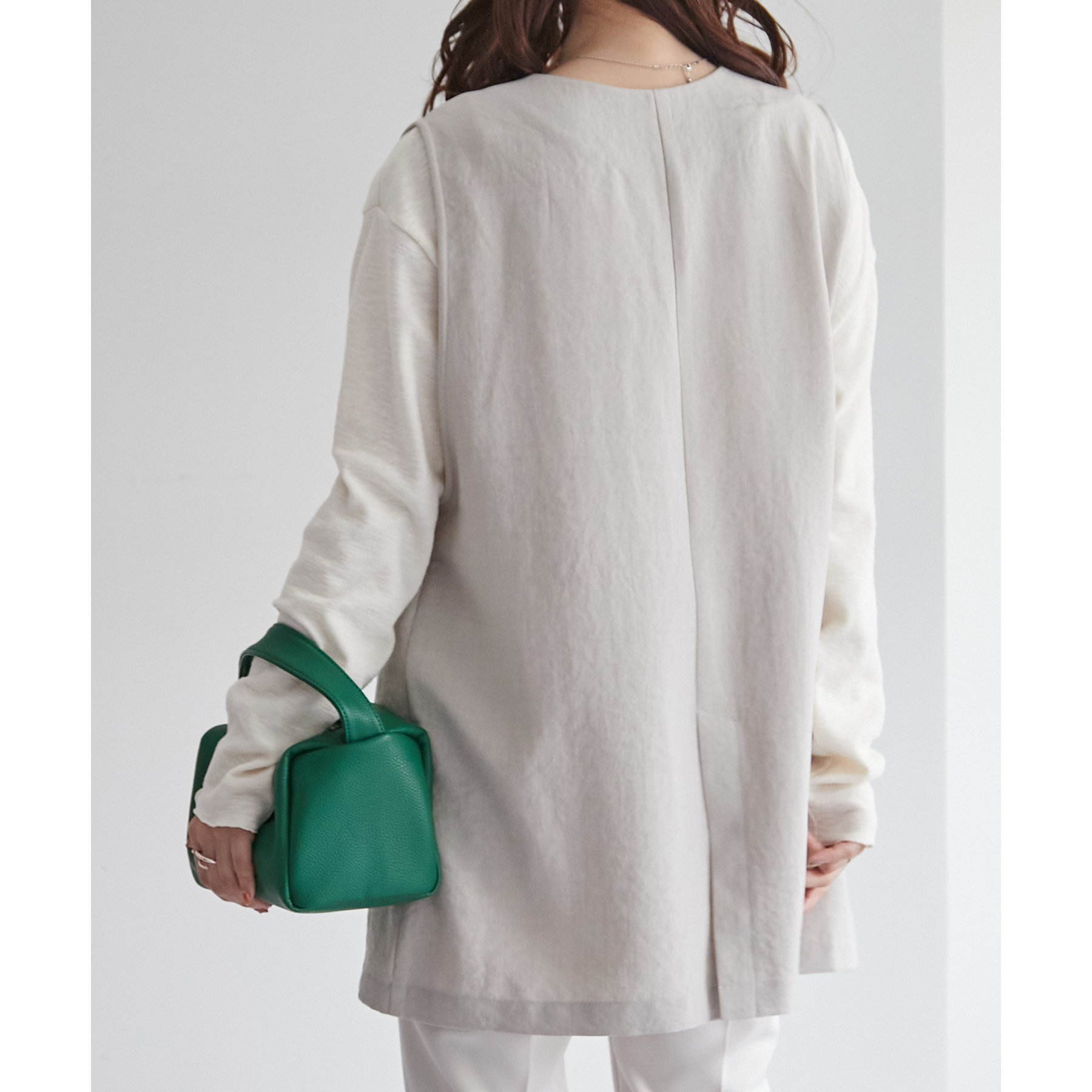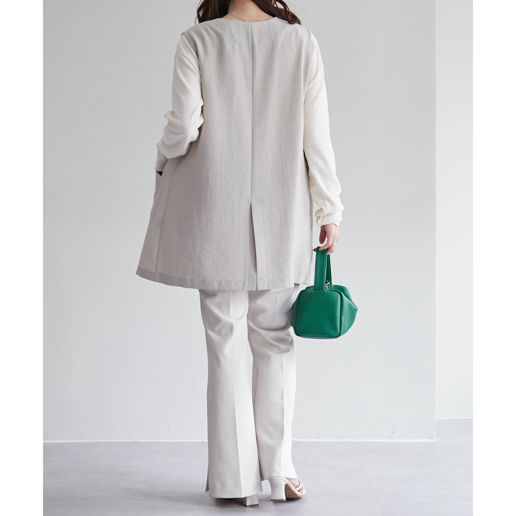 ノーカラーに、ヒップが隠れる着丈で様々なボトムスとバランスの良い仕上がりに◎