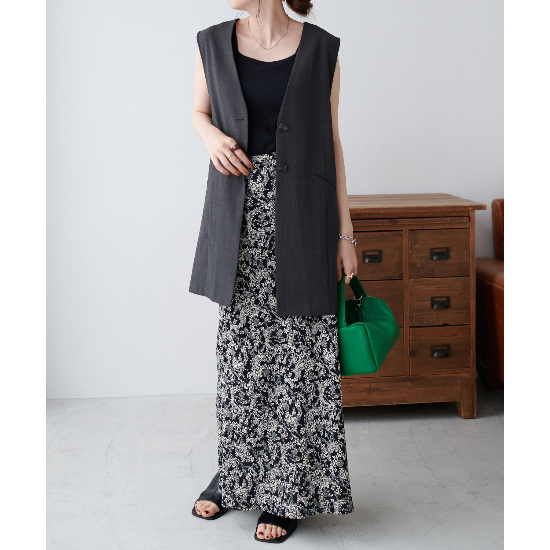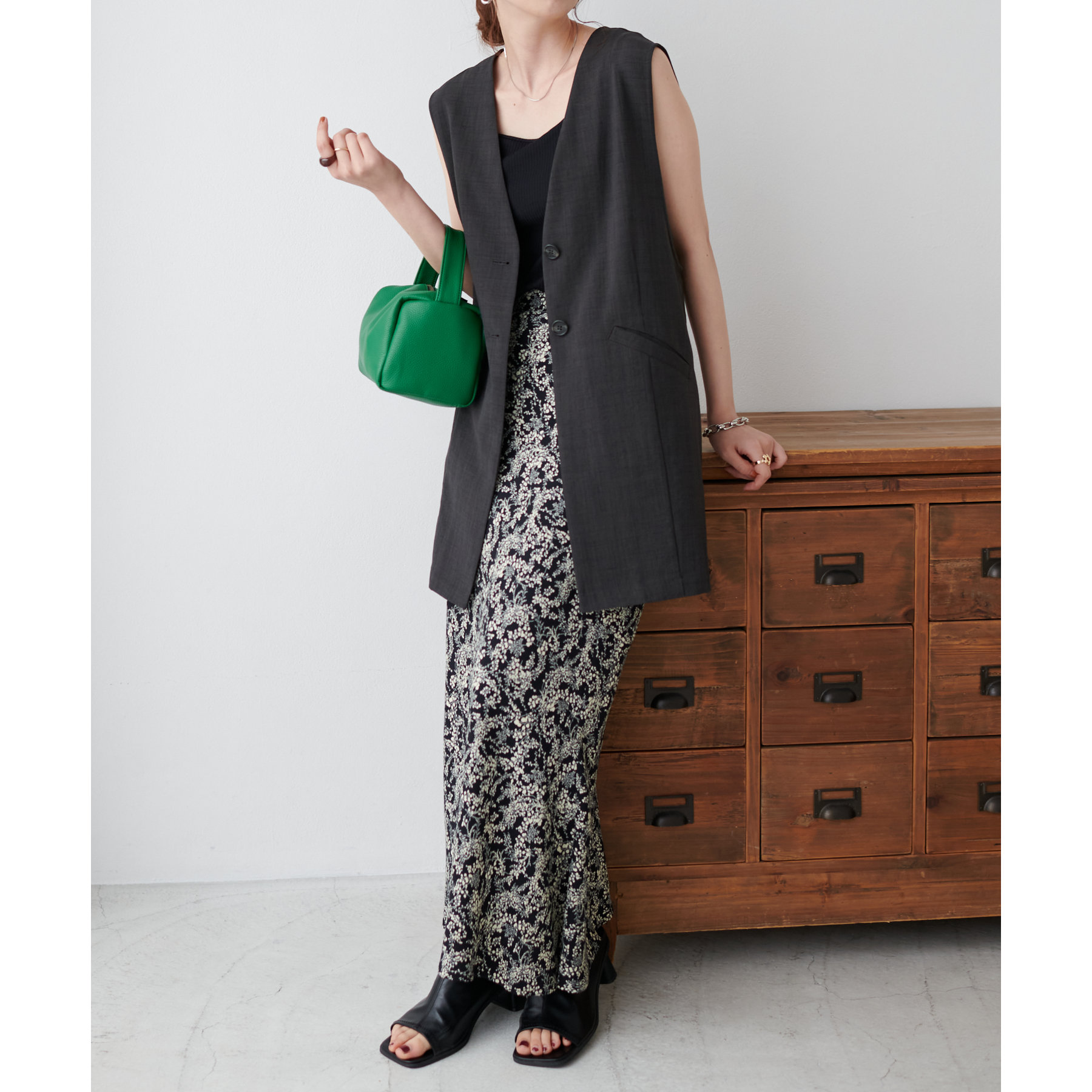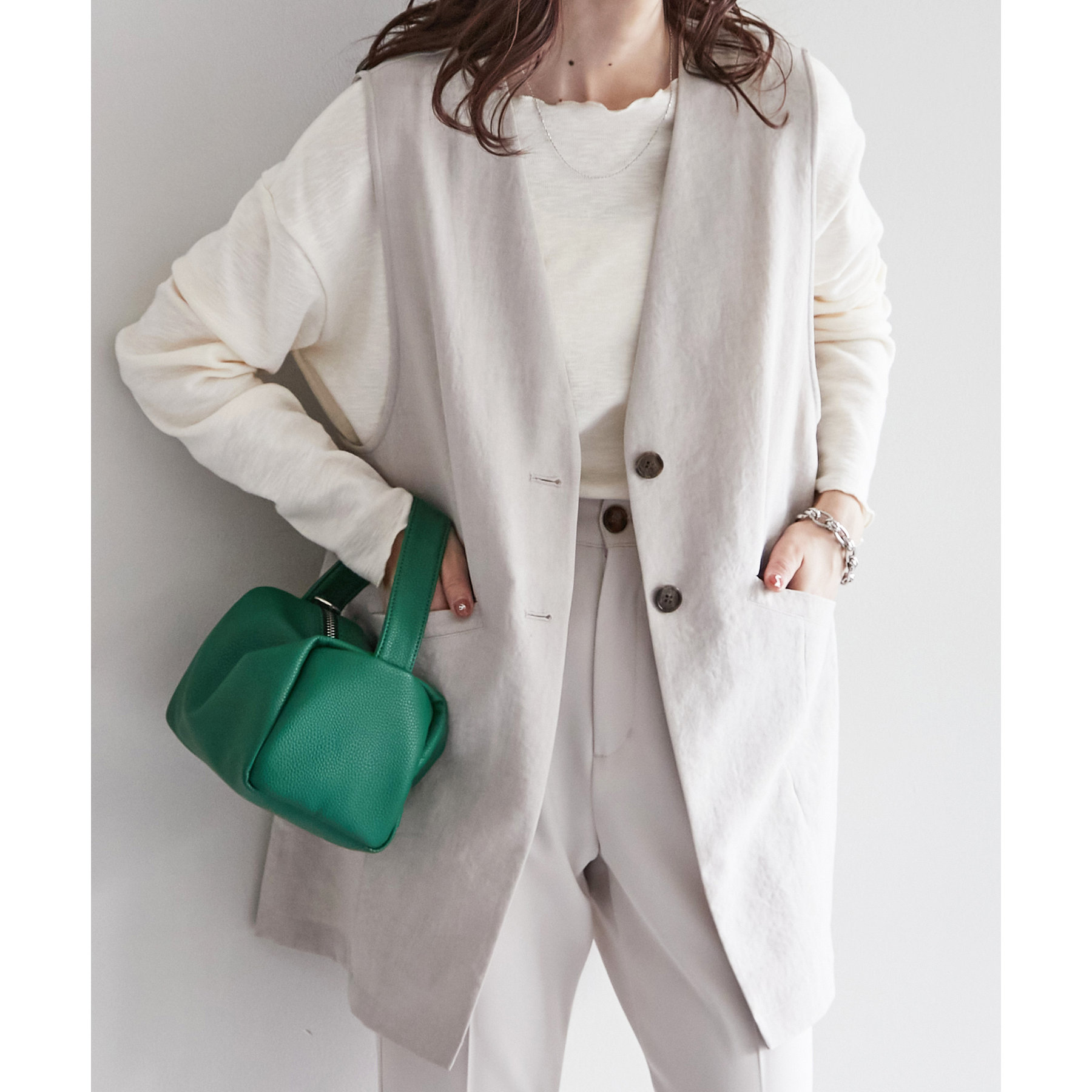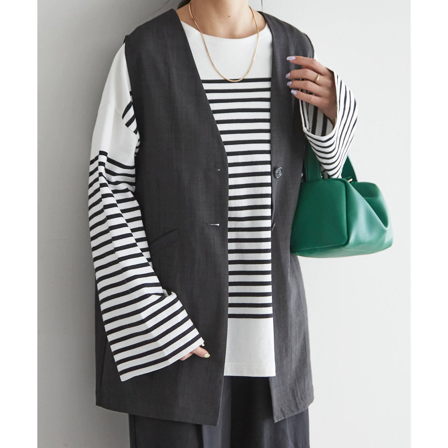 ノーカラーに、ヒップが隠れる着丈で様々なボトムスとバランスの良い仕上がりに◎
