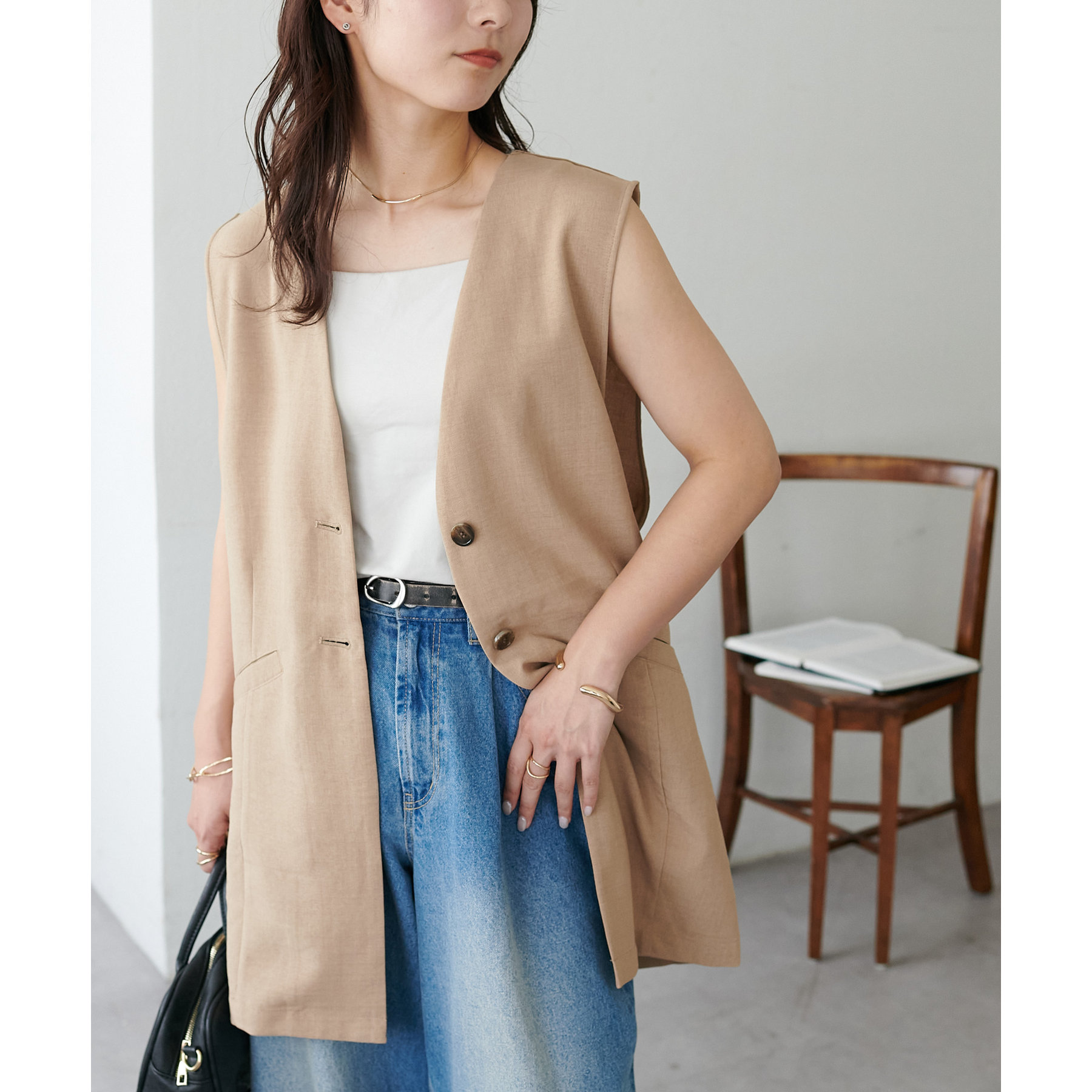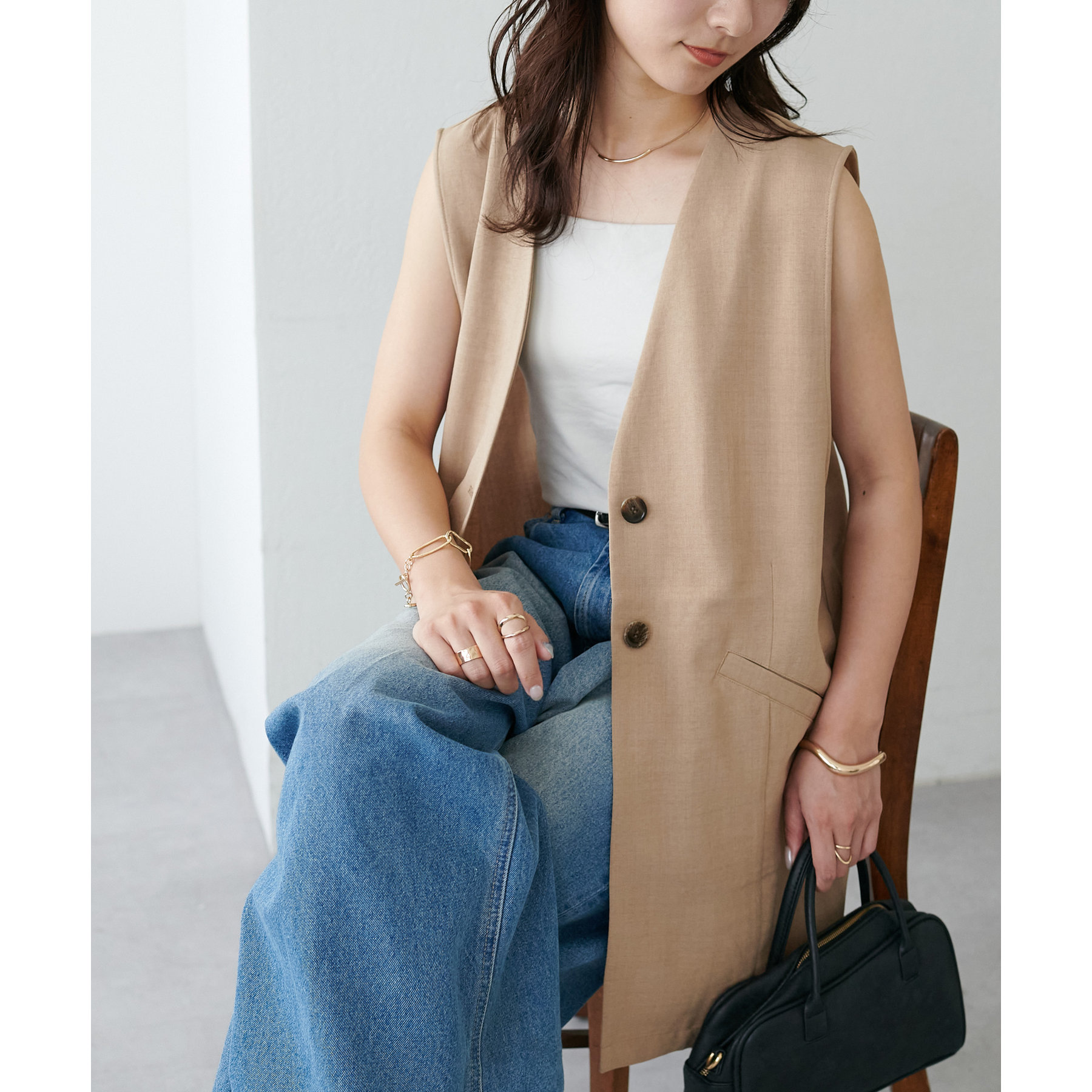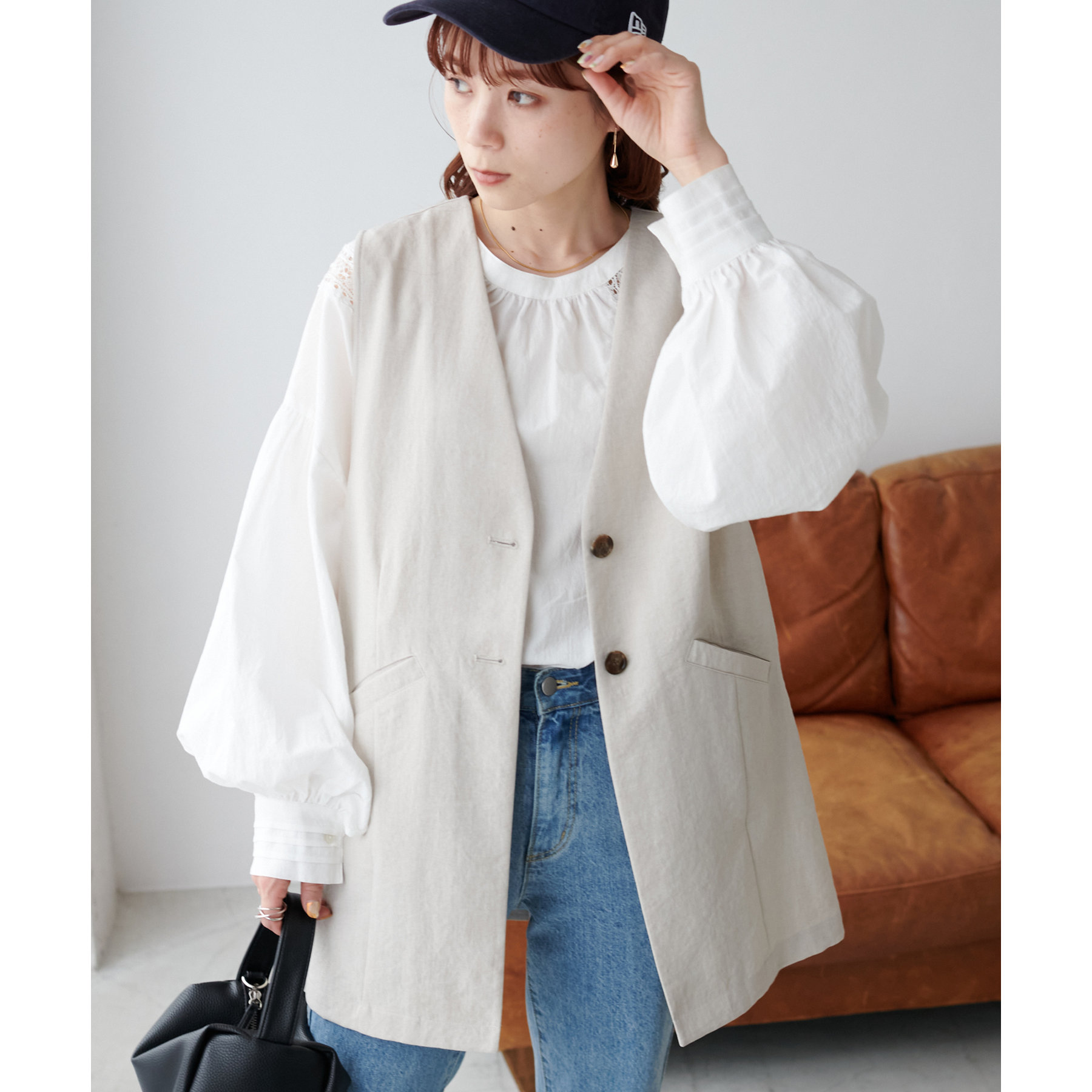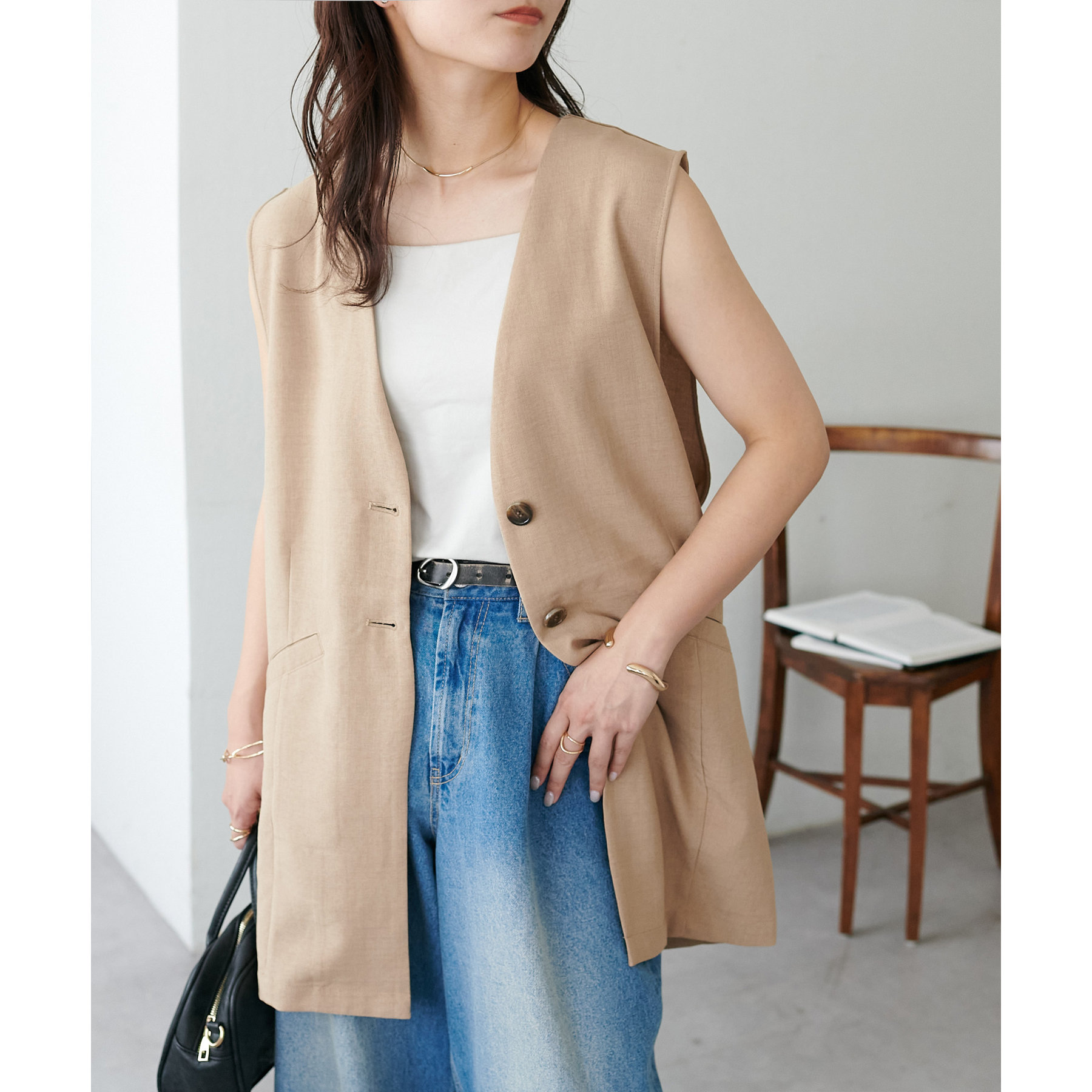 肌離れの良い質感で、春夏シーズンにぴったりなノーカラージレ♪
