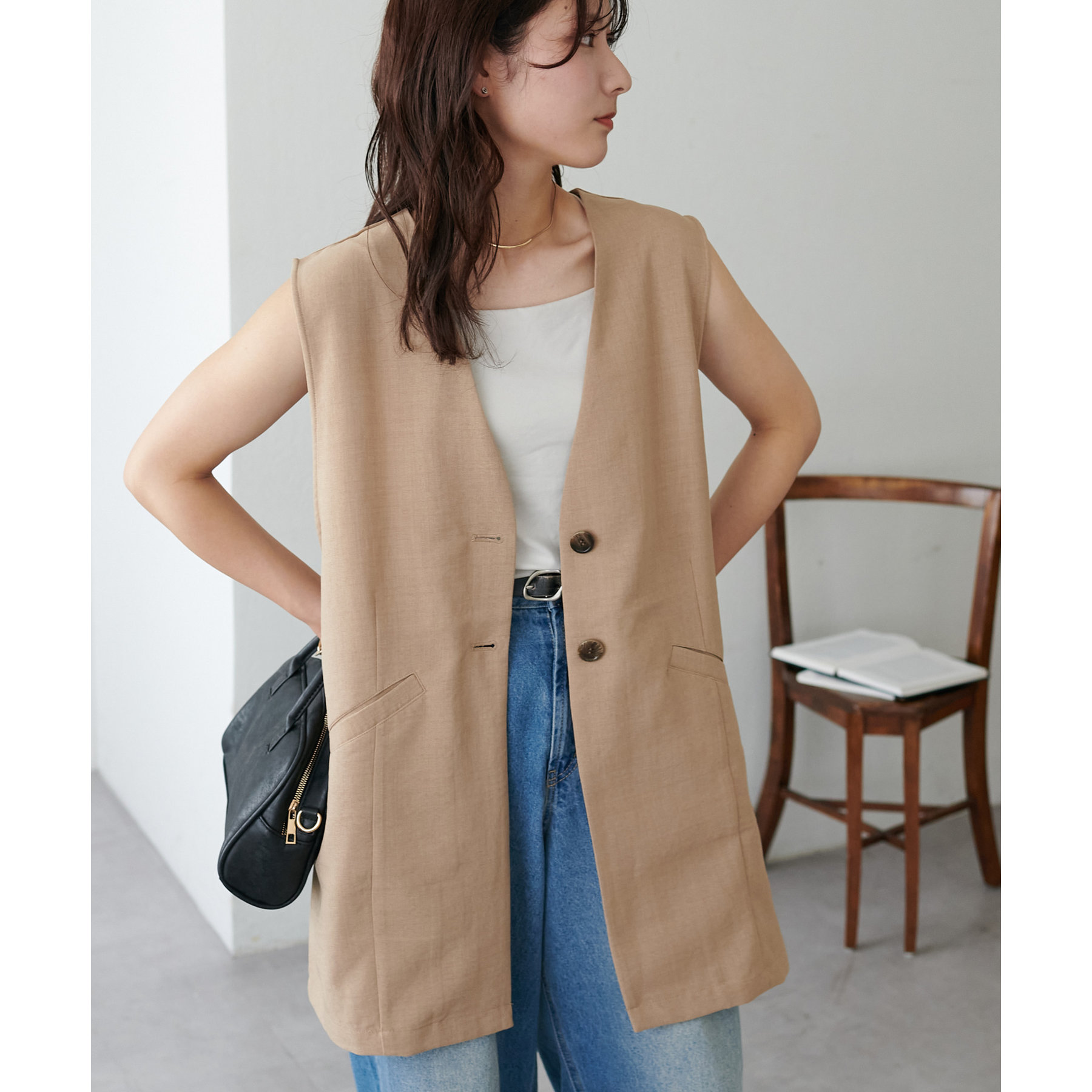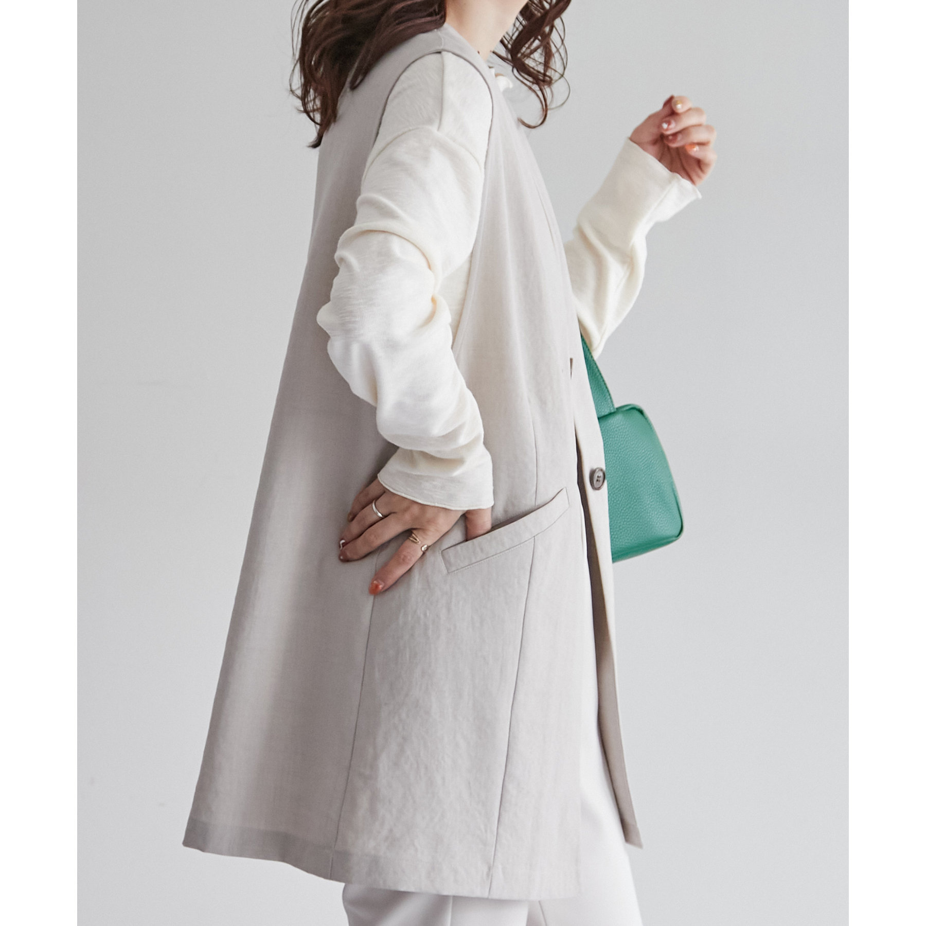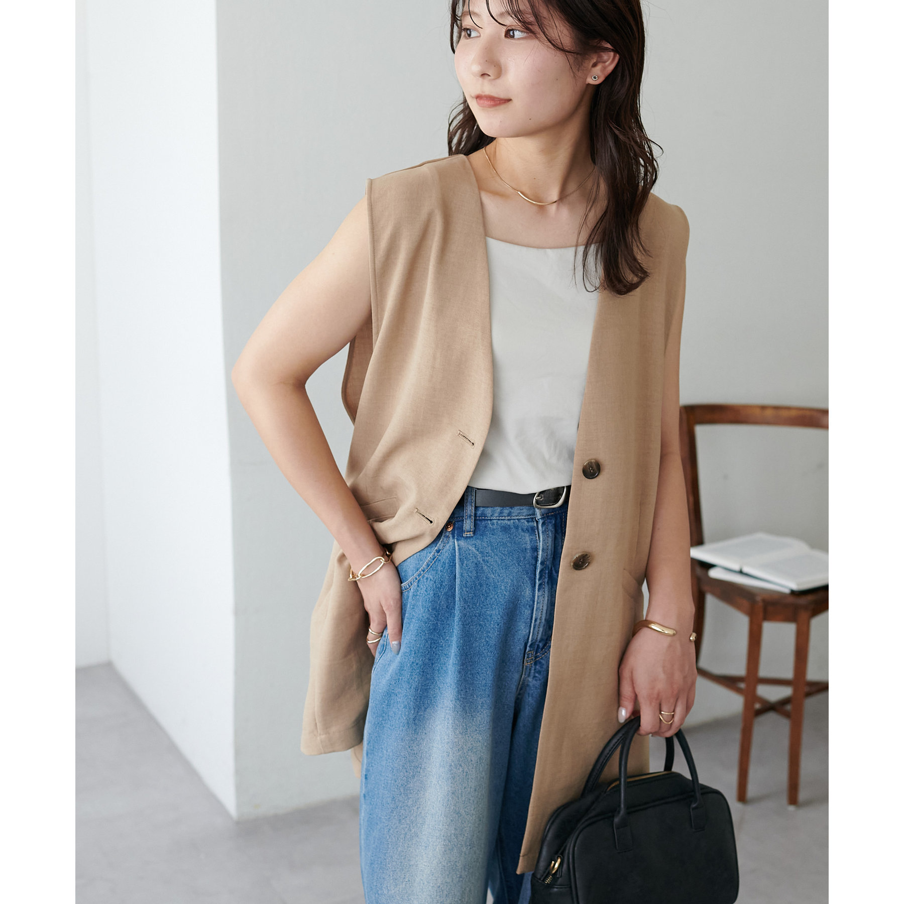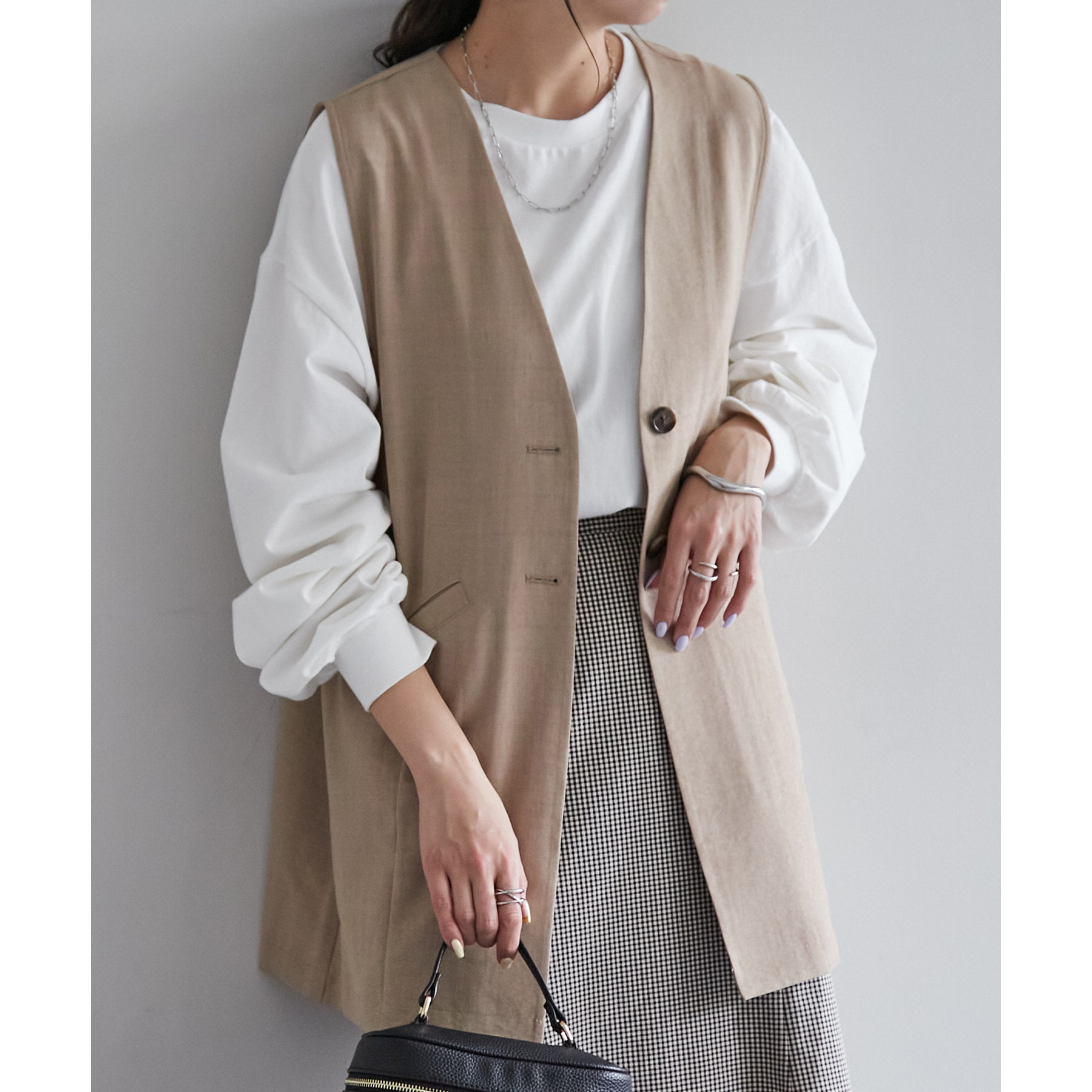 肌離れの良い質感で、春夏シーズンにぴったりなノーカラージレ♪