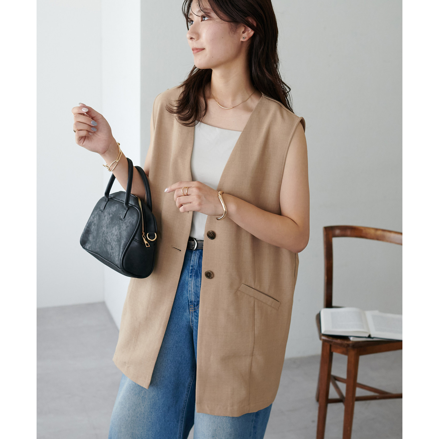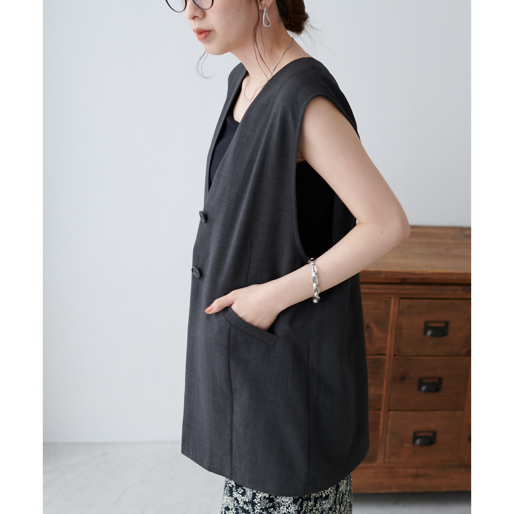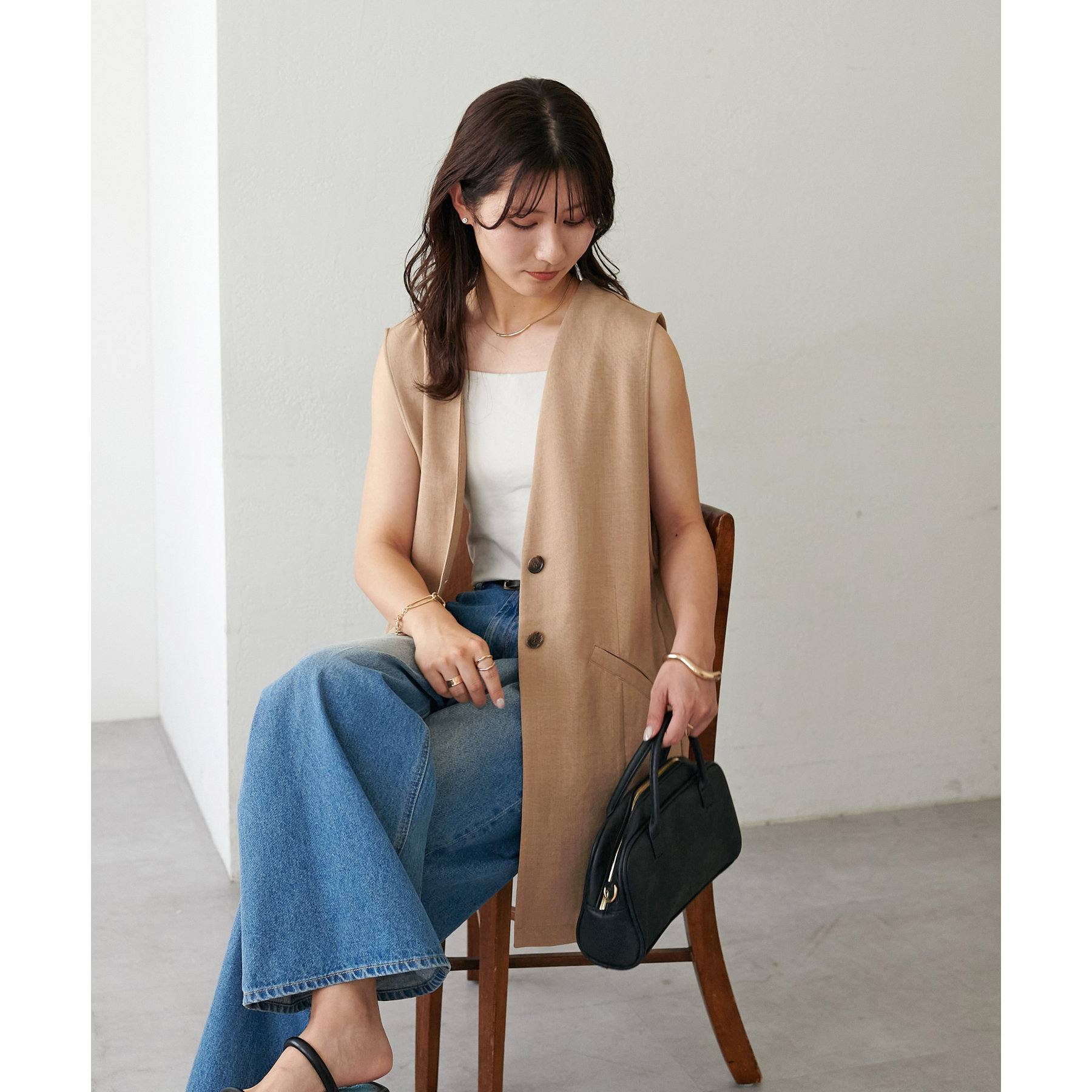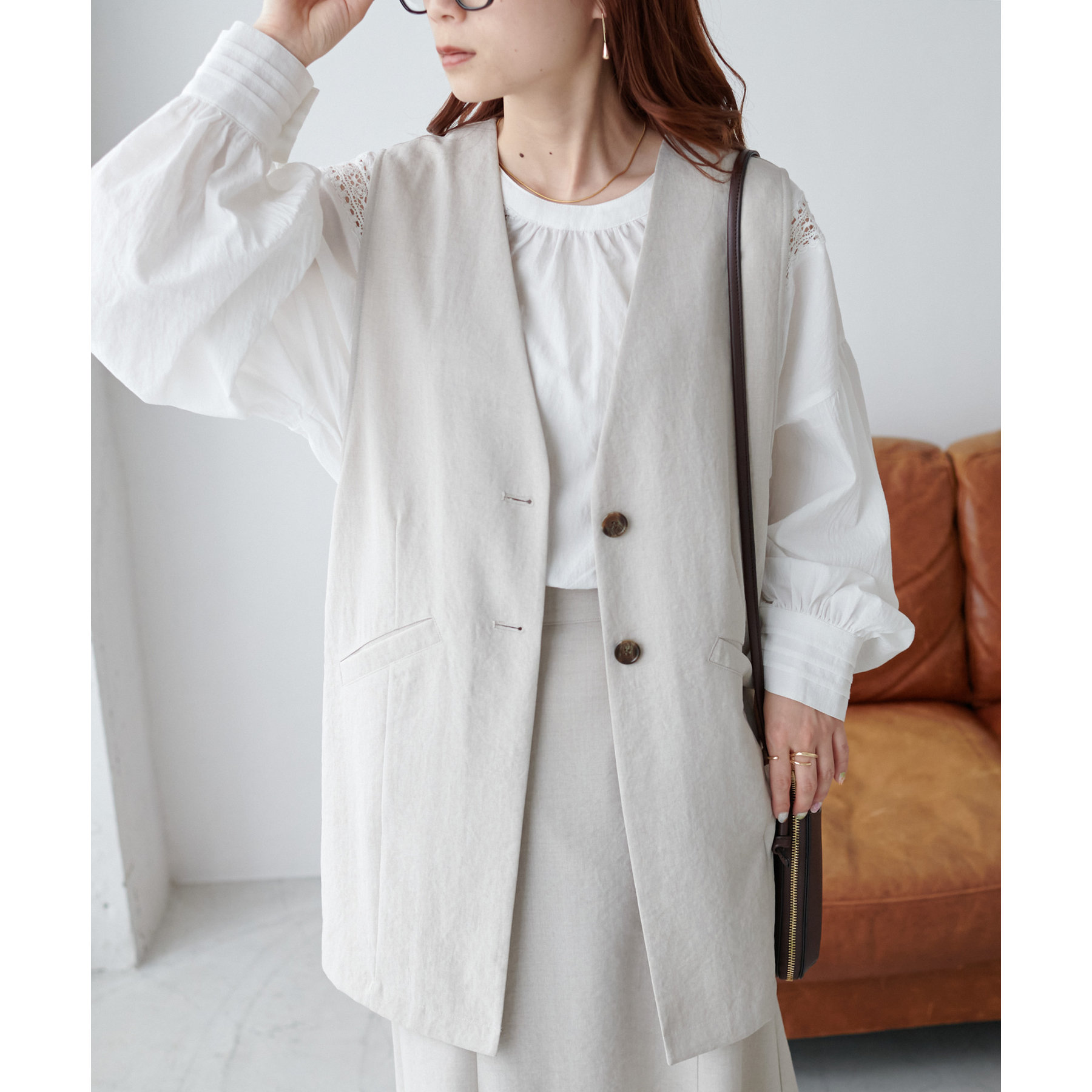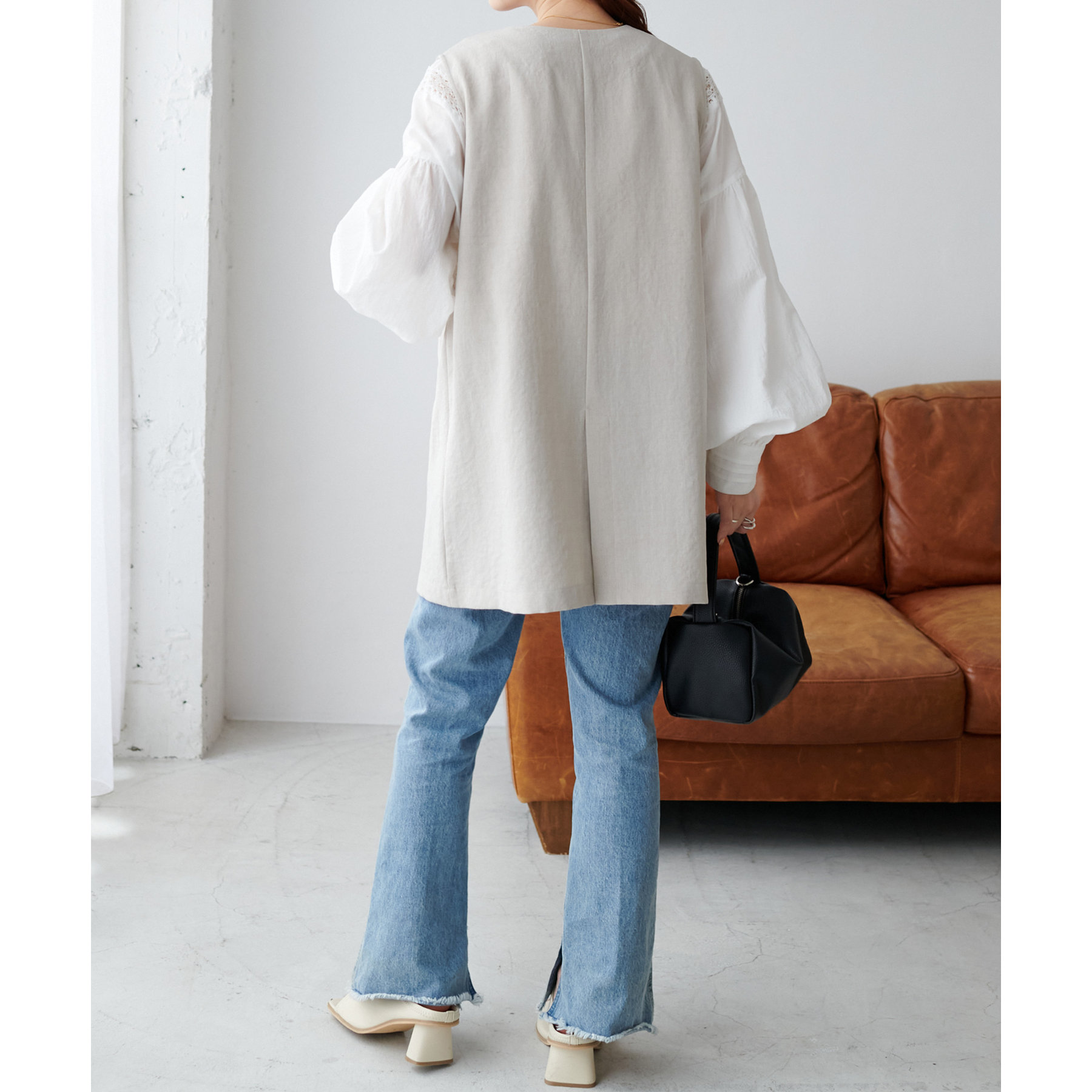 肌離れの良い質感で、春夏シーズンにぴったりなノーカラージレ♪