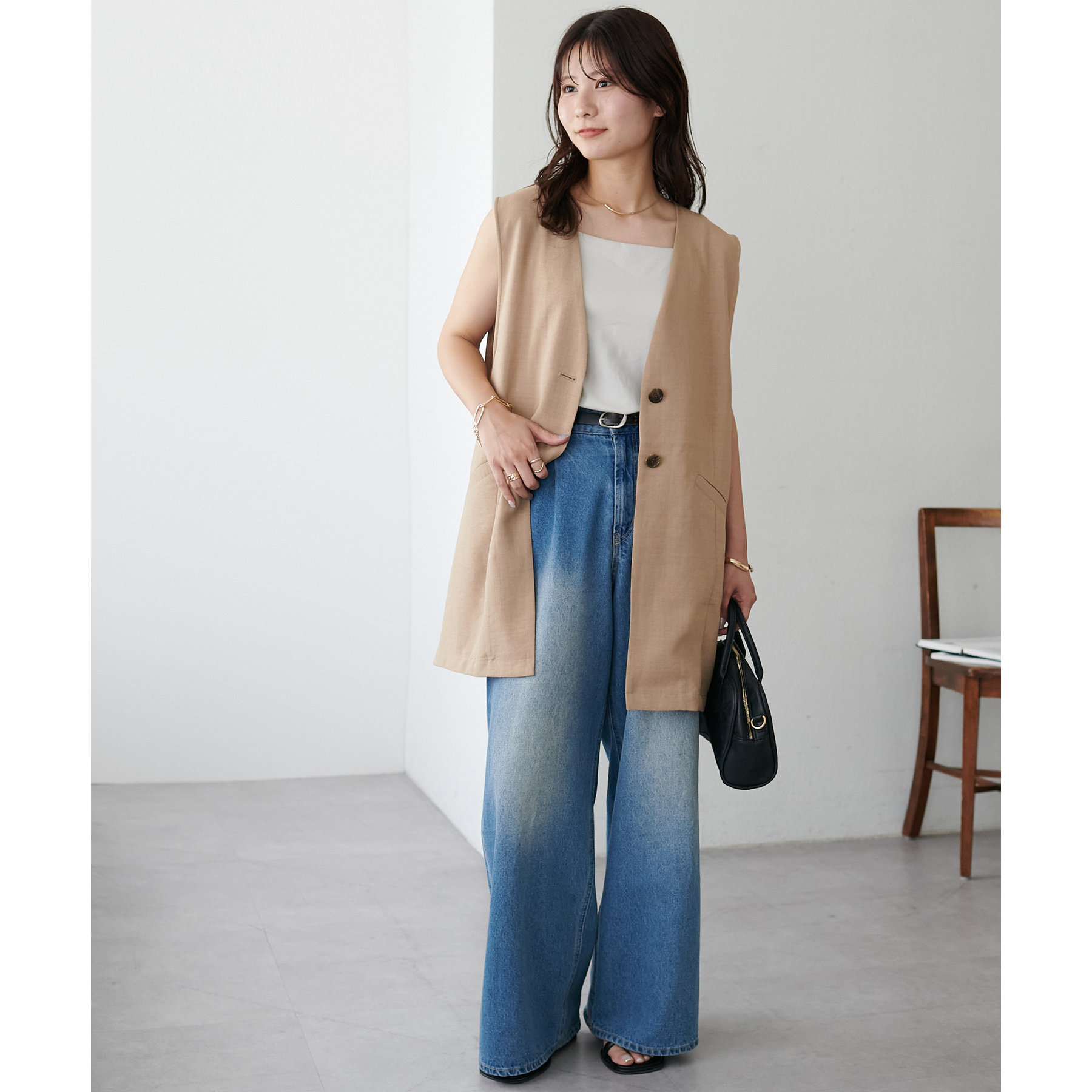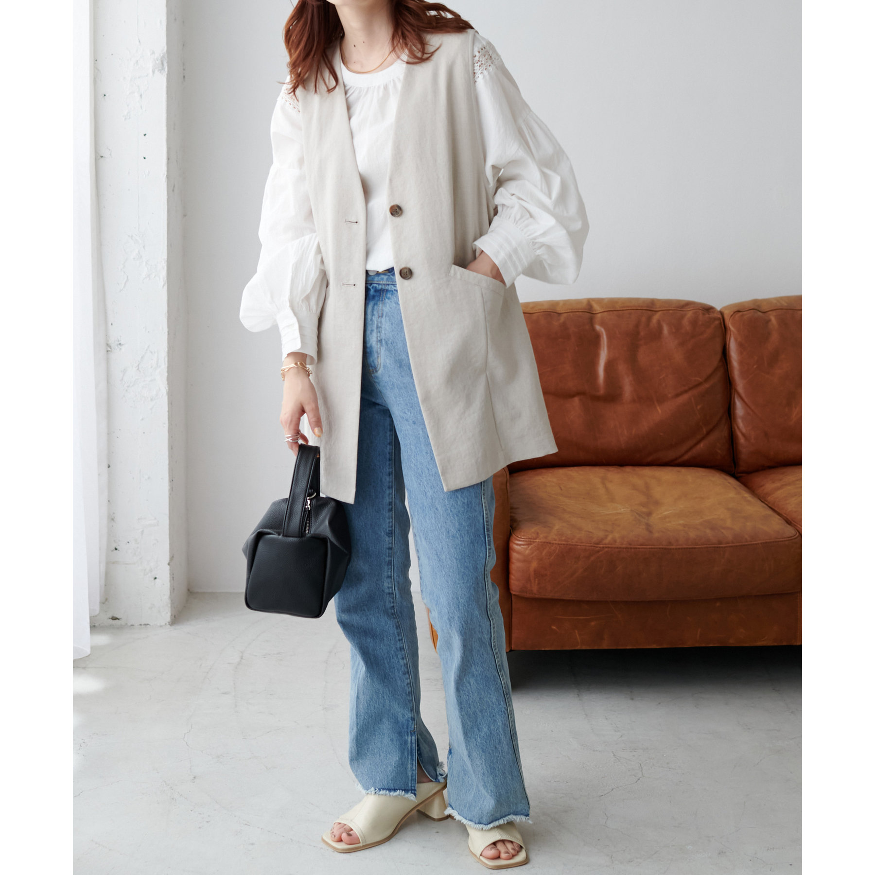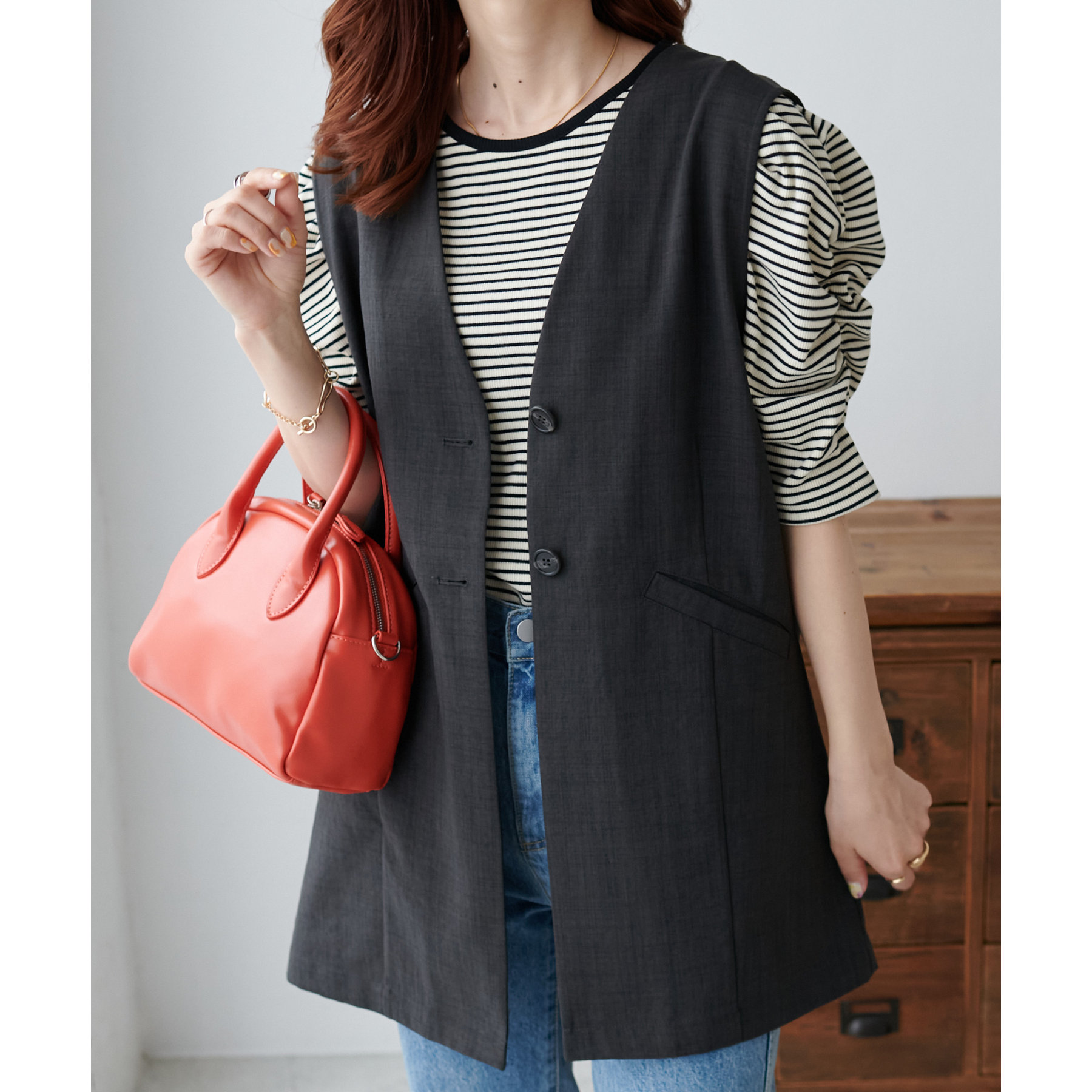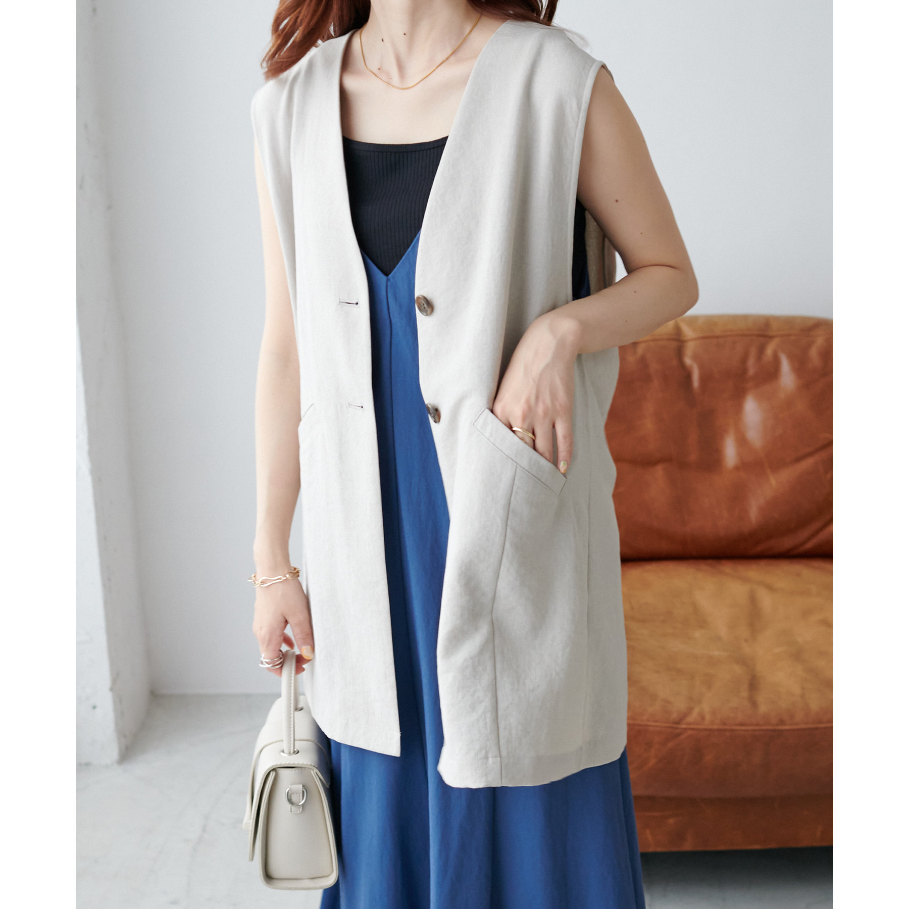 肌離れの良い質感で、春夏シーズンにぴったりなノーカラージレ♪