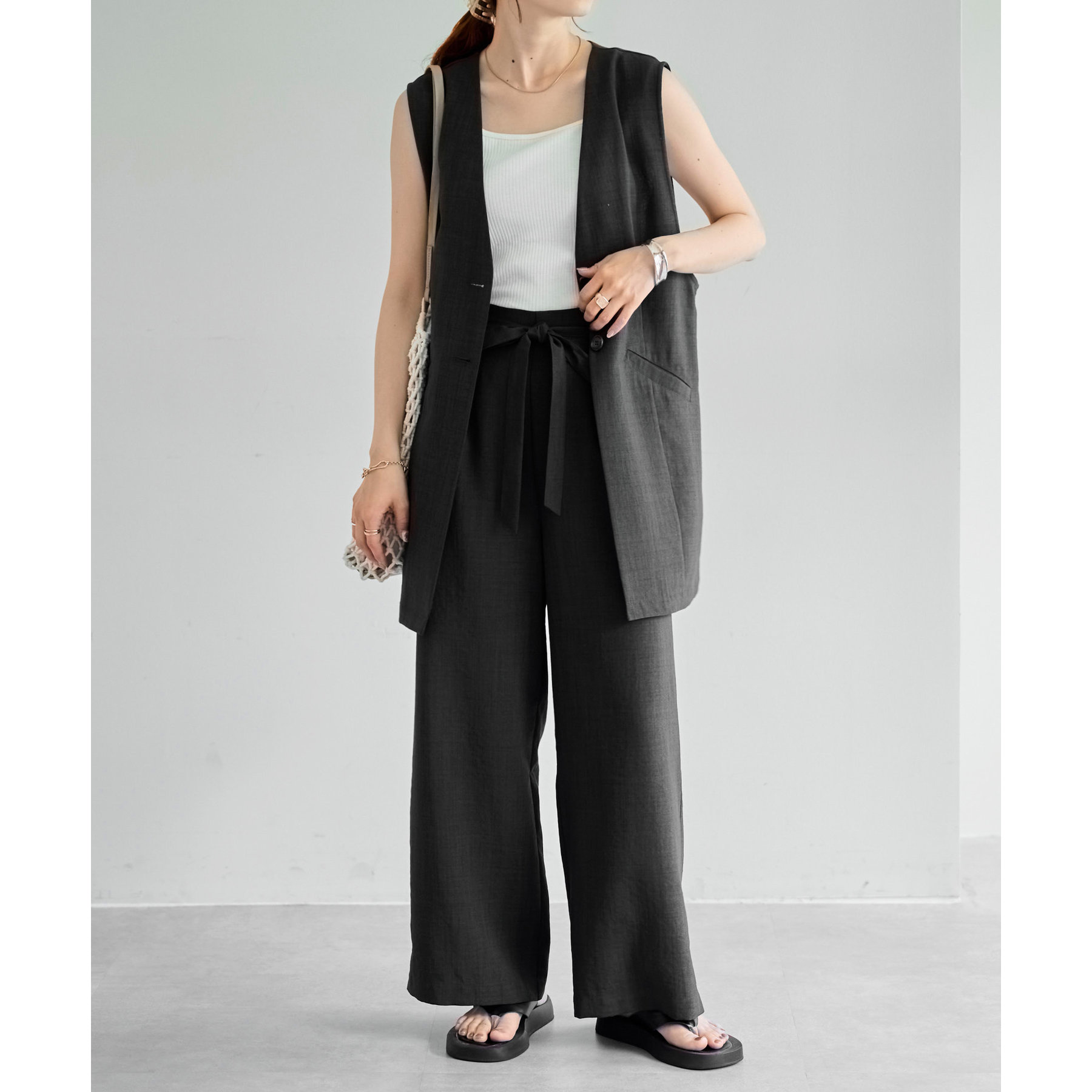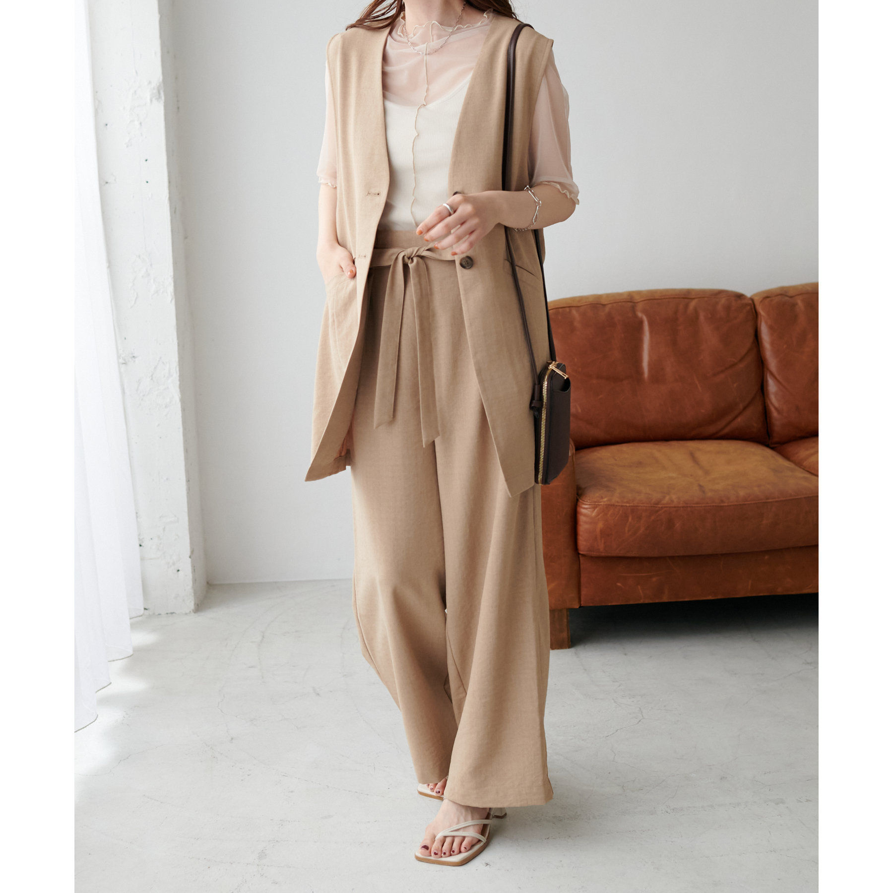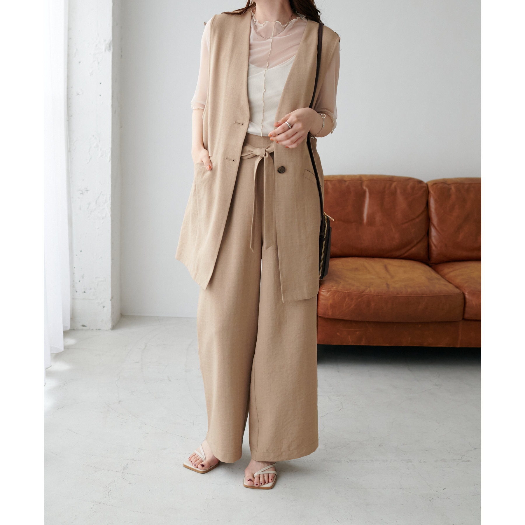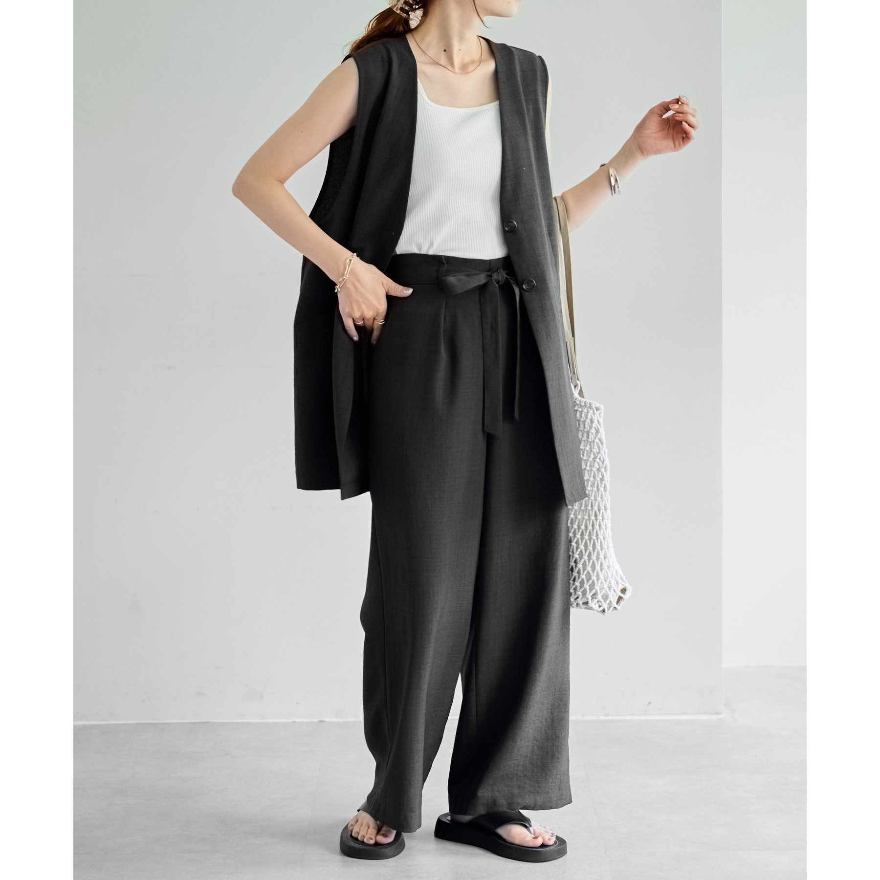 ・テックリネンハイウエストベルト付ワイドパンツ(DCZ1041202A0005)