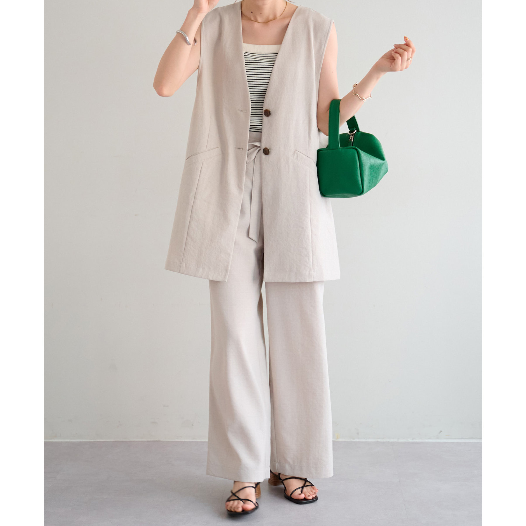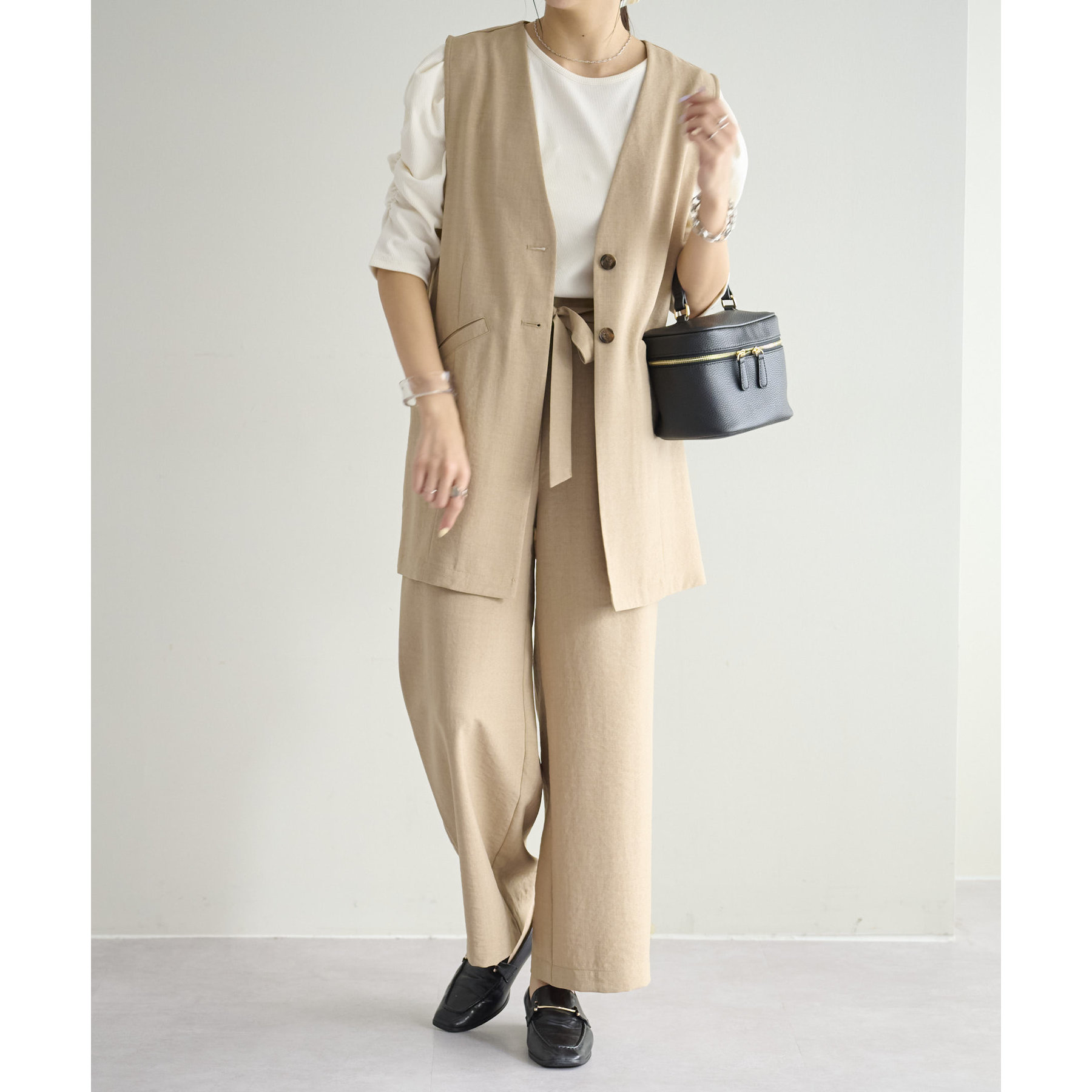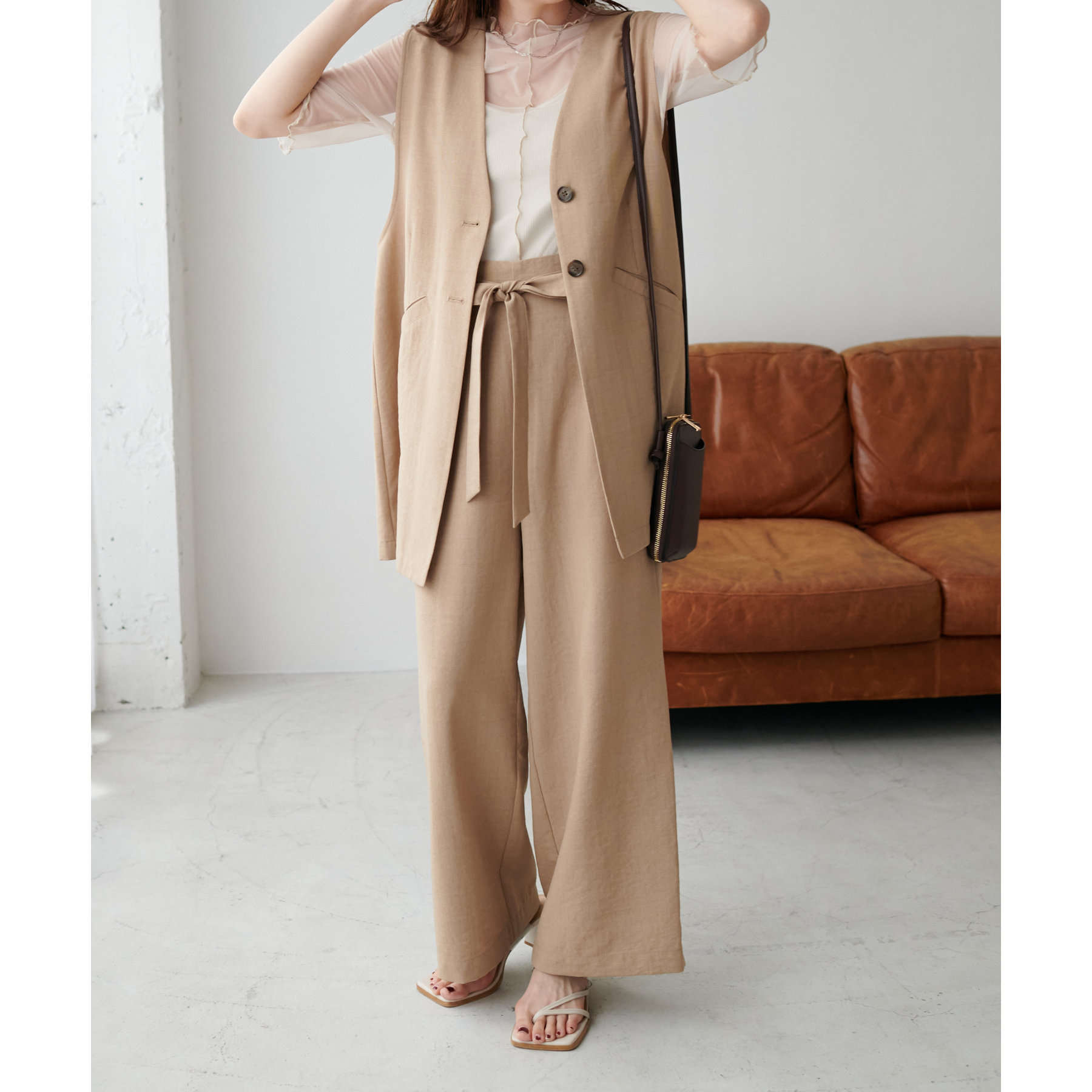・テックリネンハイウエストベルト付ワイドパンツ(DCZ1041202A0005)