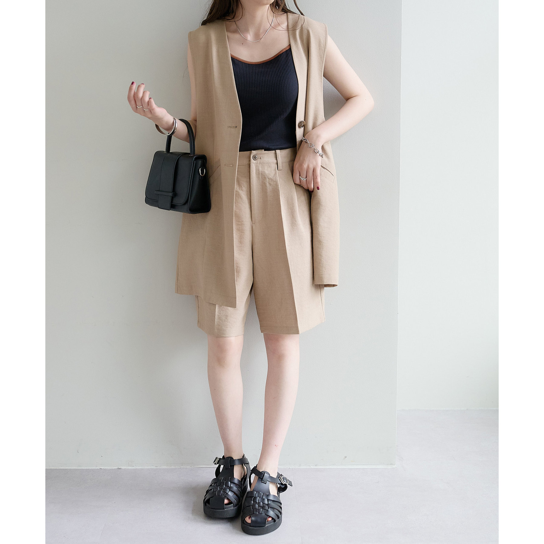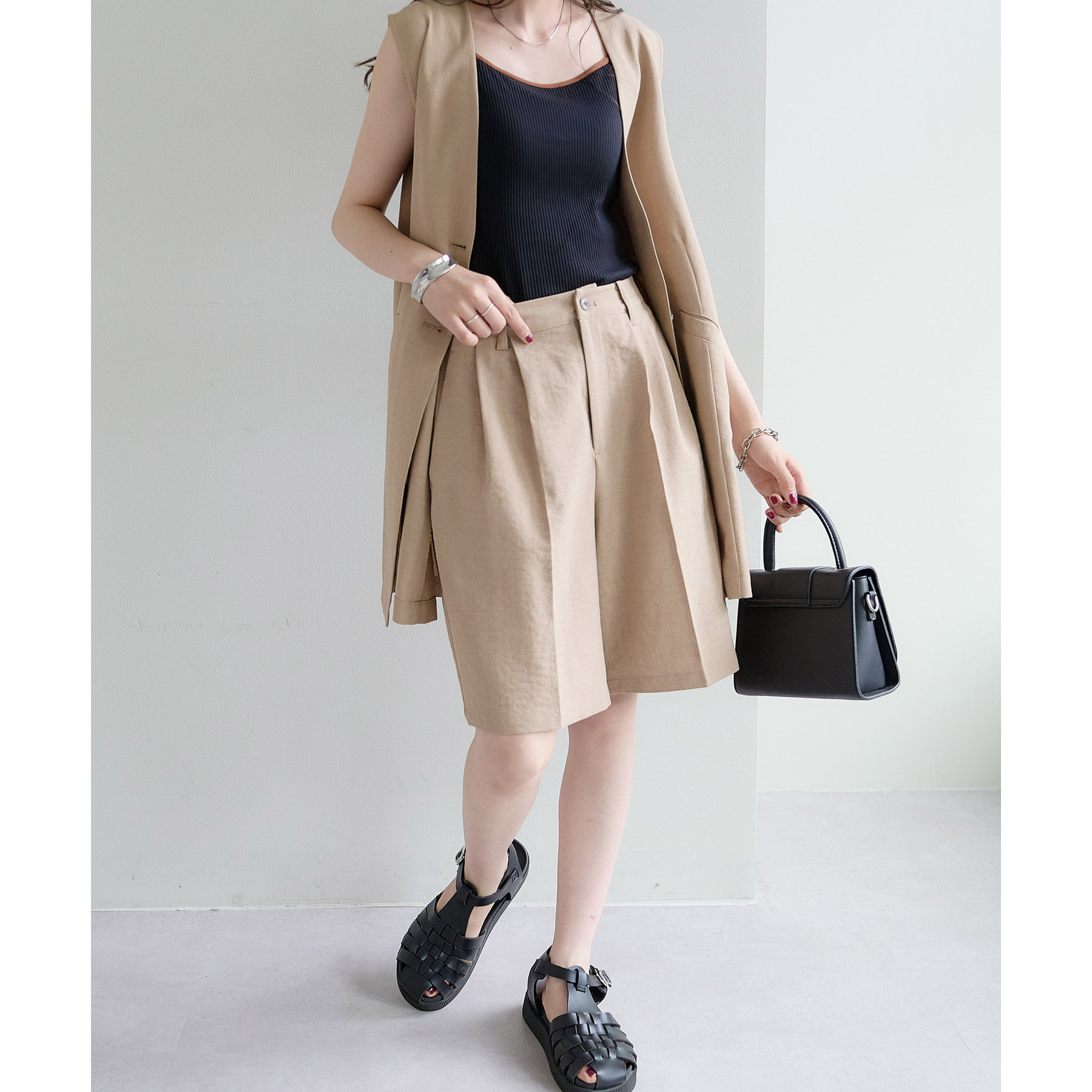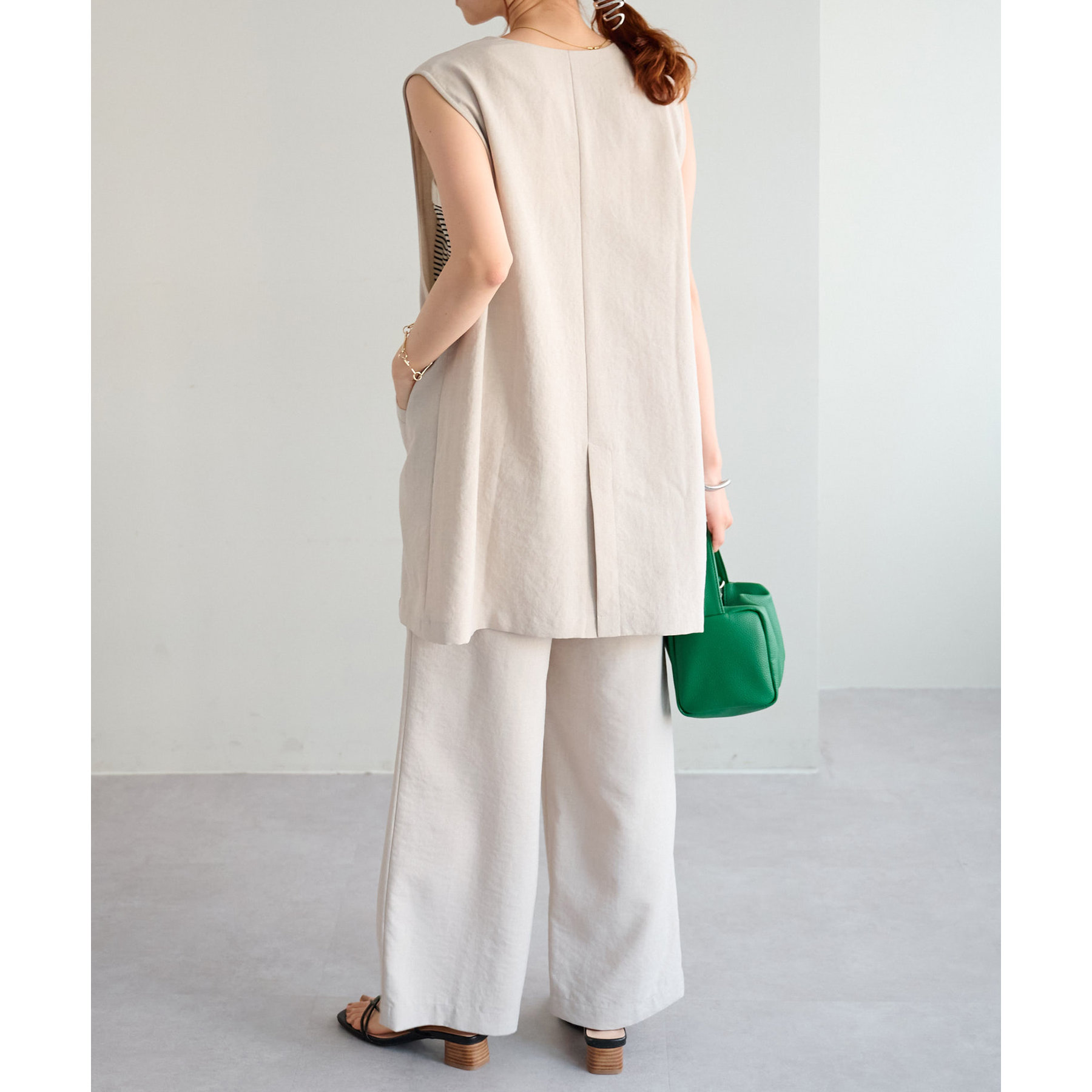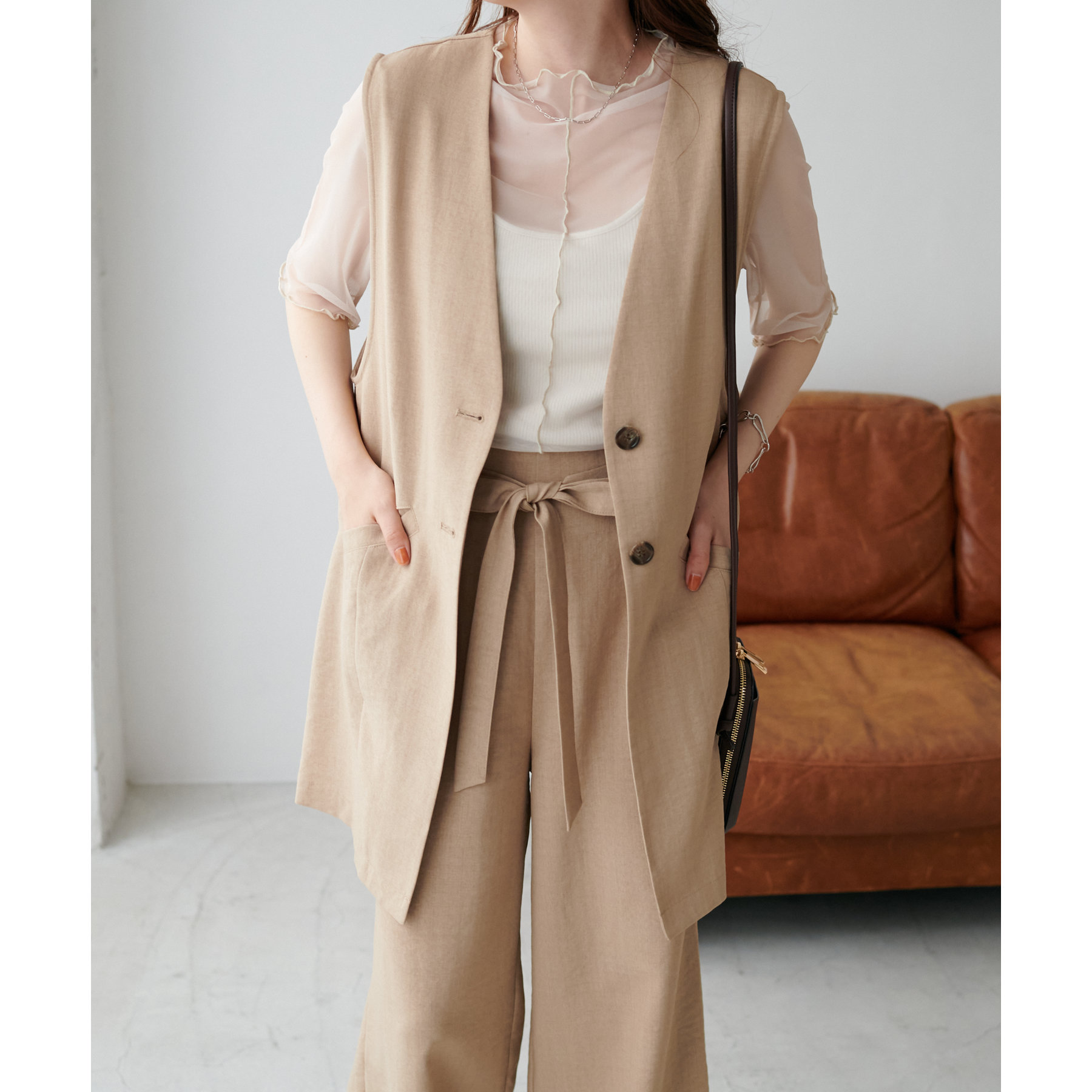 ・テックリネンハイウエストベルト付ワイドパンツ(DCZ1041202A0005)