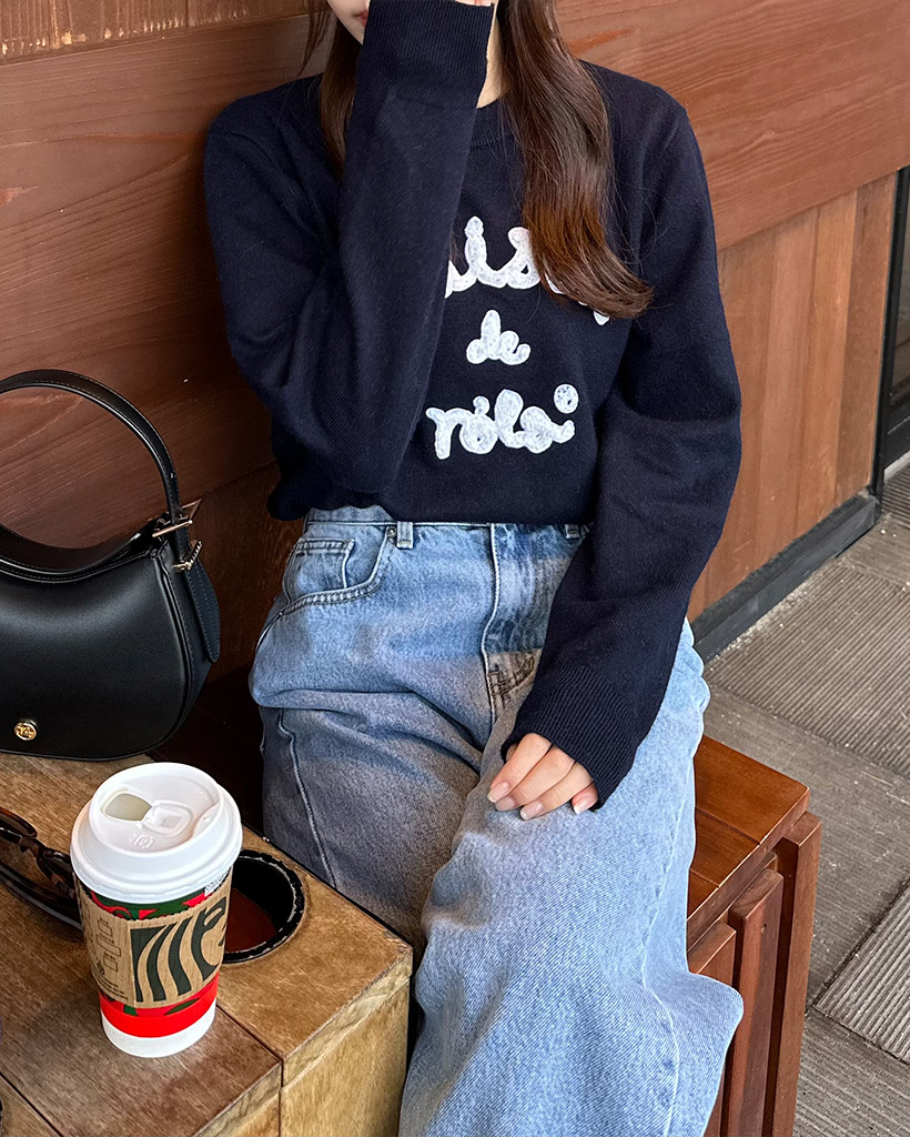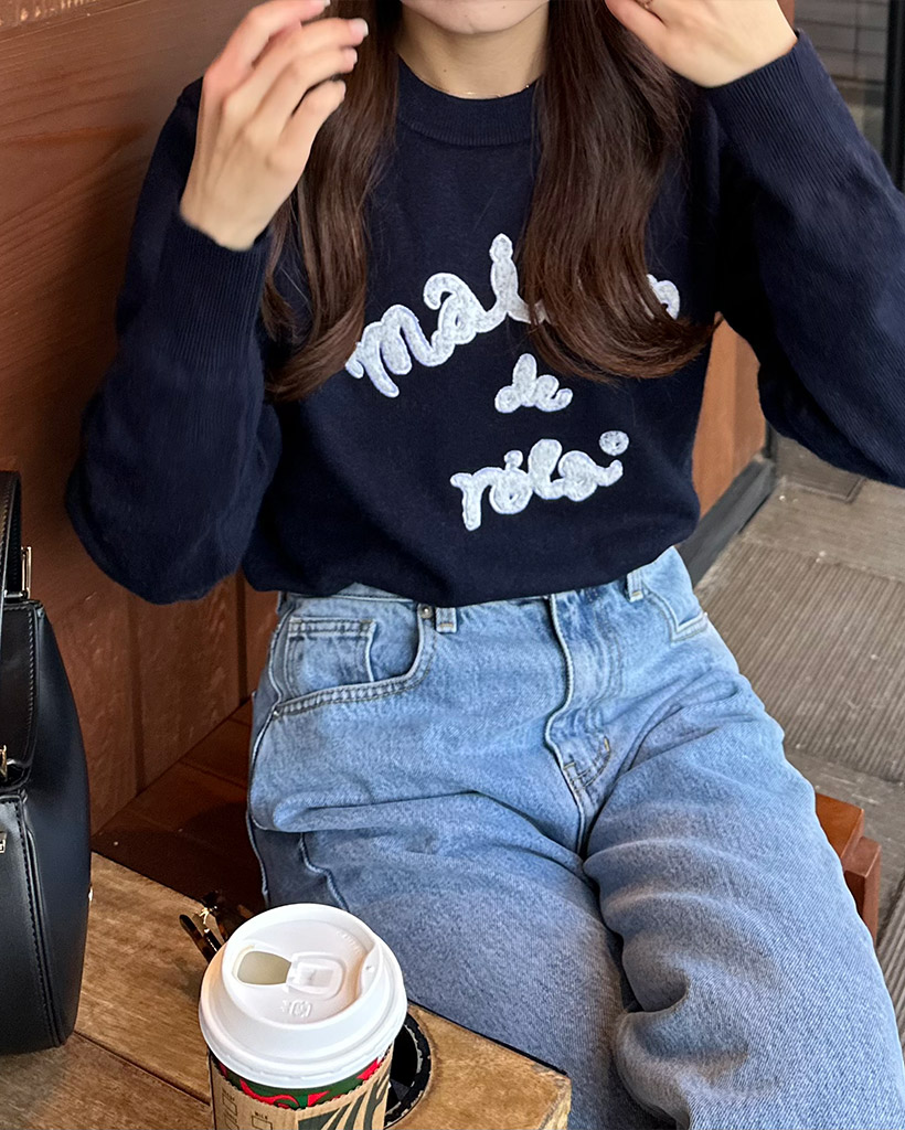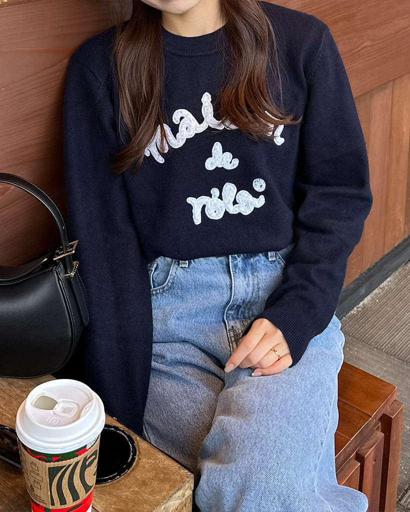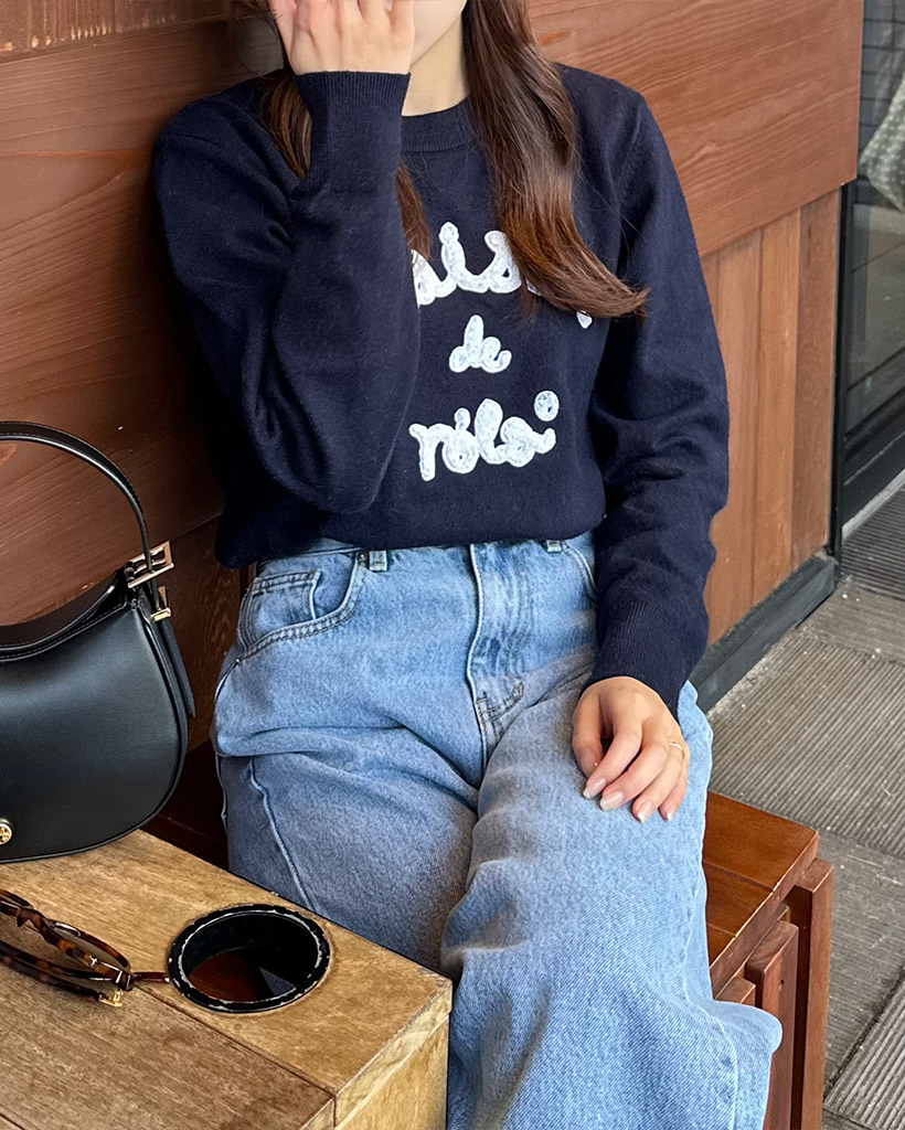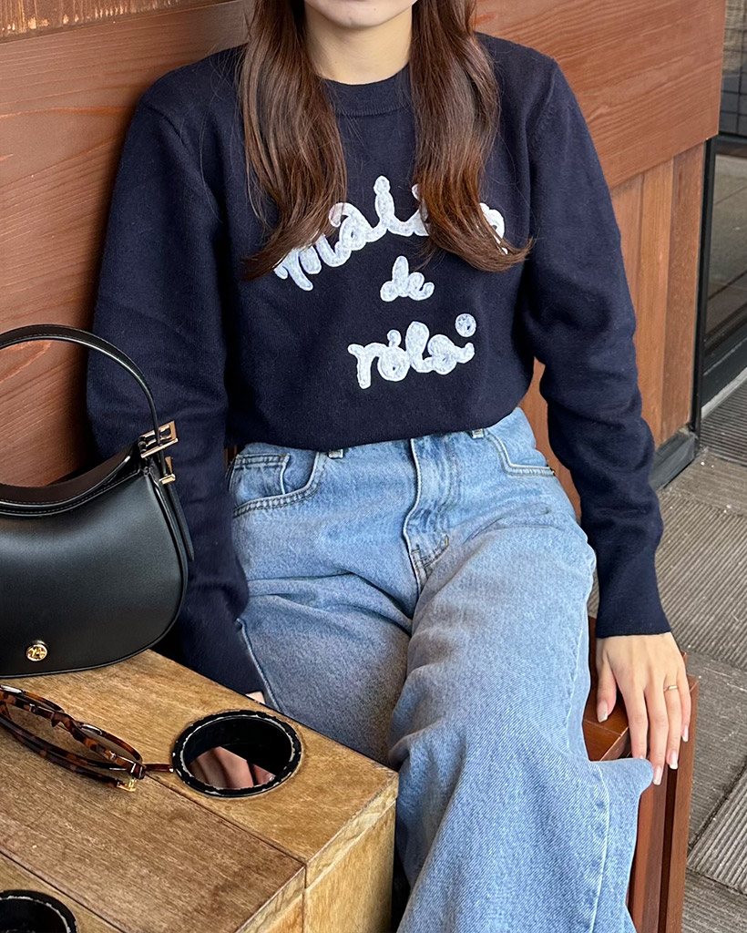 [AFULE X rolarola] MAISON DE ROLA PATCHWORK KNIT NAVY