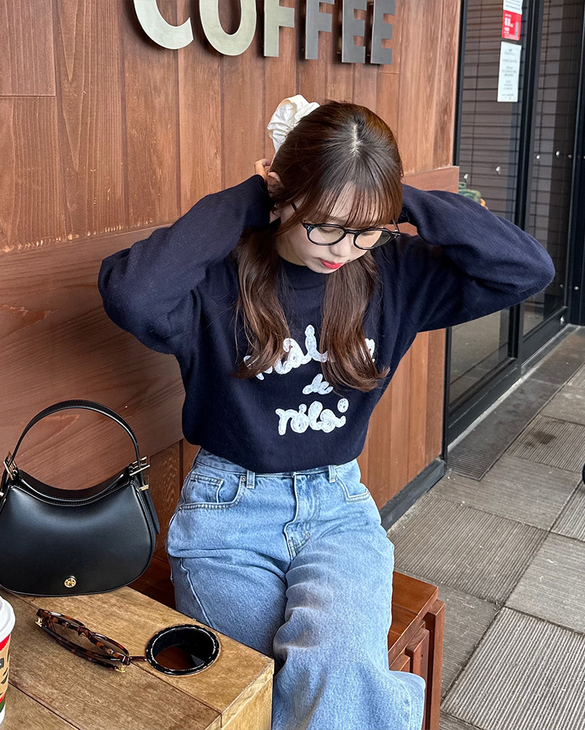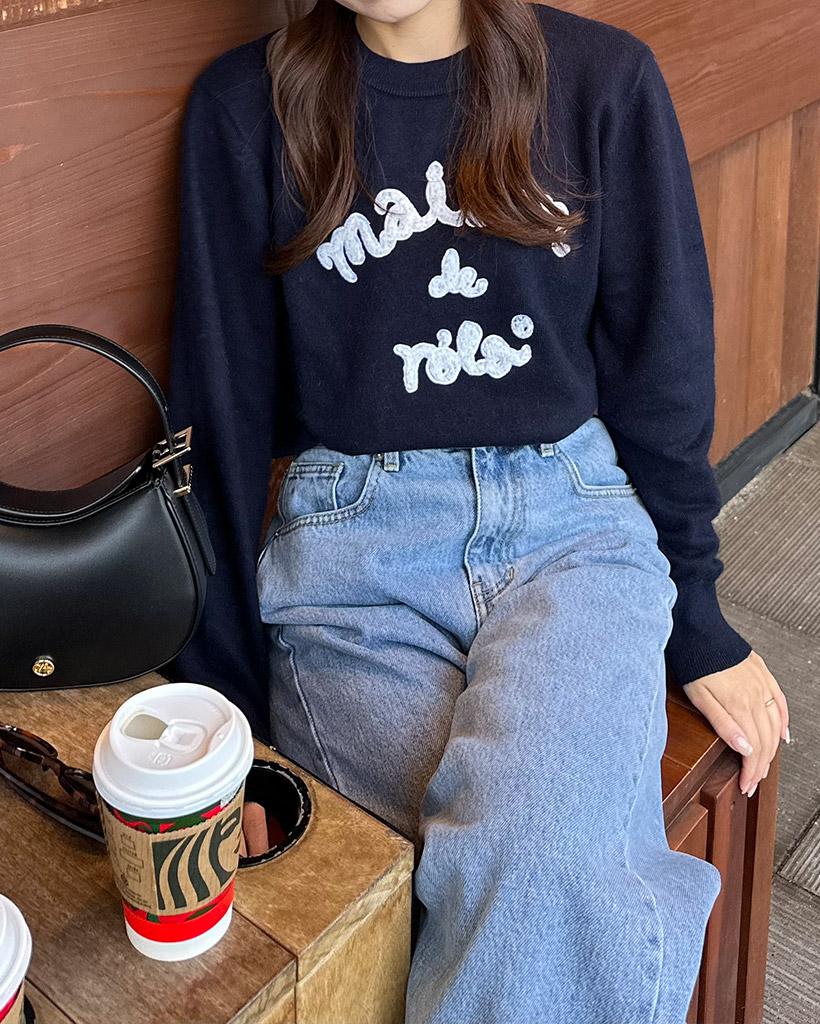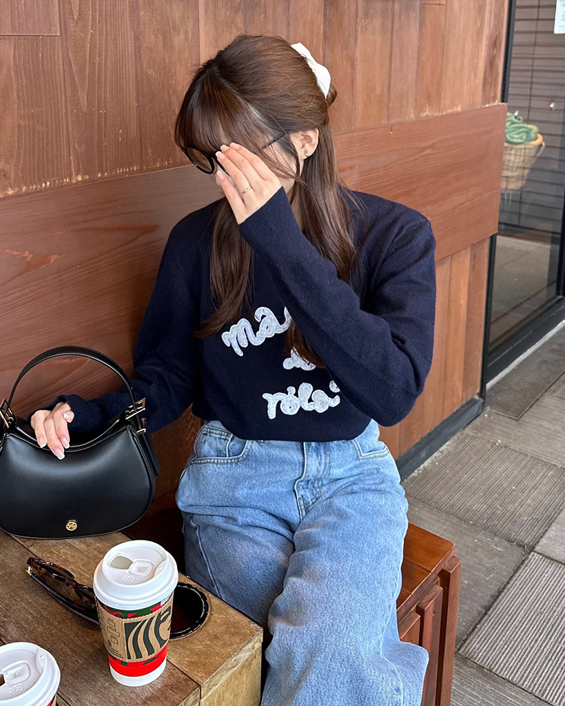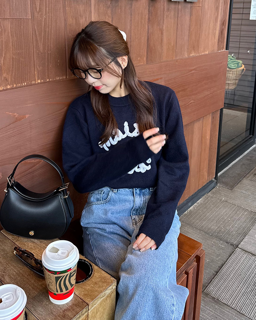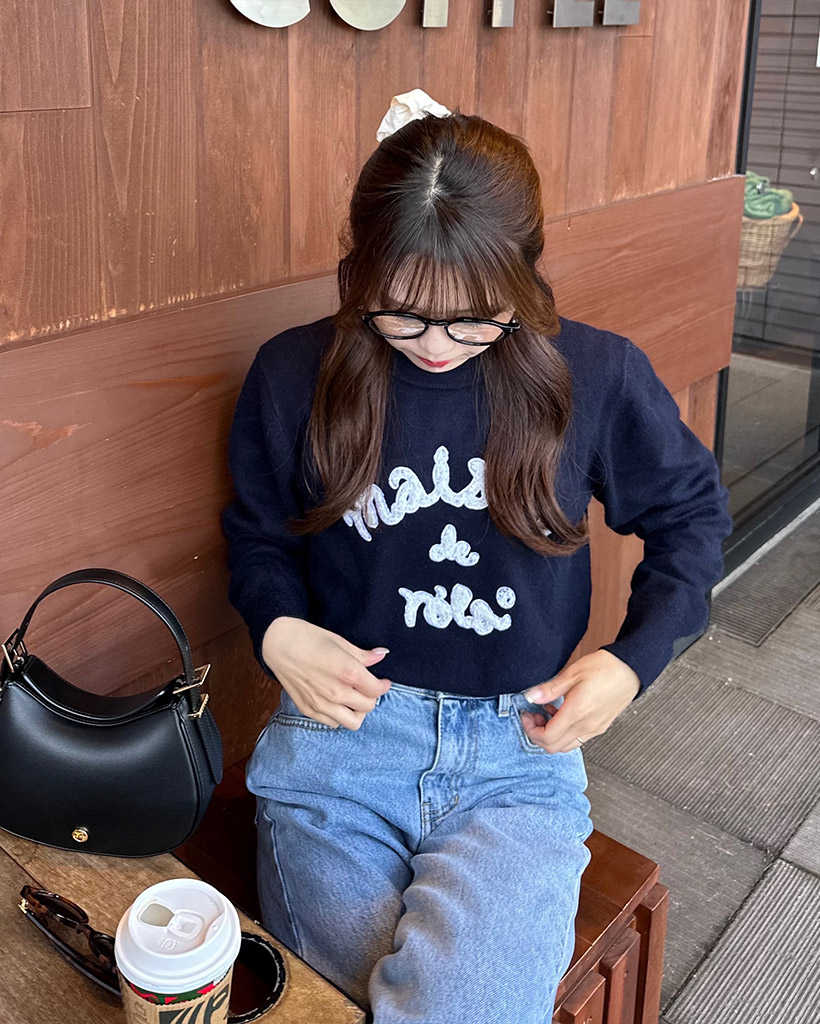 [AFULE X rolarola] MAISON DE ROLA PATCHWORK KNIT NAVY