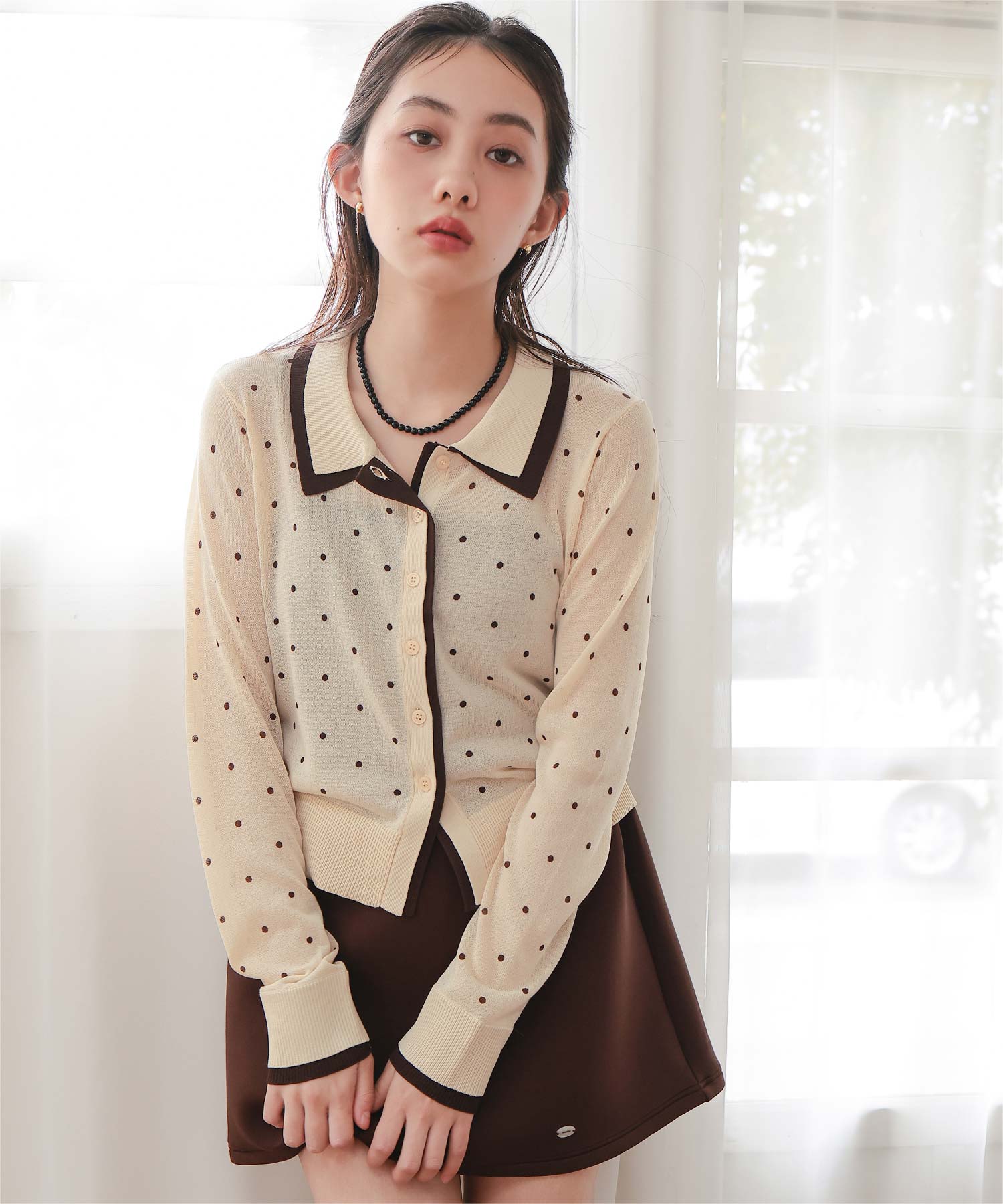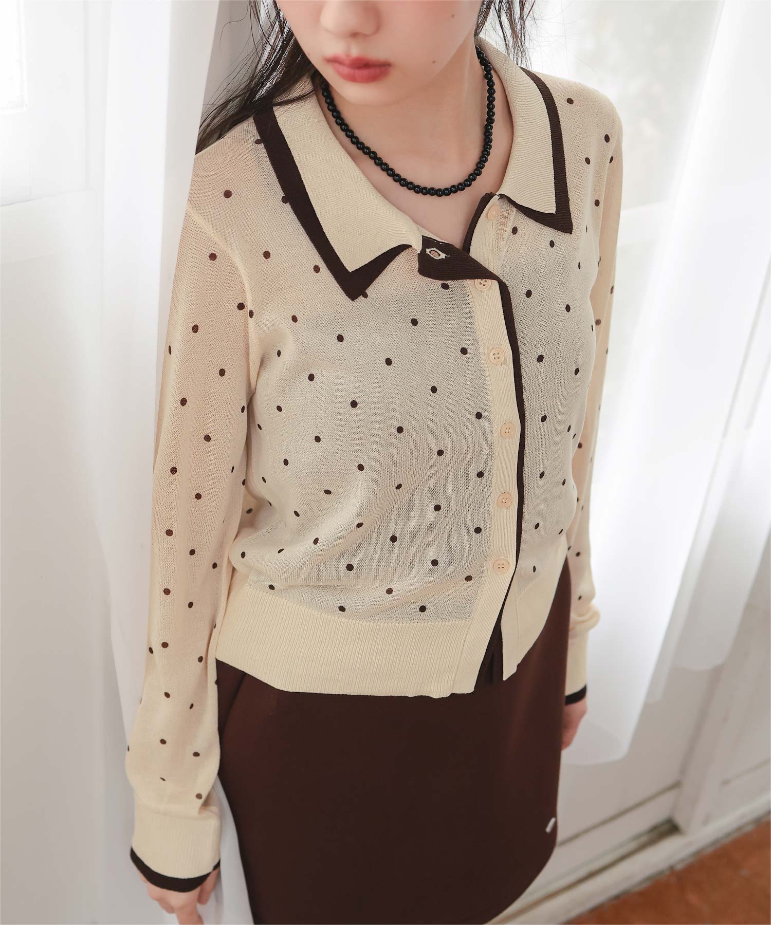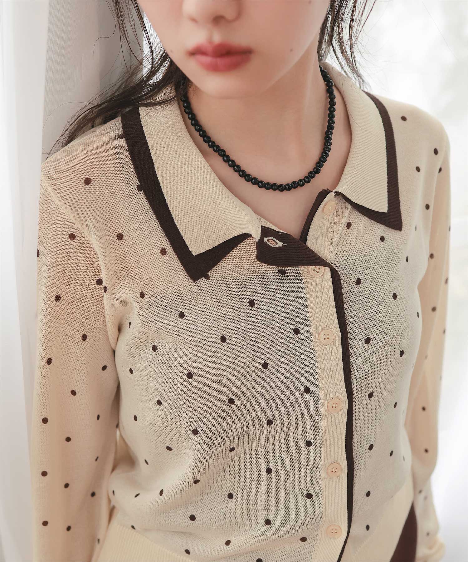 襟付きレイヤード風シアーカーディガン