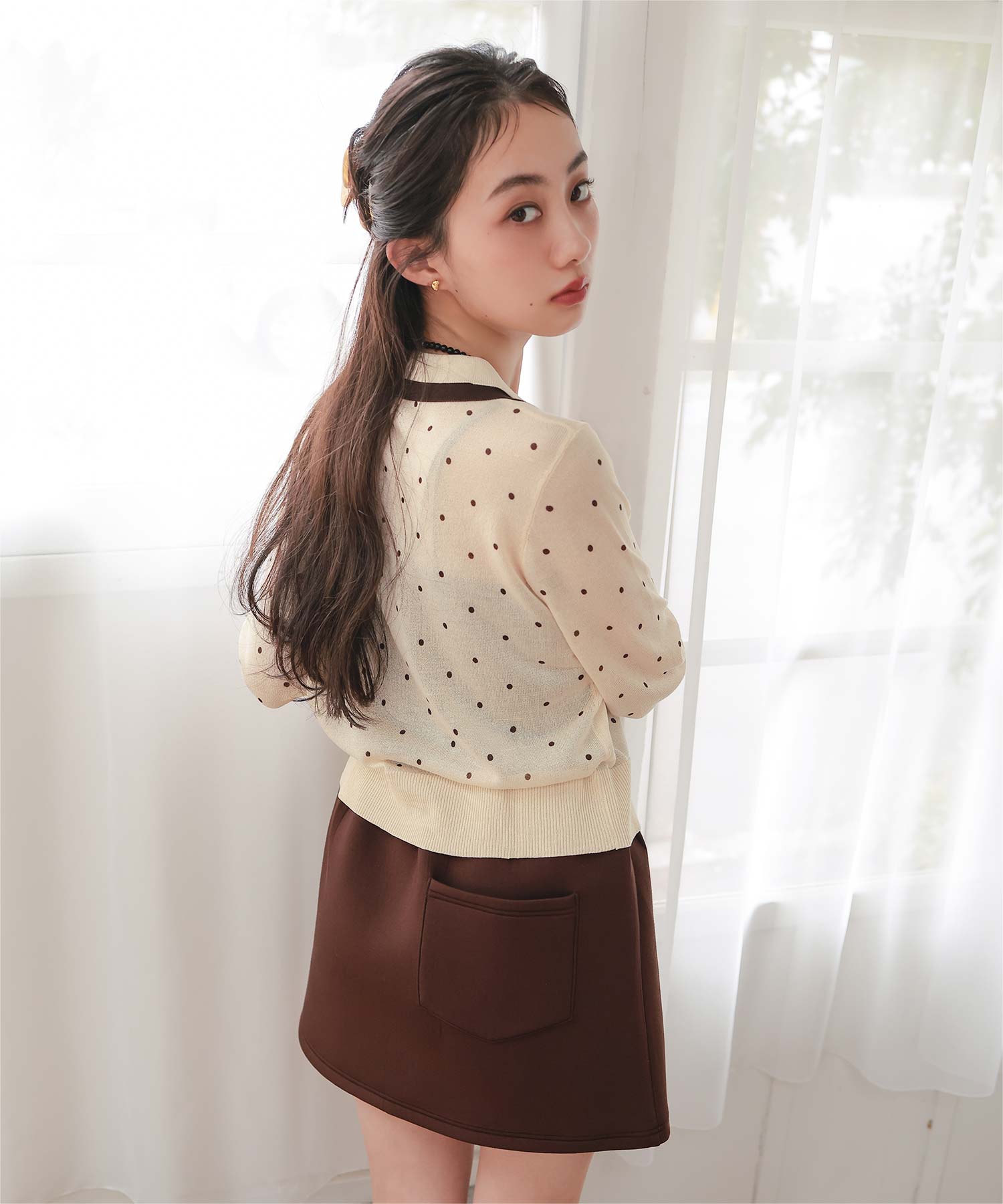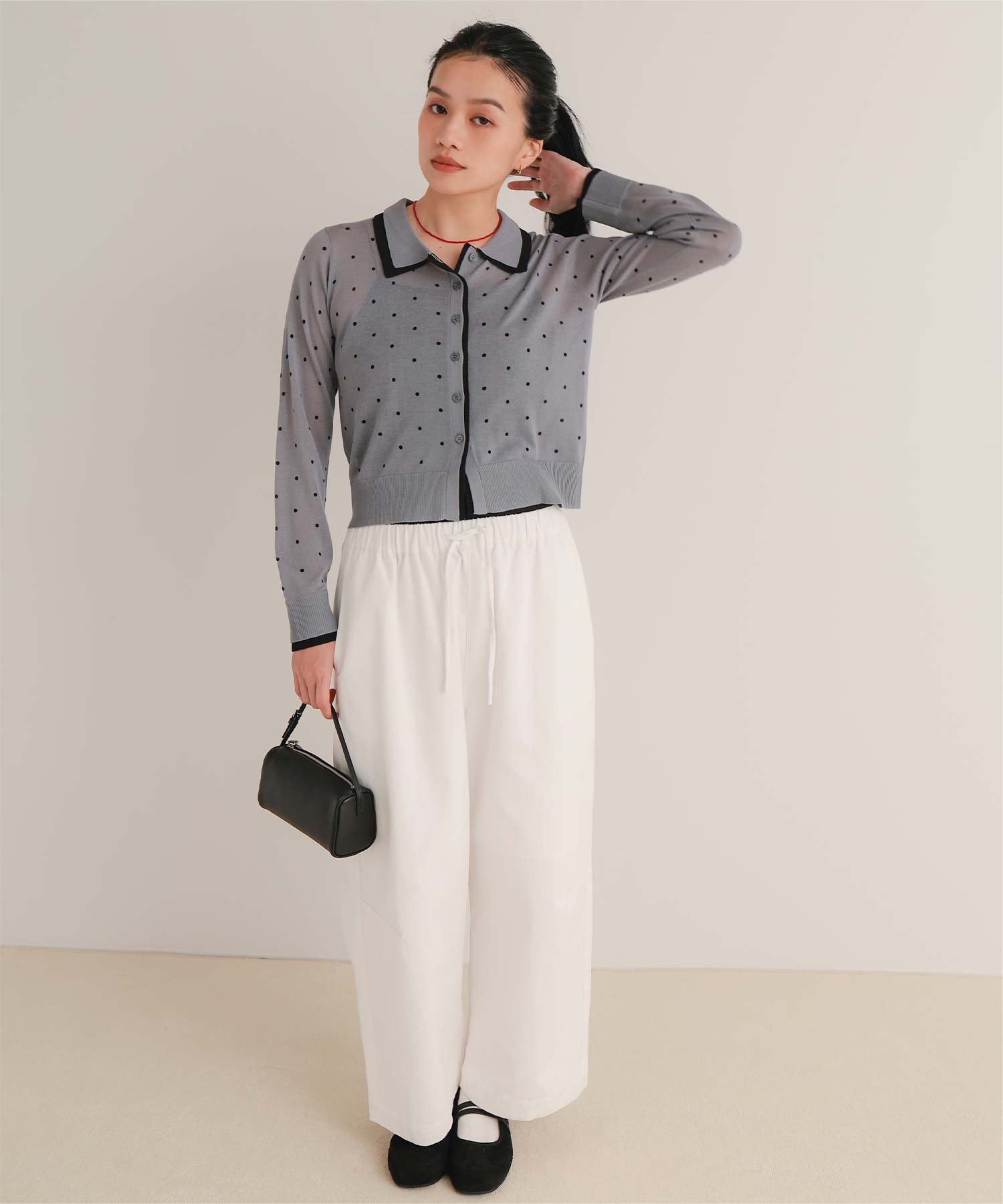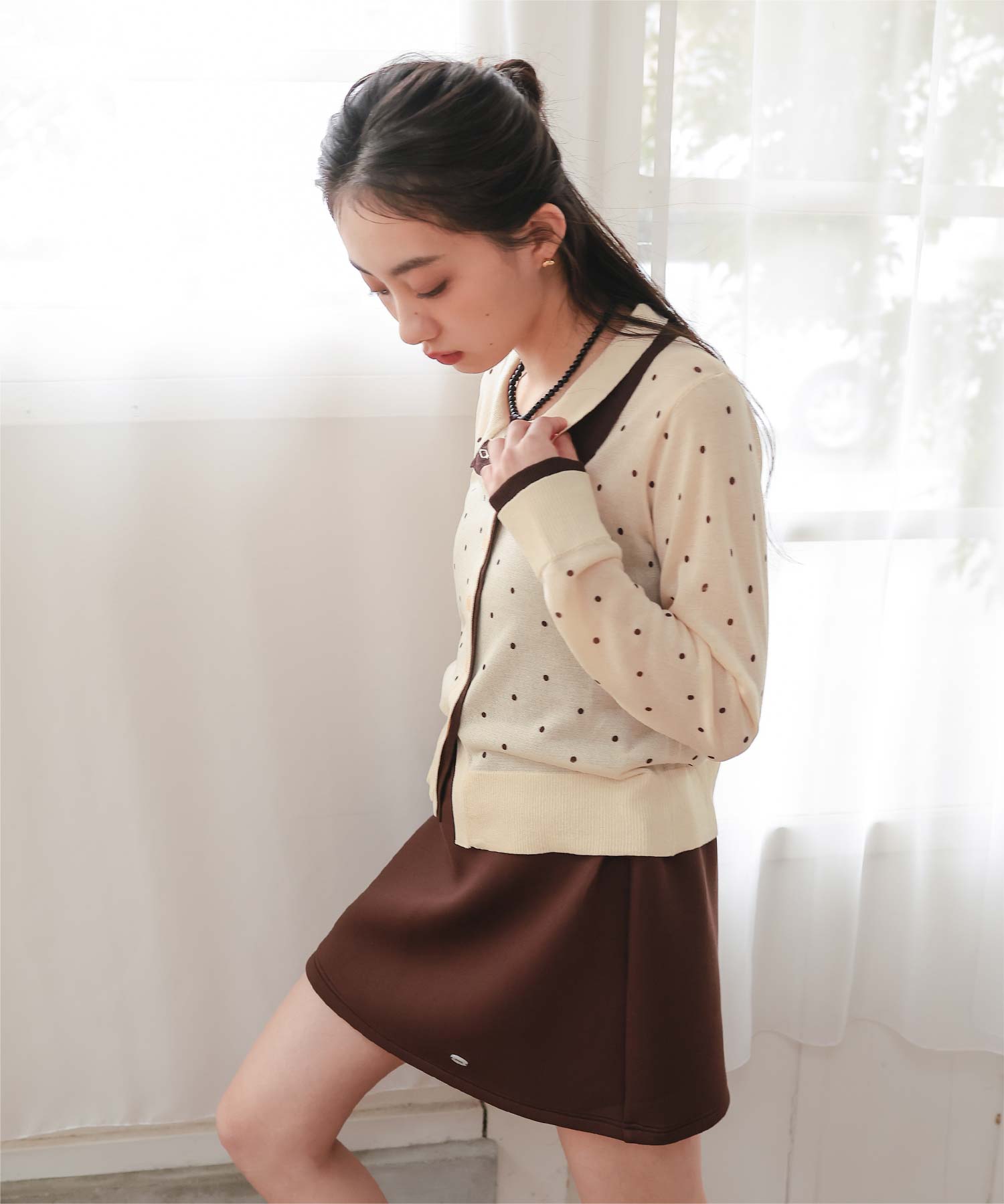 着用 / サイズ:M カラー:ライトピンク、ドット2