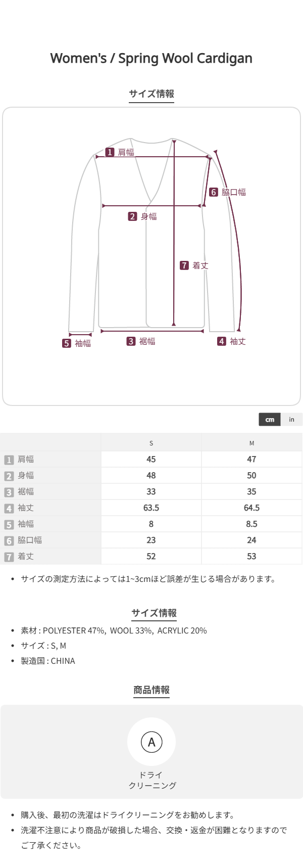 このブランドの商品はお客様の都合による交換および返品はお受けいたしかねます。 十分にご注意の上、ご注文をお願い致します。