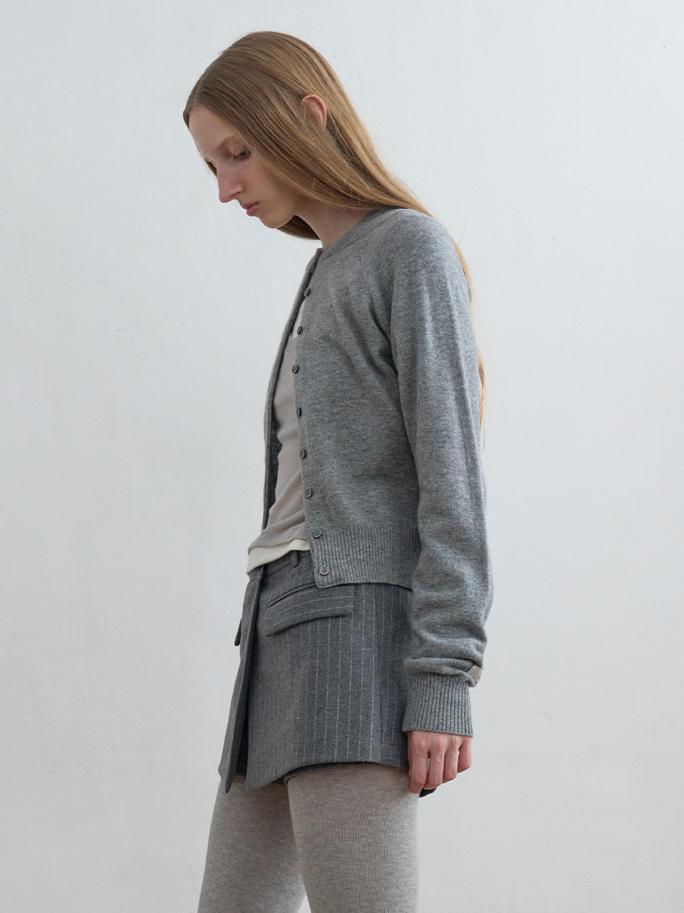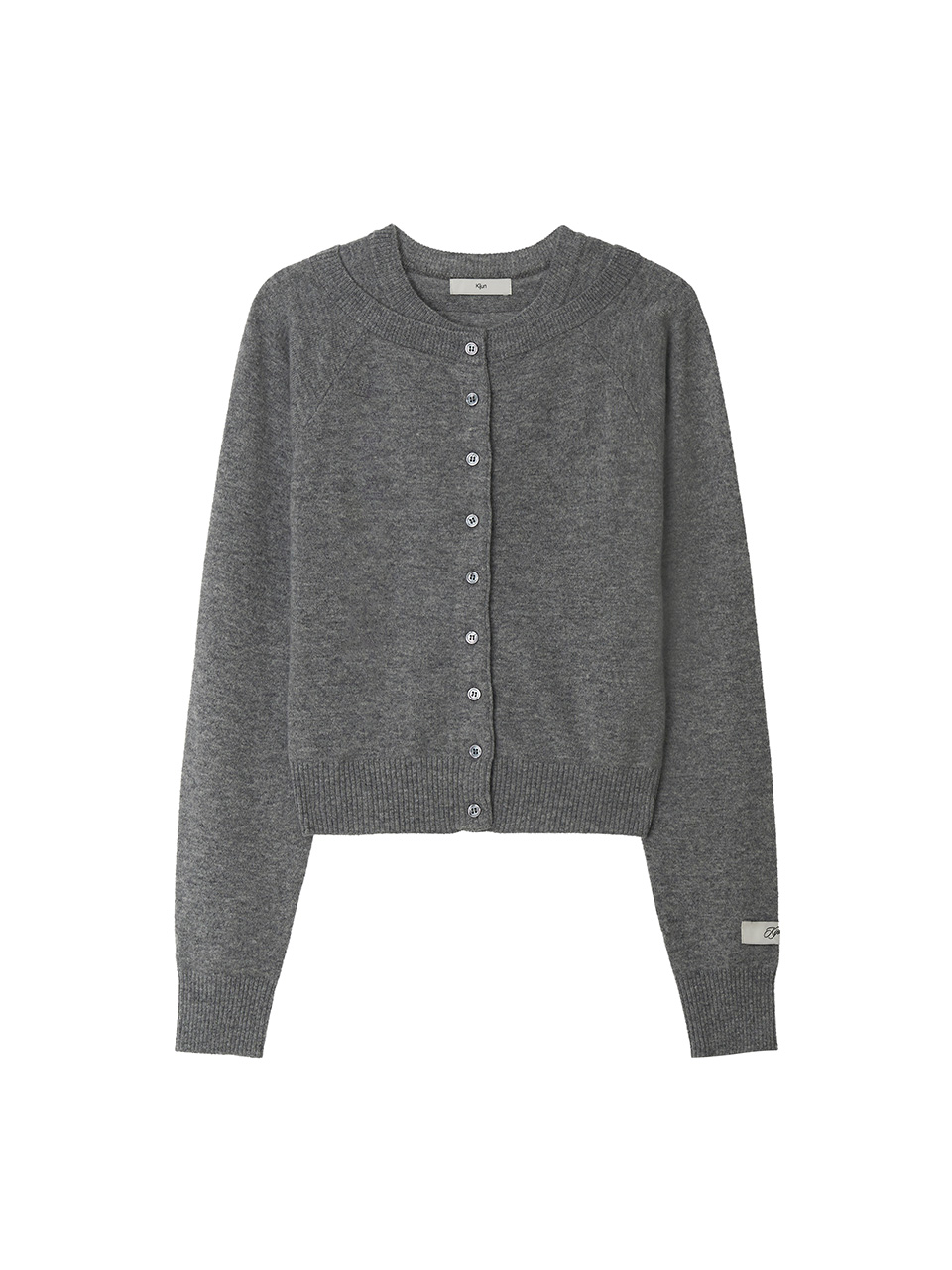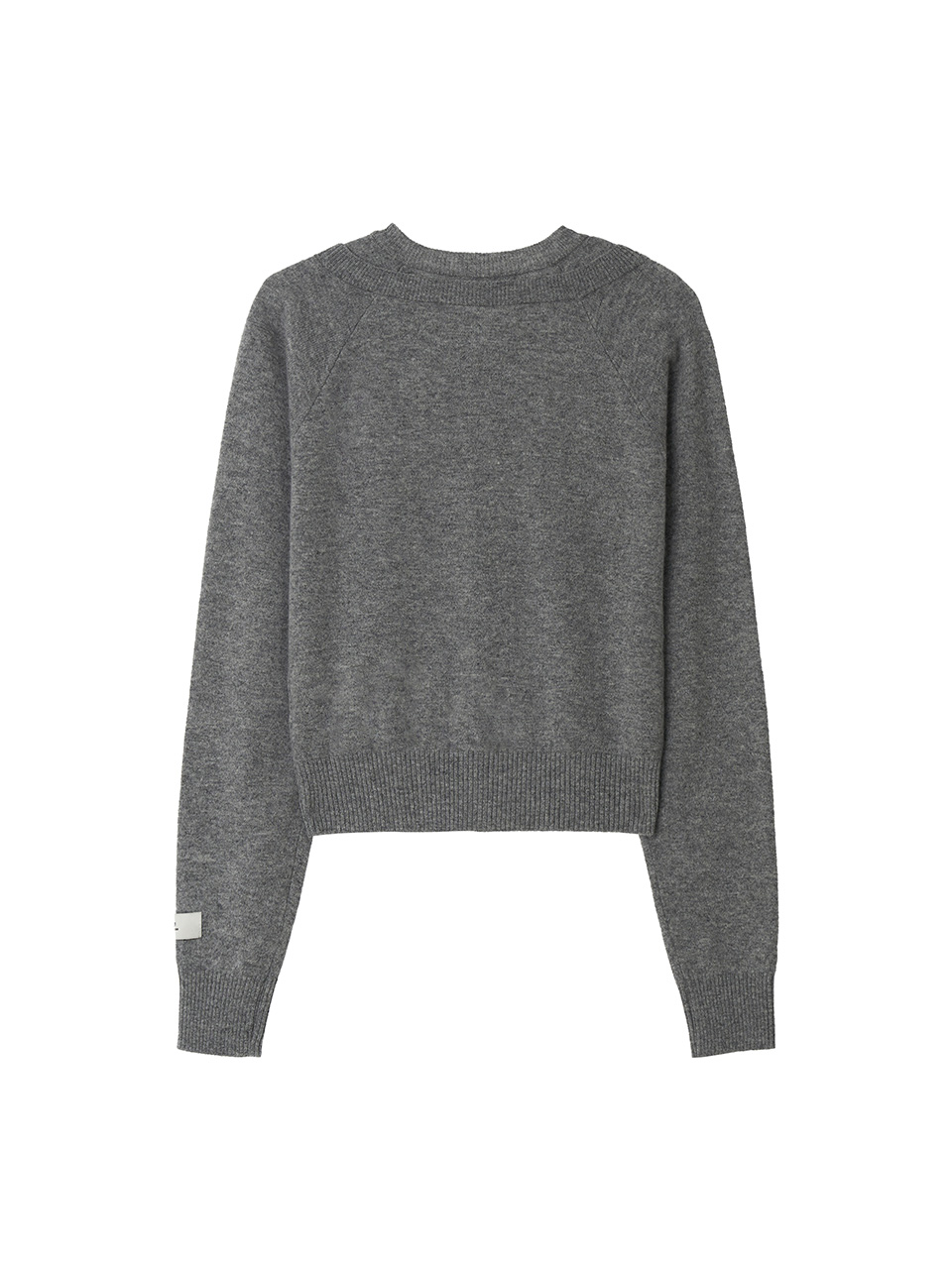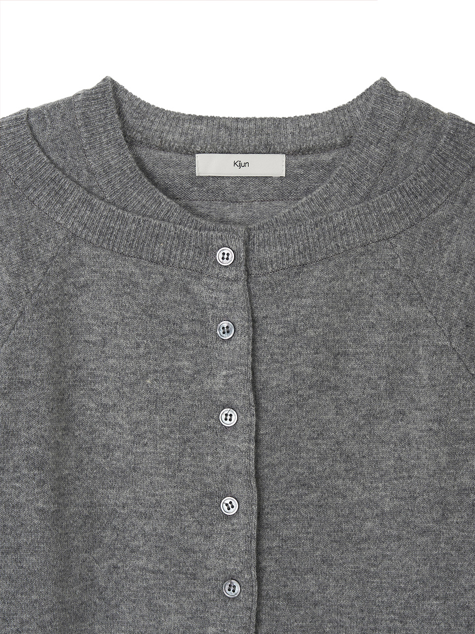 [yu x kijun] Double Neck Knit Cardigan Melange Grey