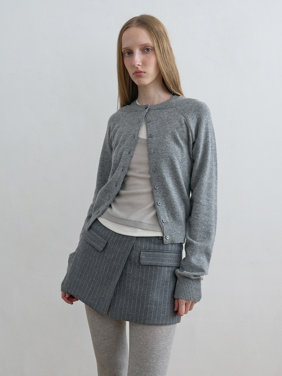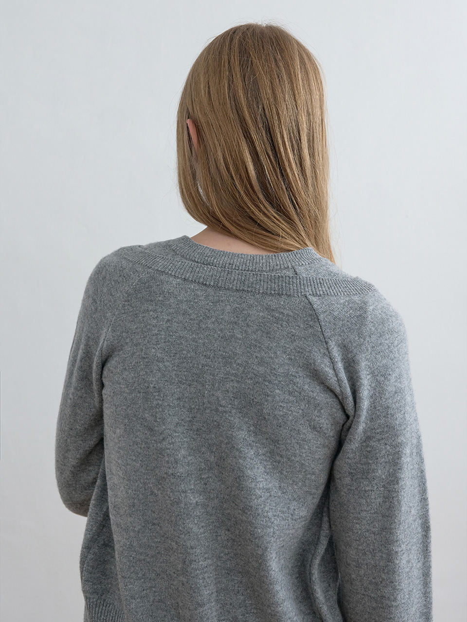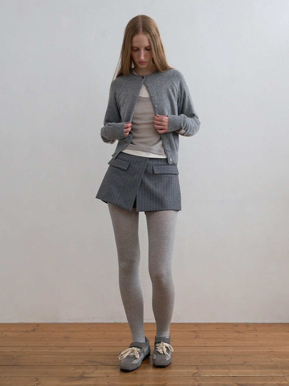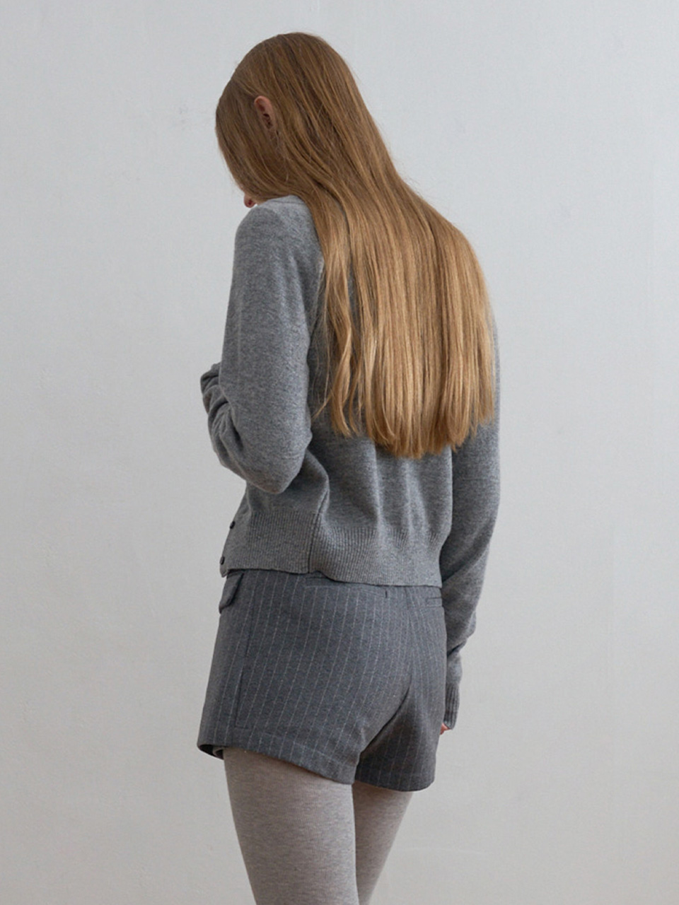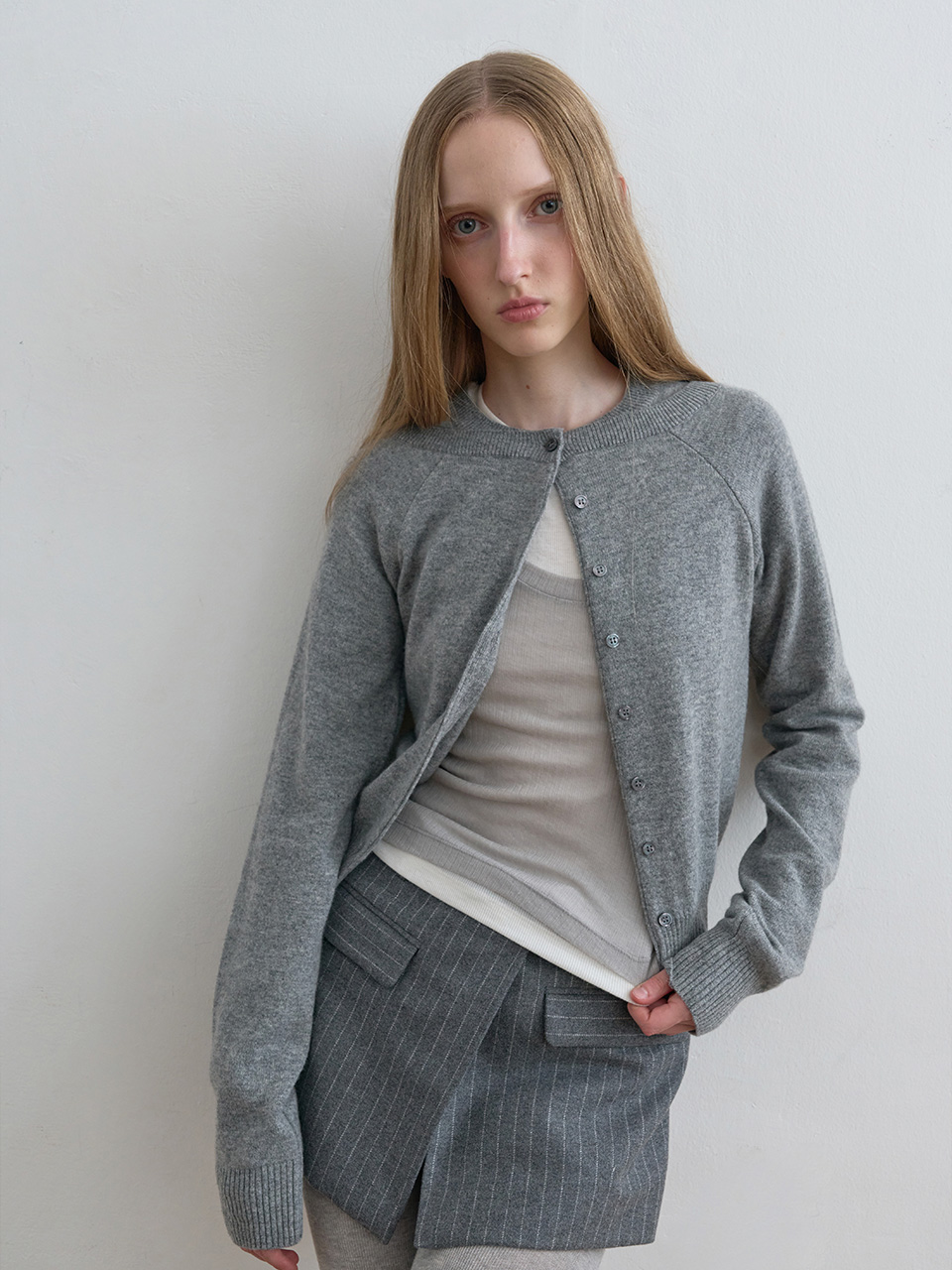 [yu x kijun] Double Neck Knit Cardigan Melange Grey