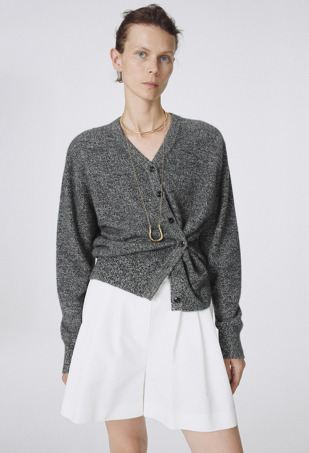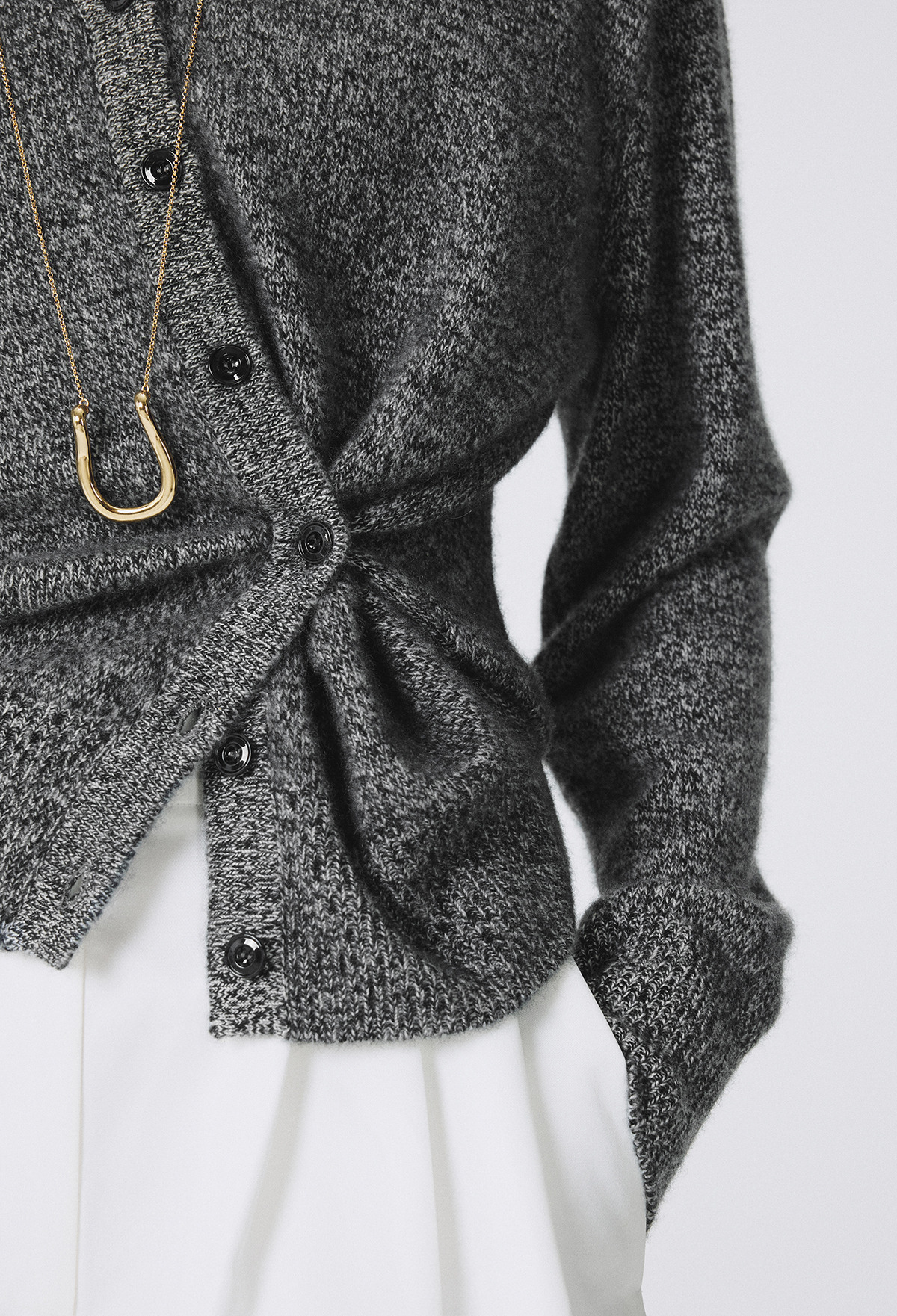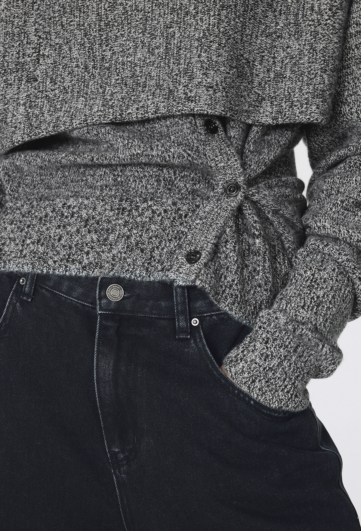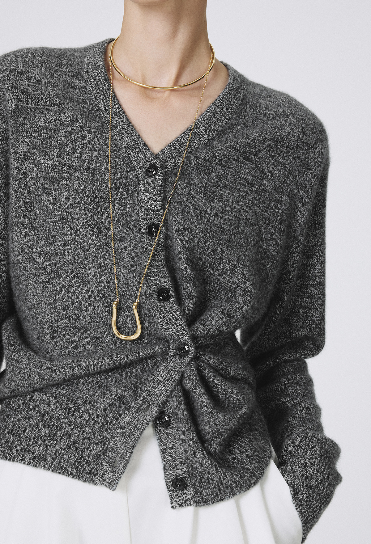 Cashmere Padded Cardigan Melange Black