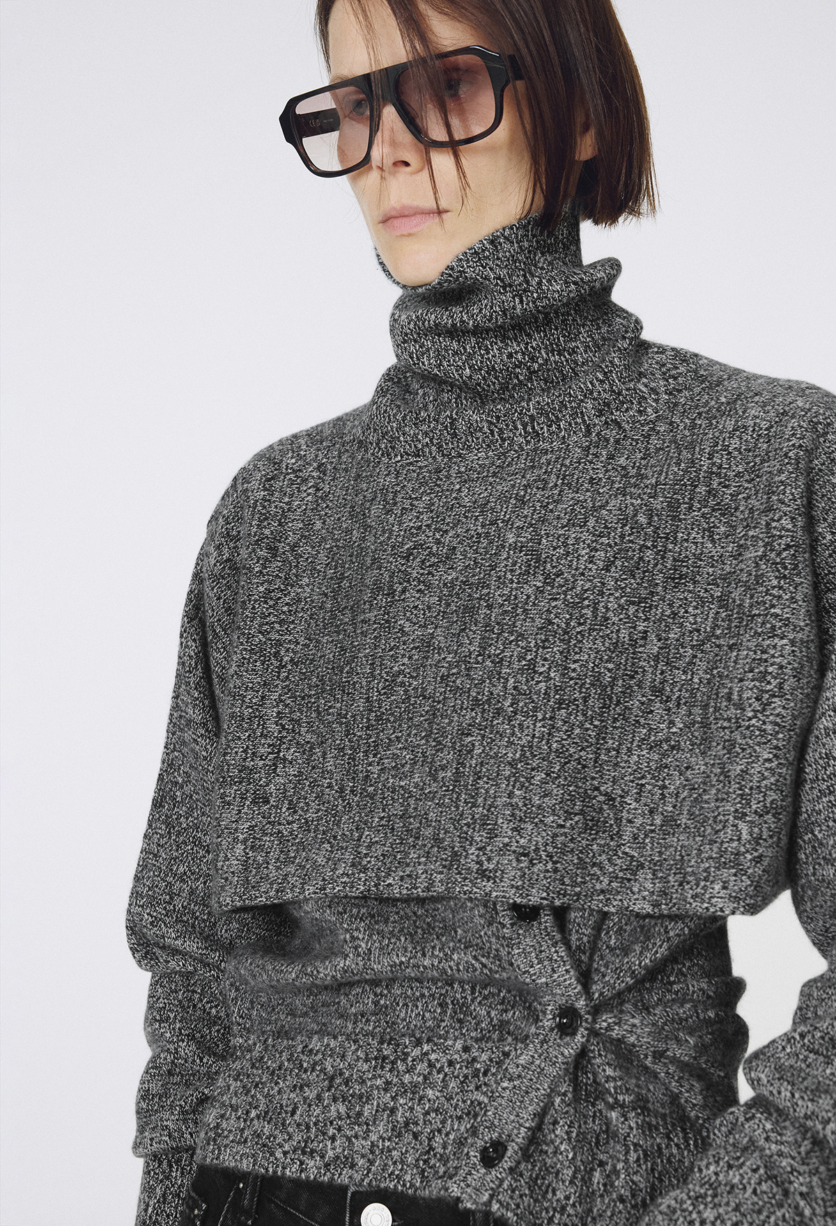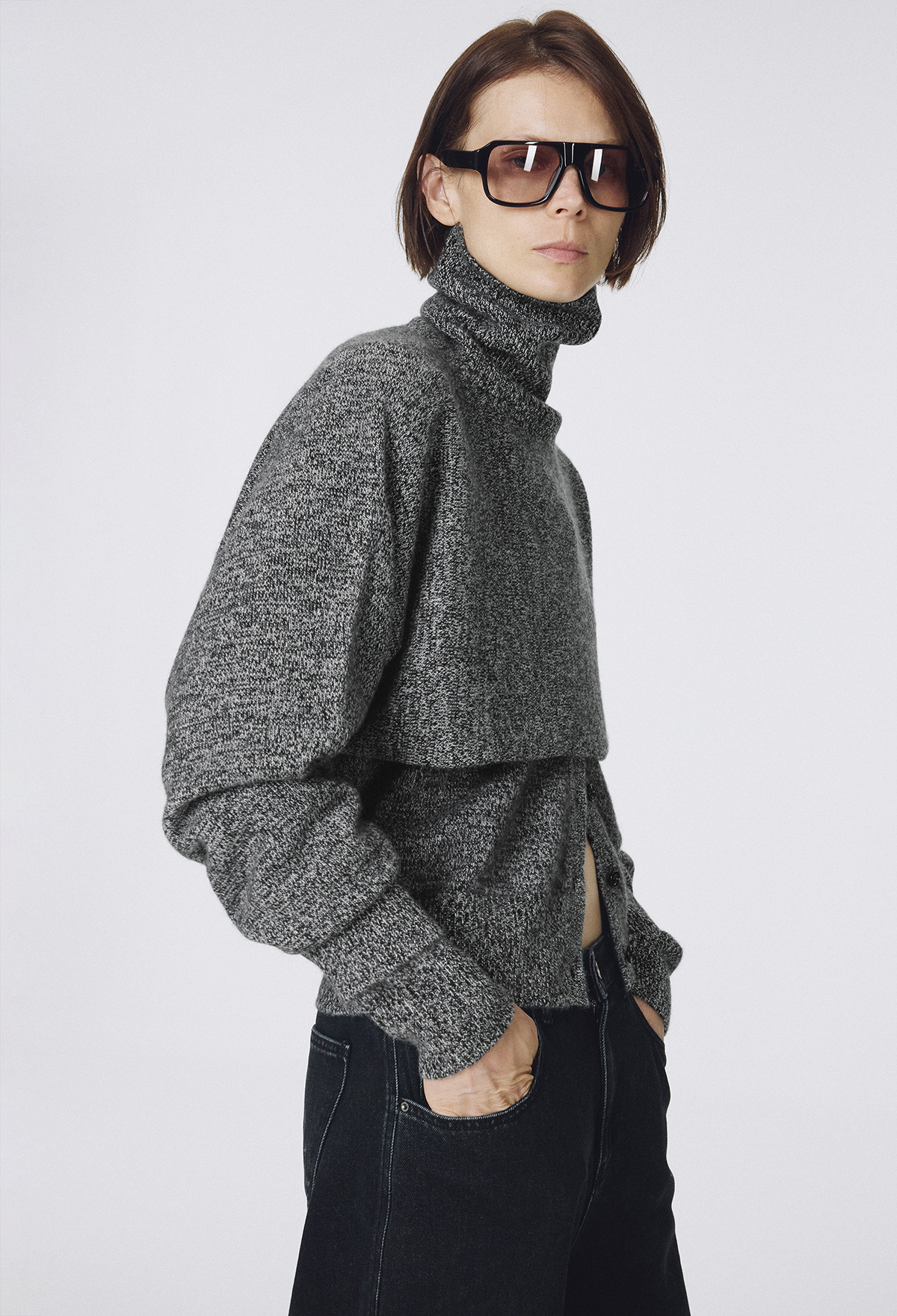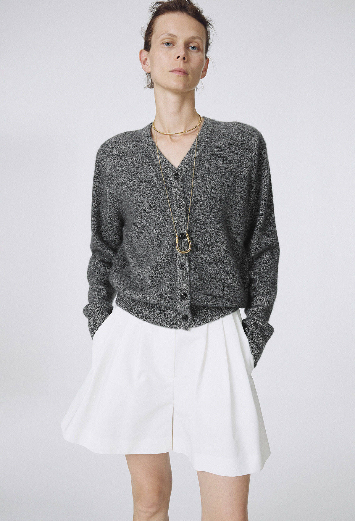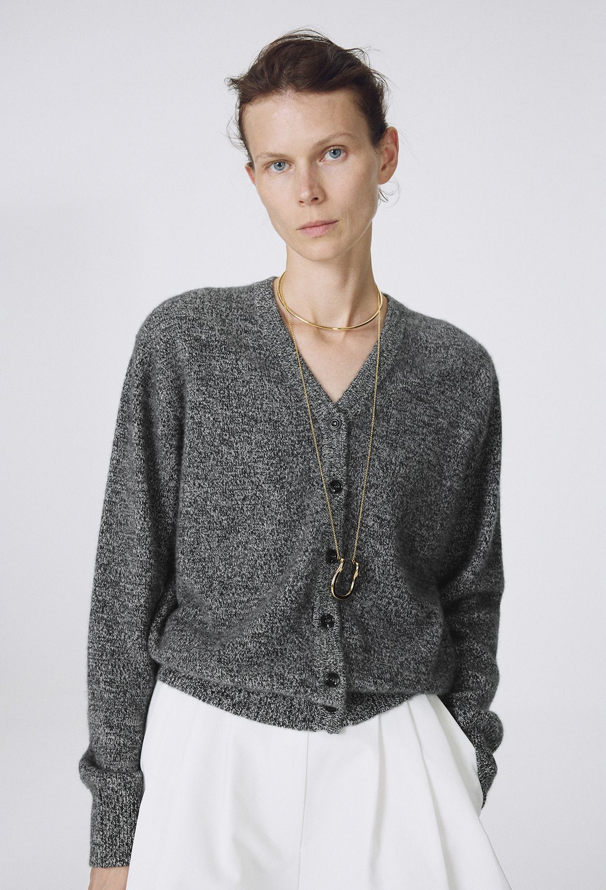 Cashmere Padded Cardigan Melange Black