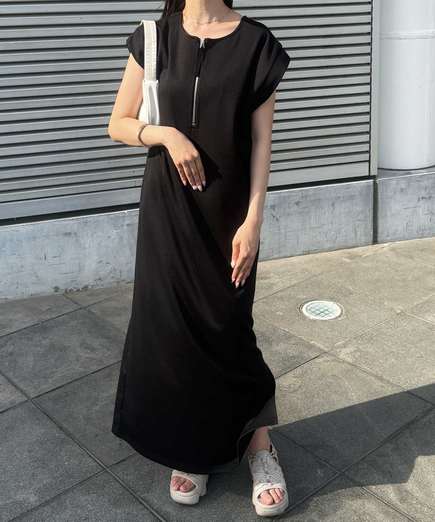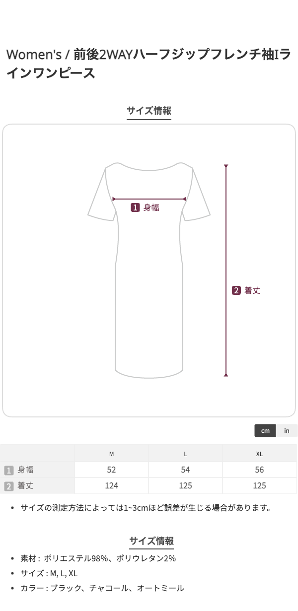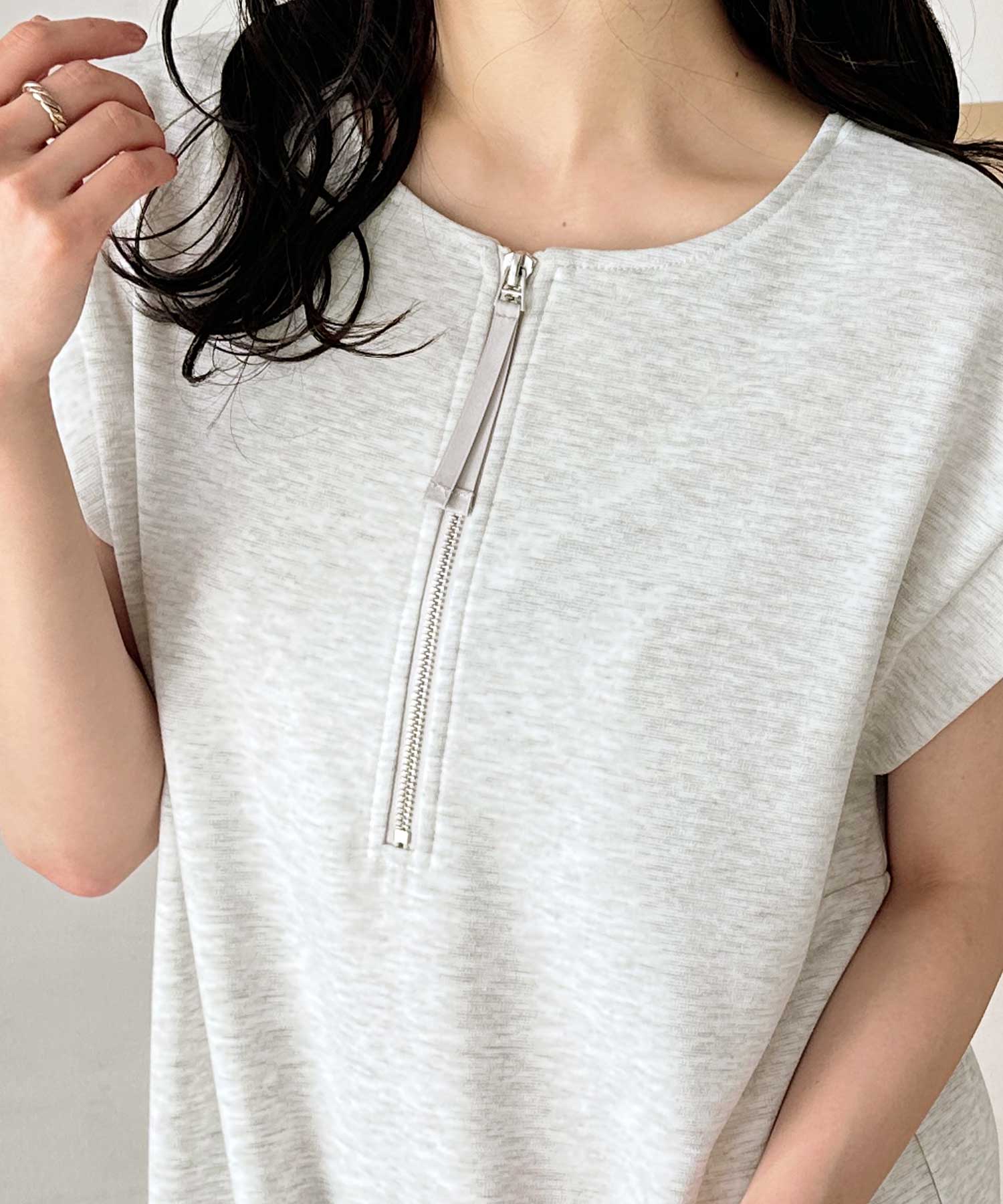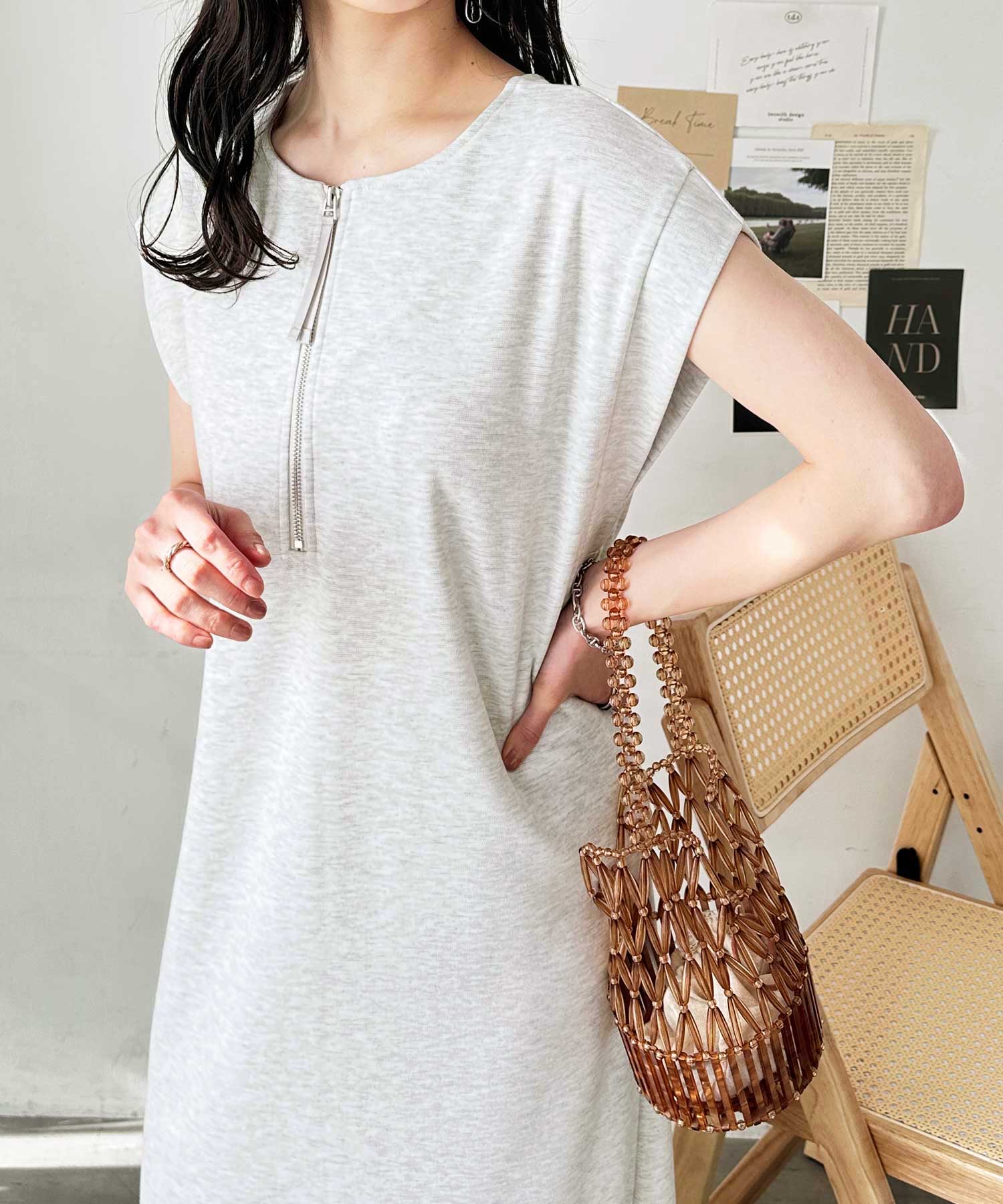 前後2WAYハーフジップフレンチ袖Iラインワンピース