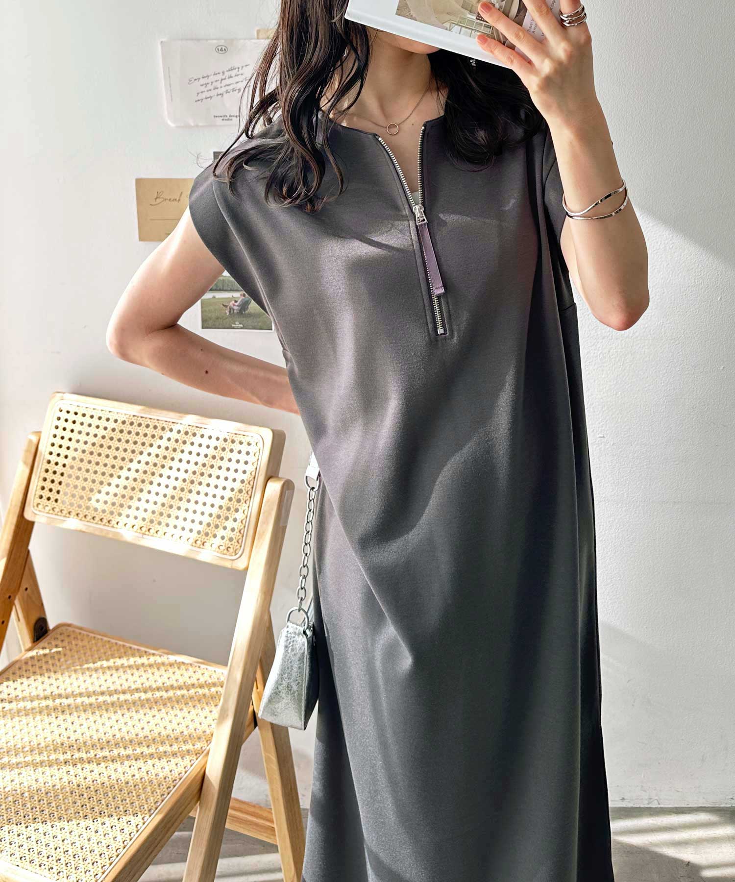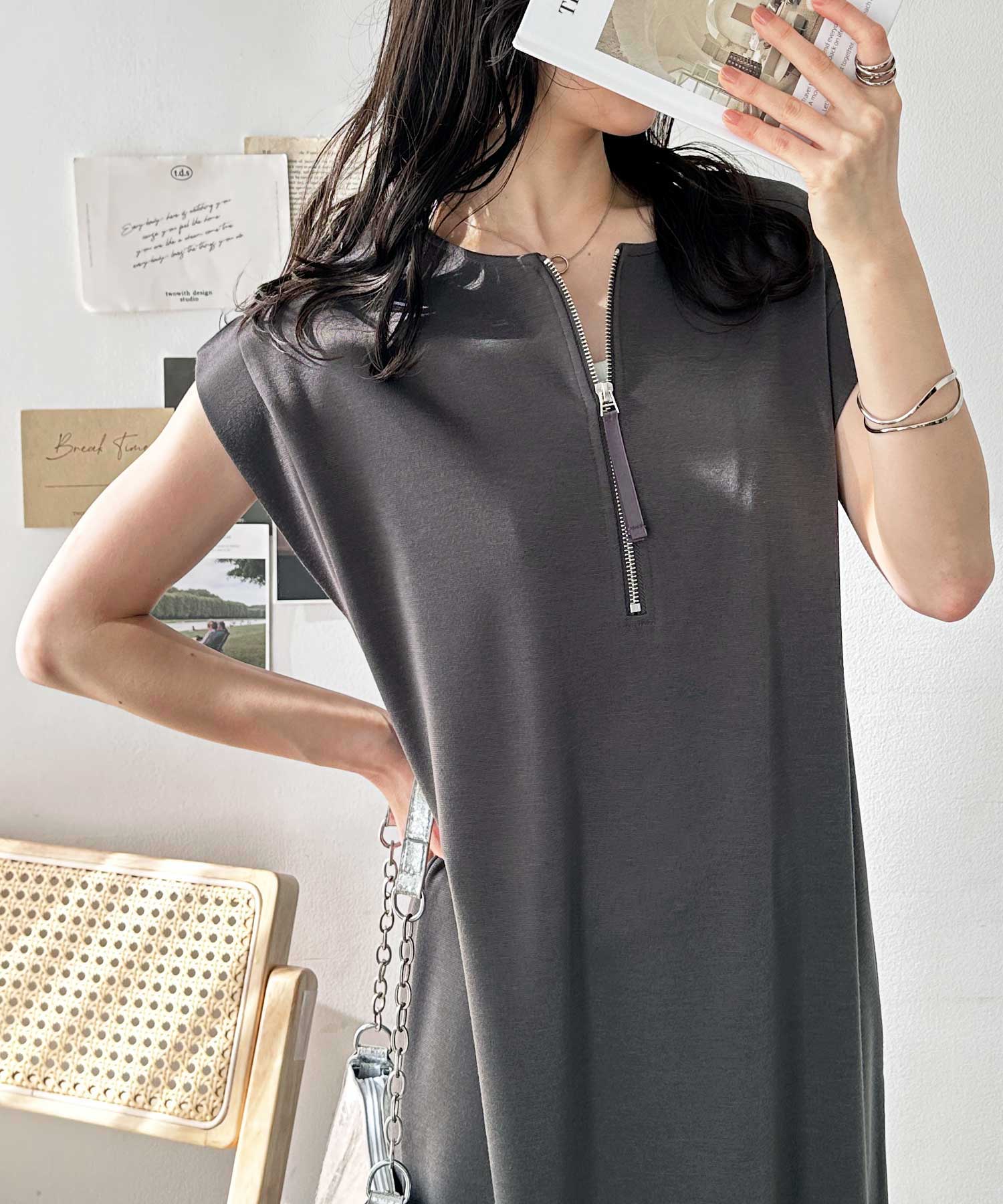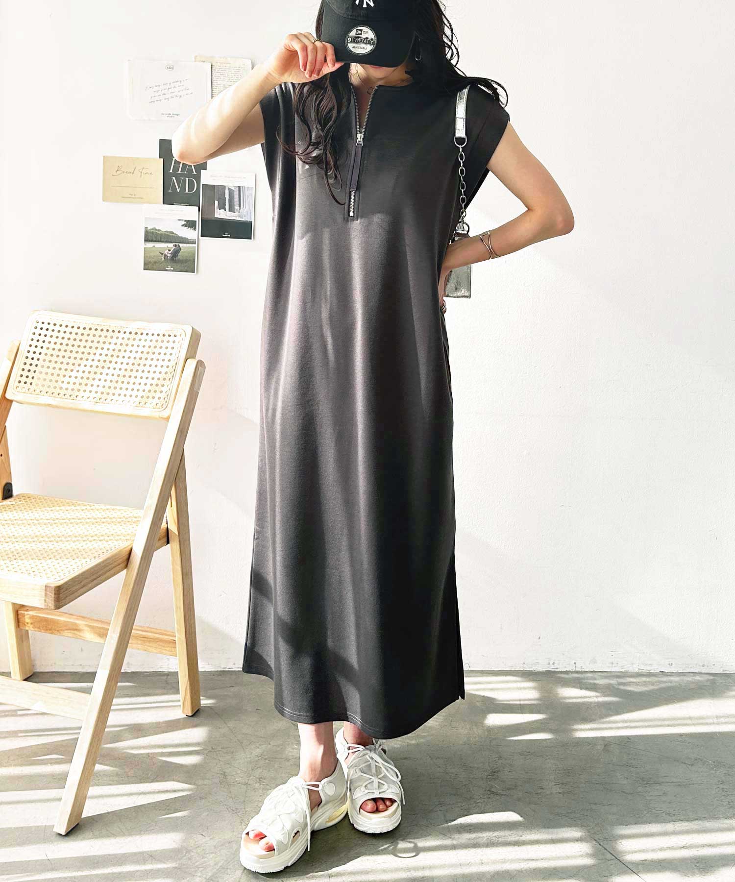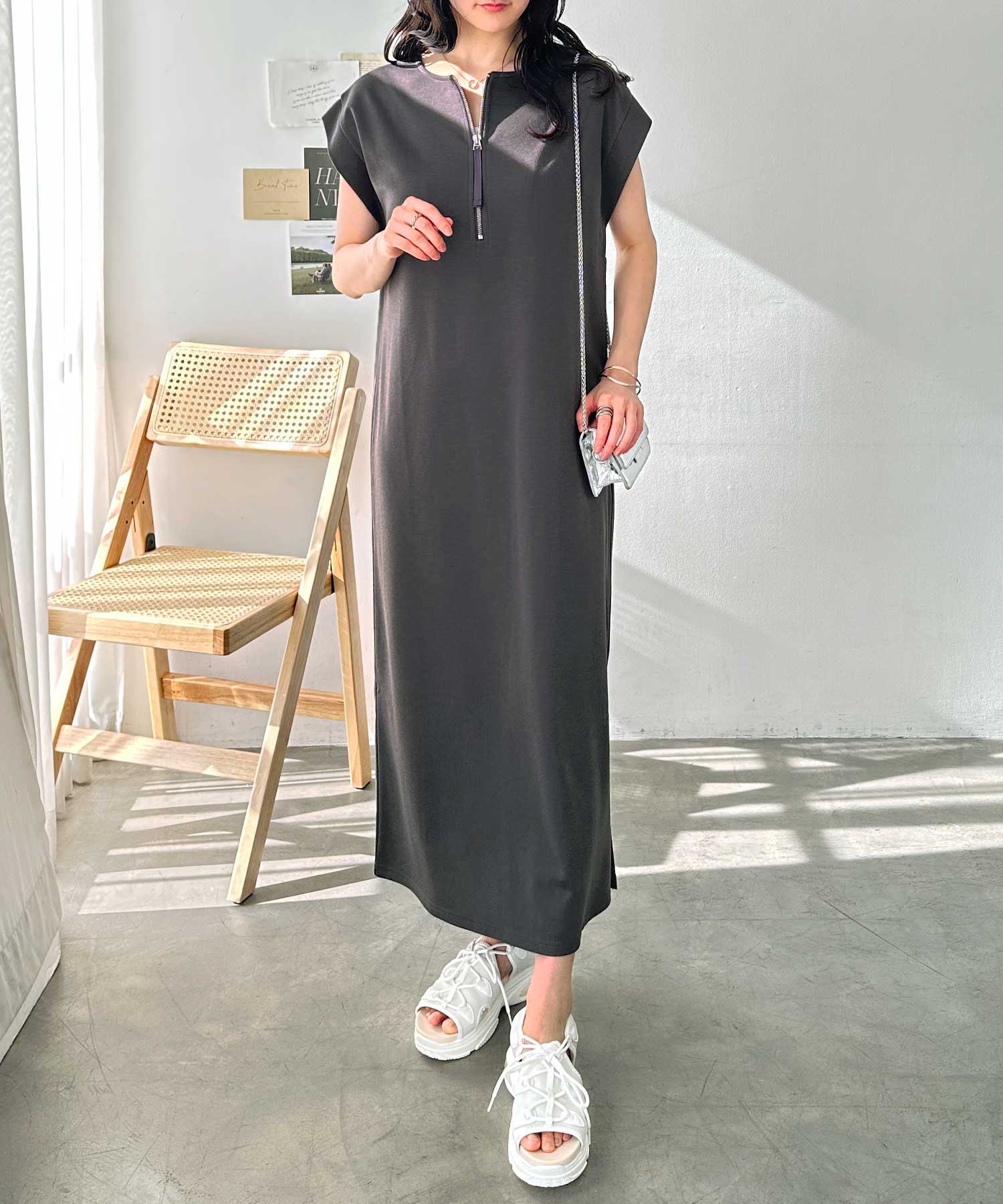 ハーフジップがお洒落のアクセントに。大人っぽいワンピース。