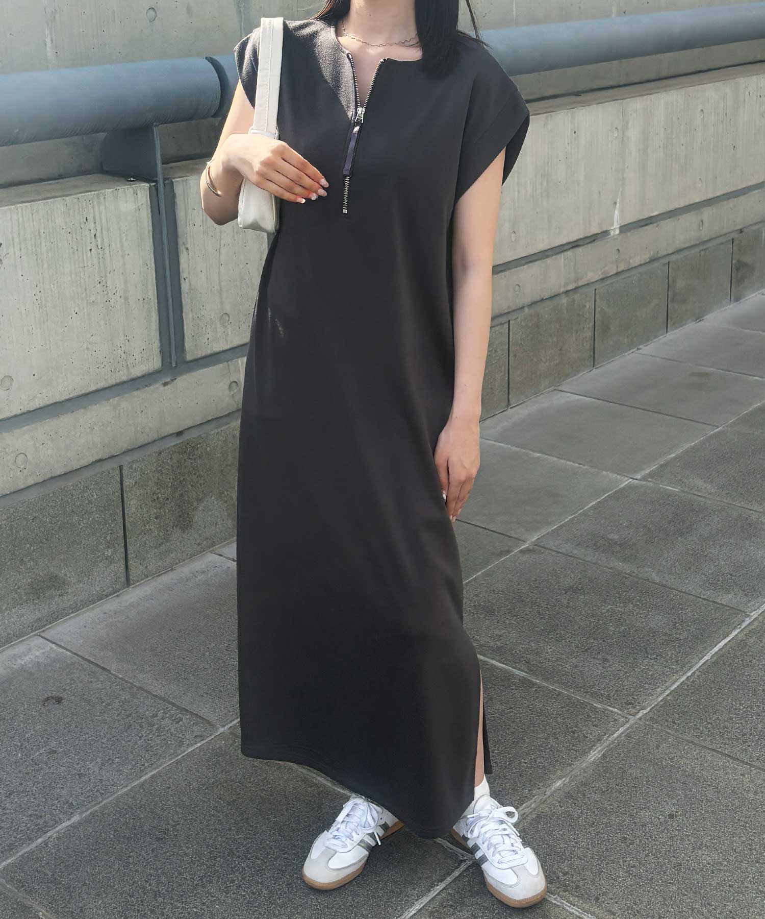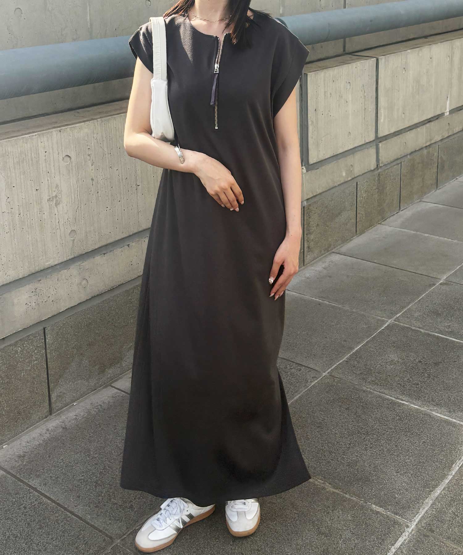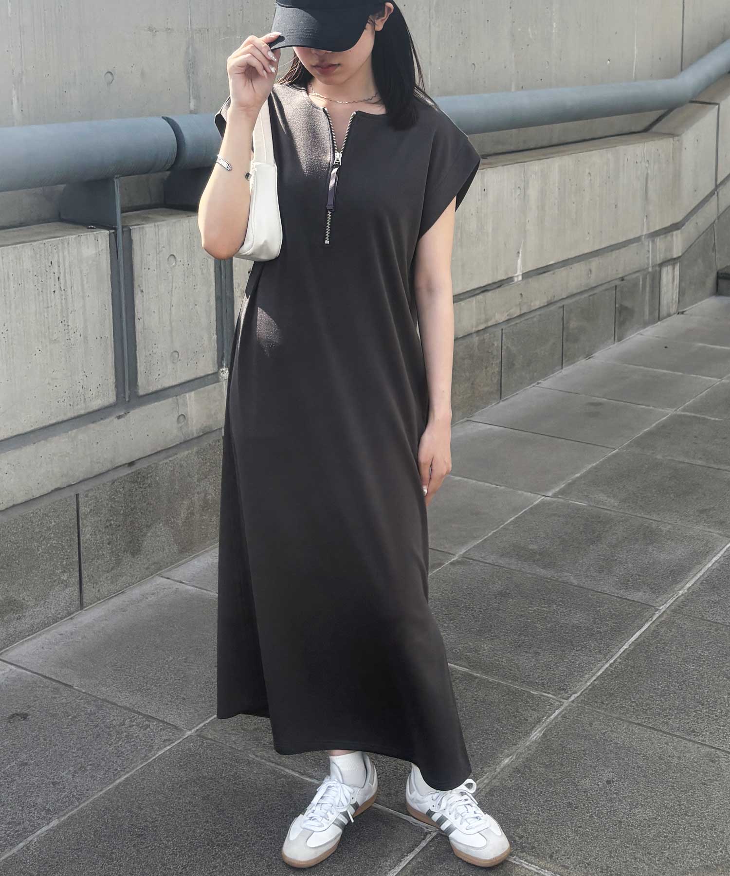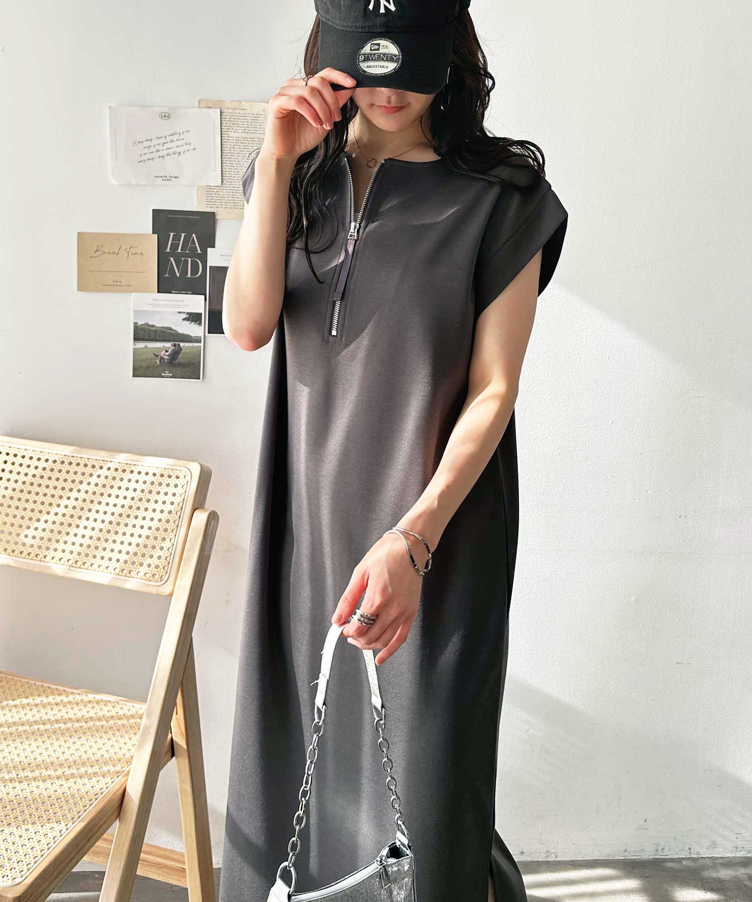 ハーフジップがお洒落のアクセントに。大人っぽいワンピース。