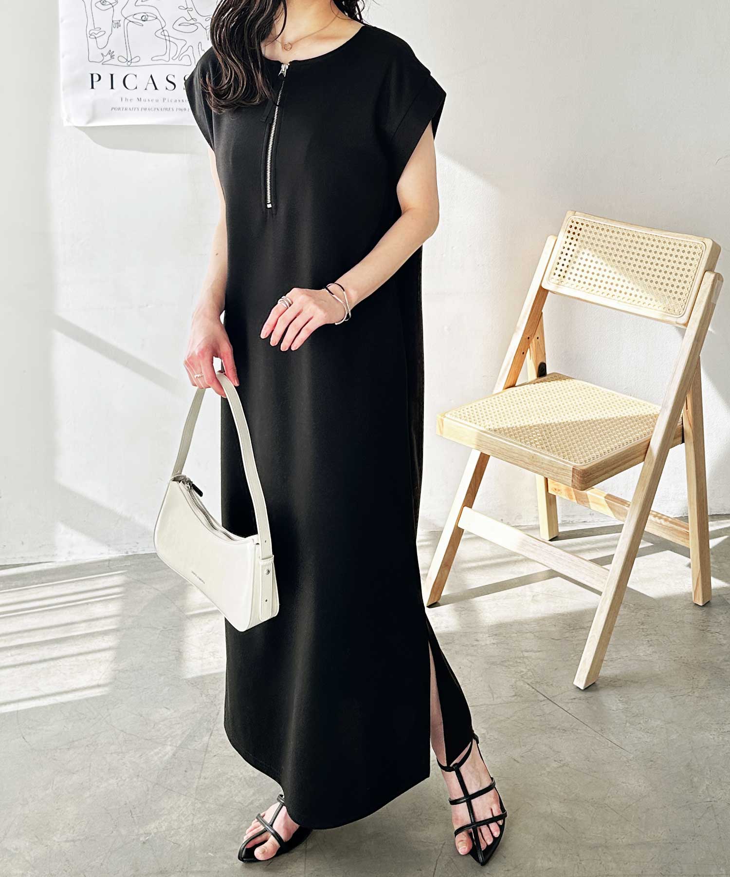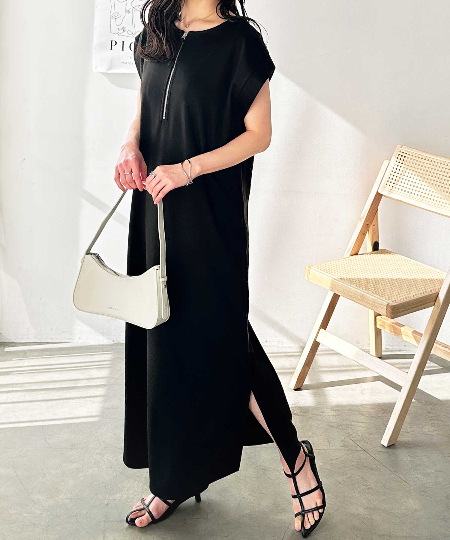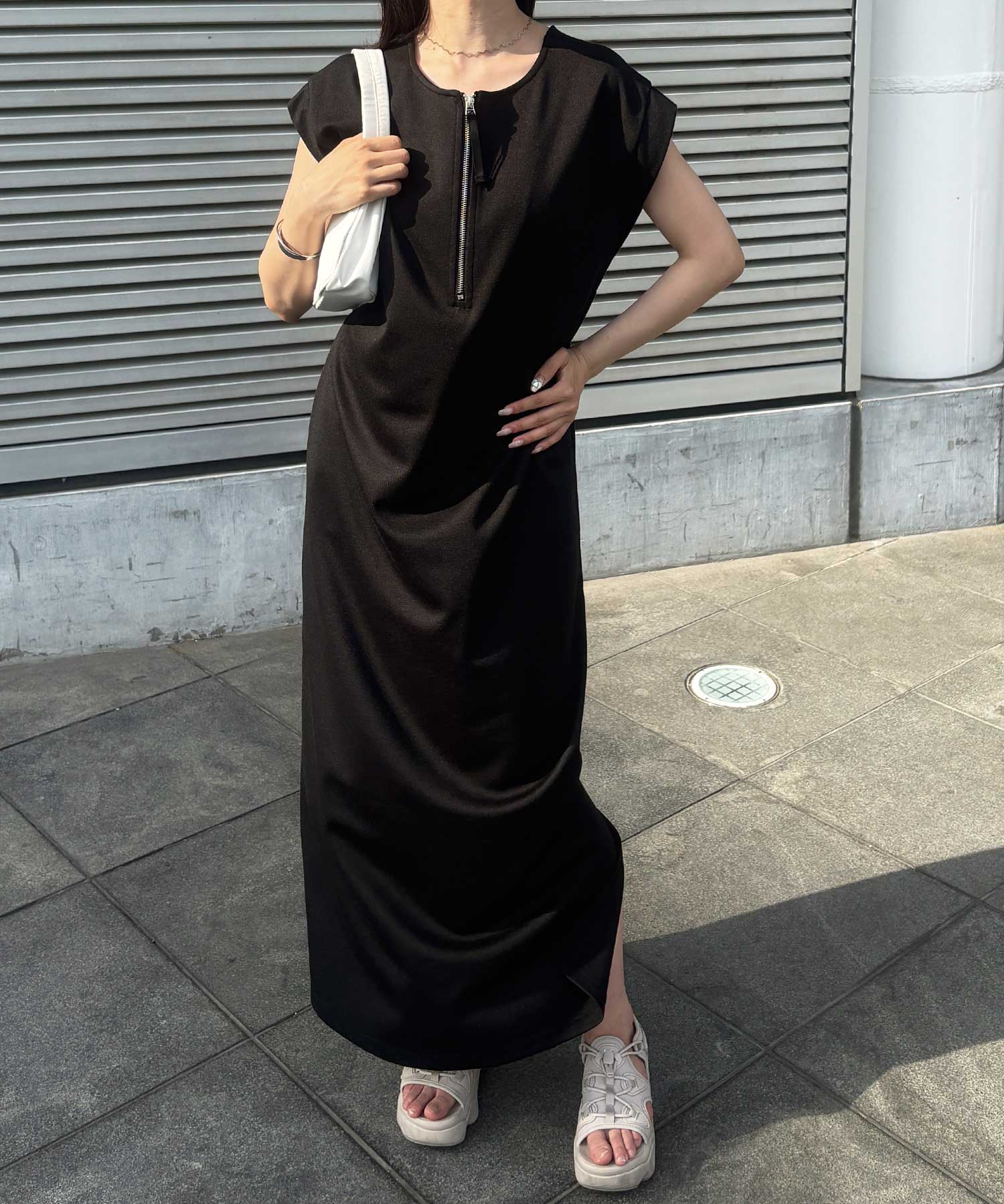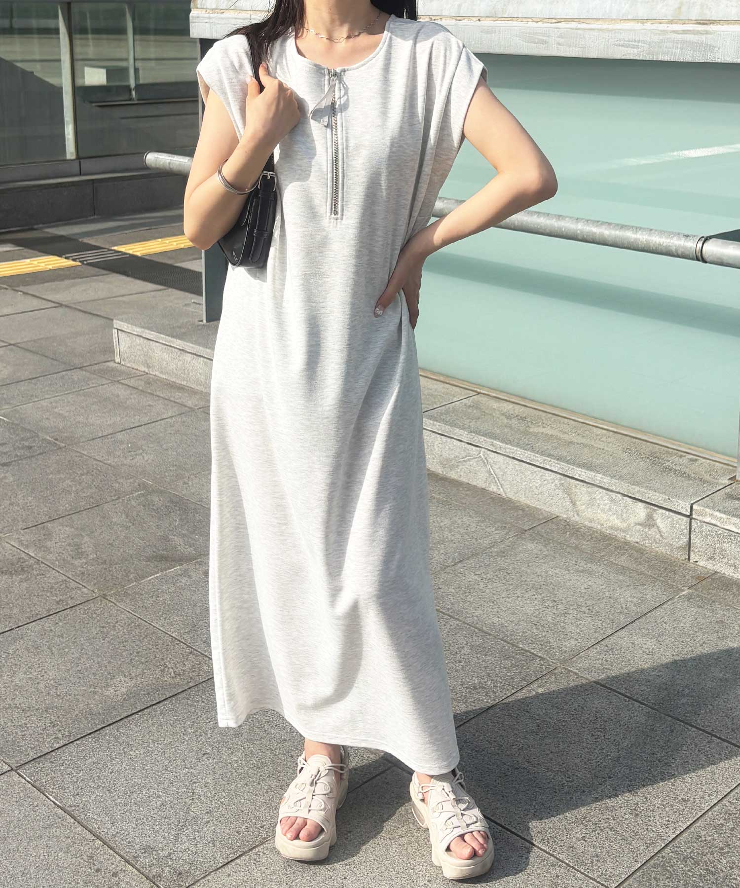 ハーフジップがお洒落のアクセントに。大人っぽいワンピース。