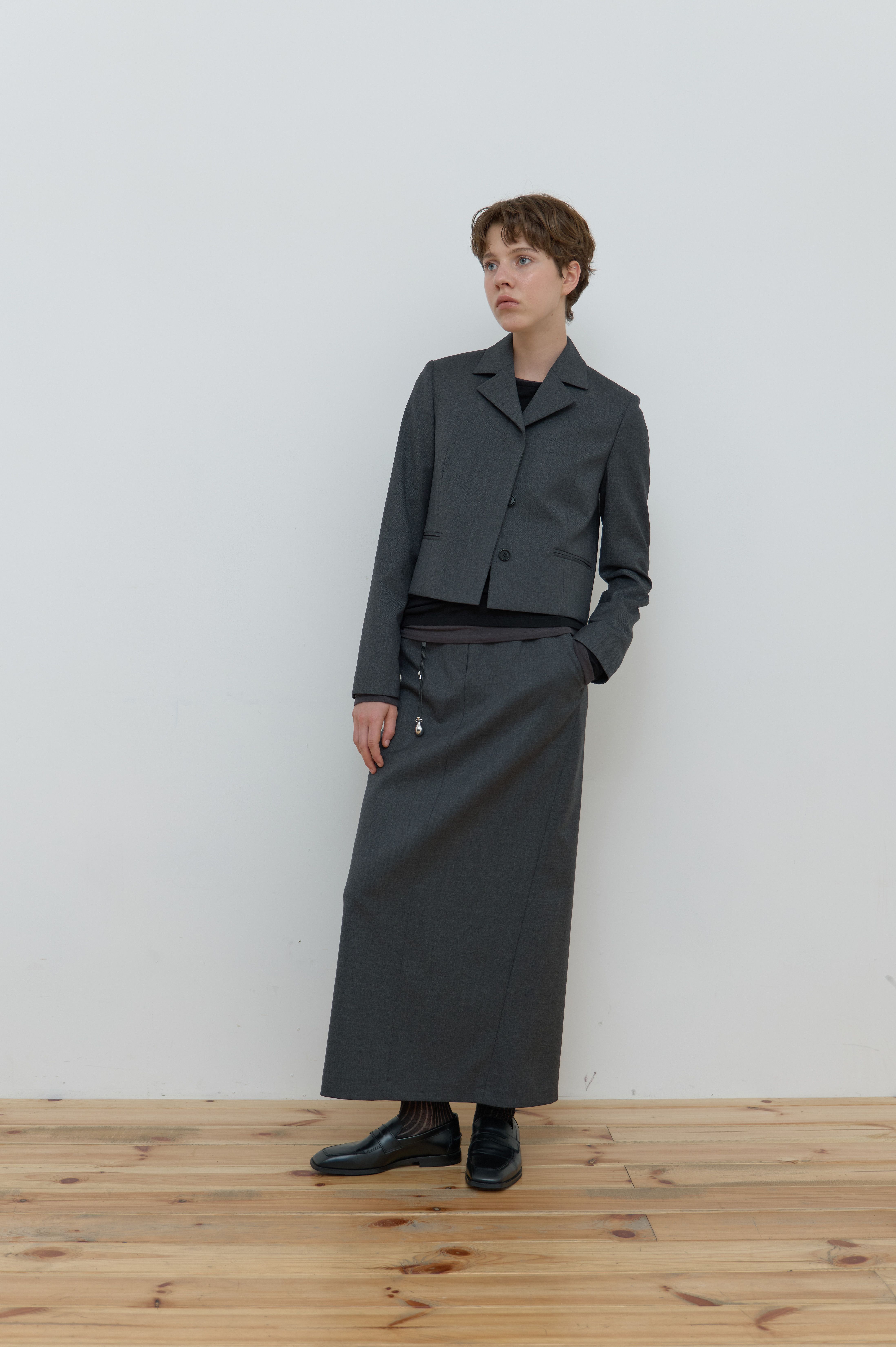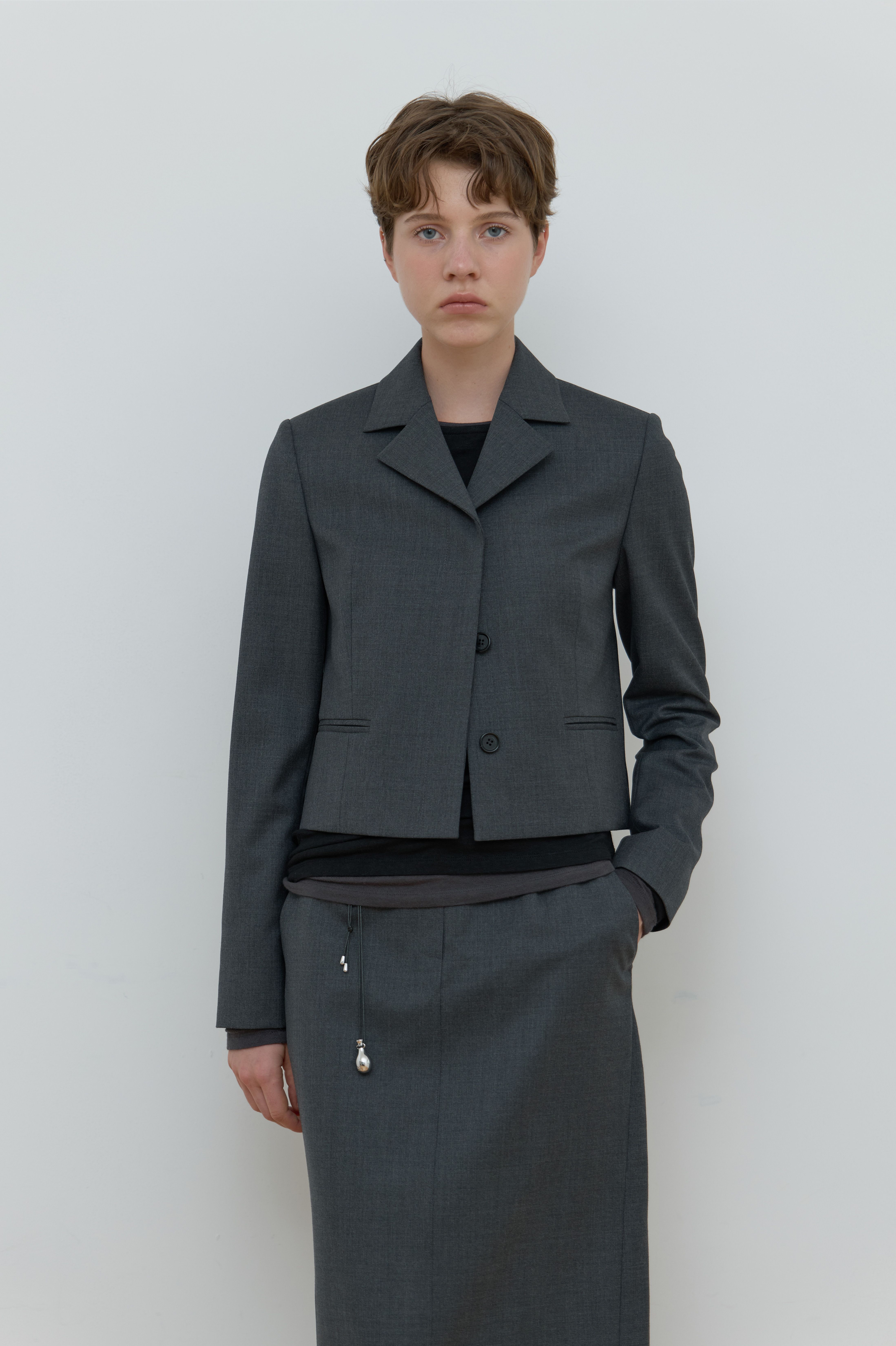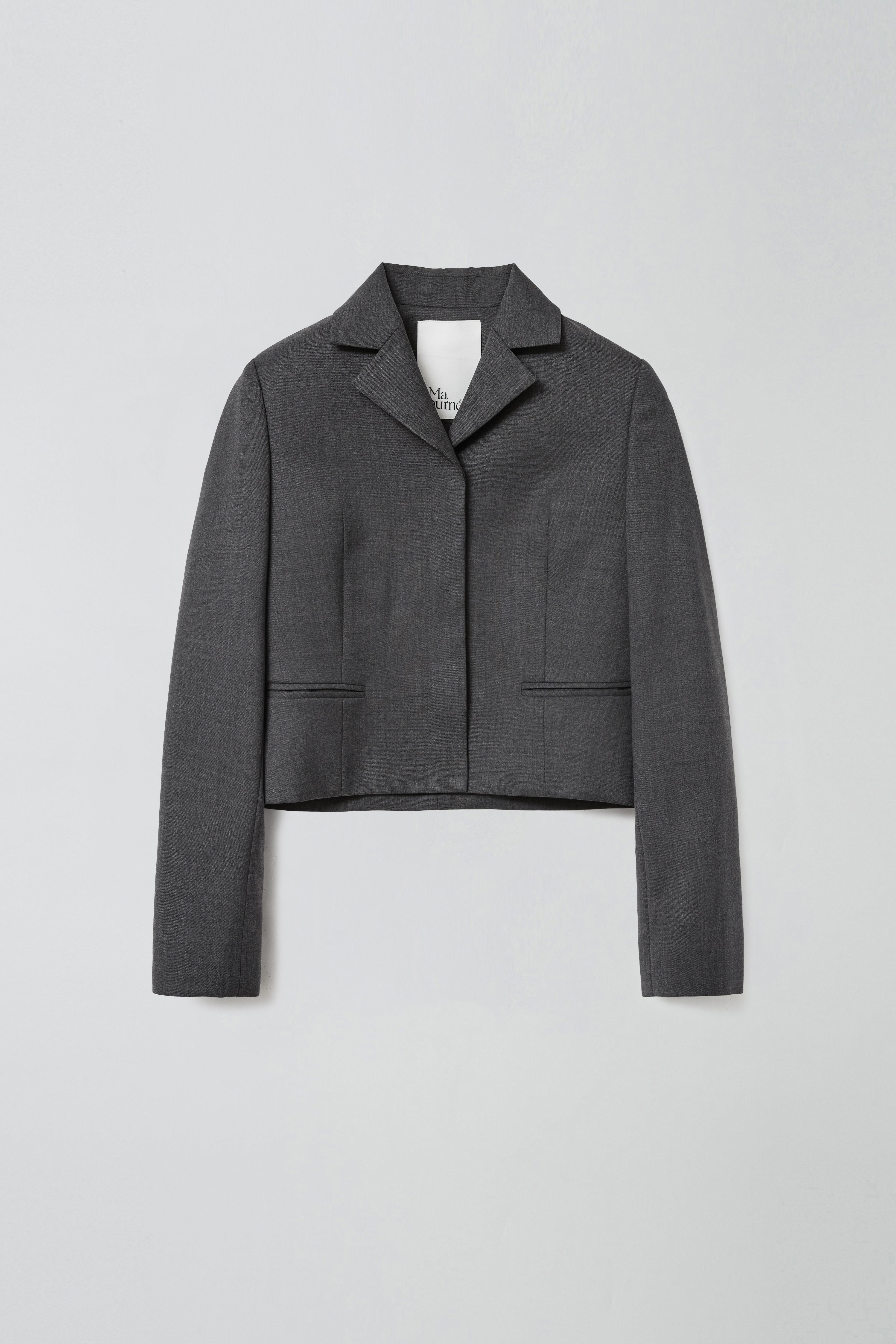 SINGLE HIDDEN CROP JACKET_MELANGE GREY
