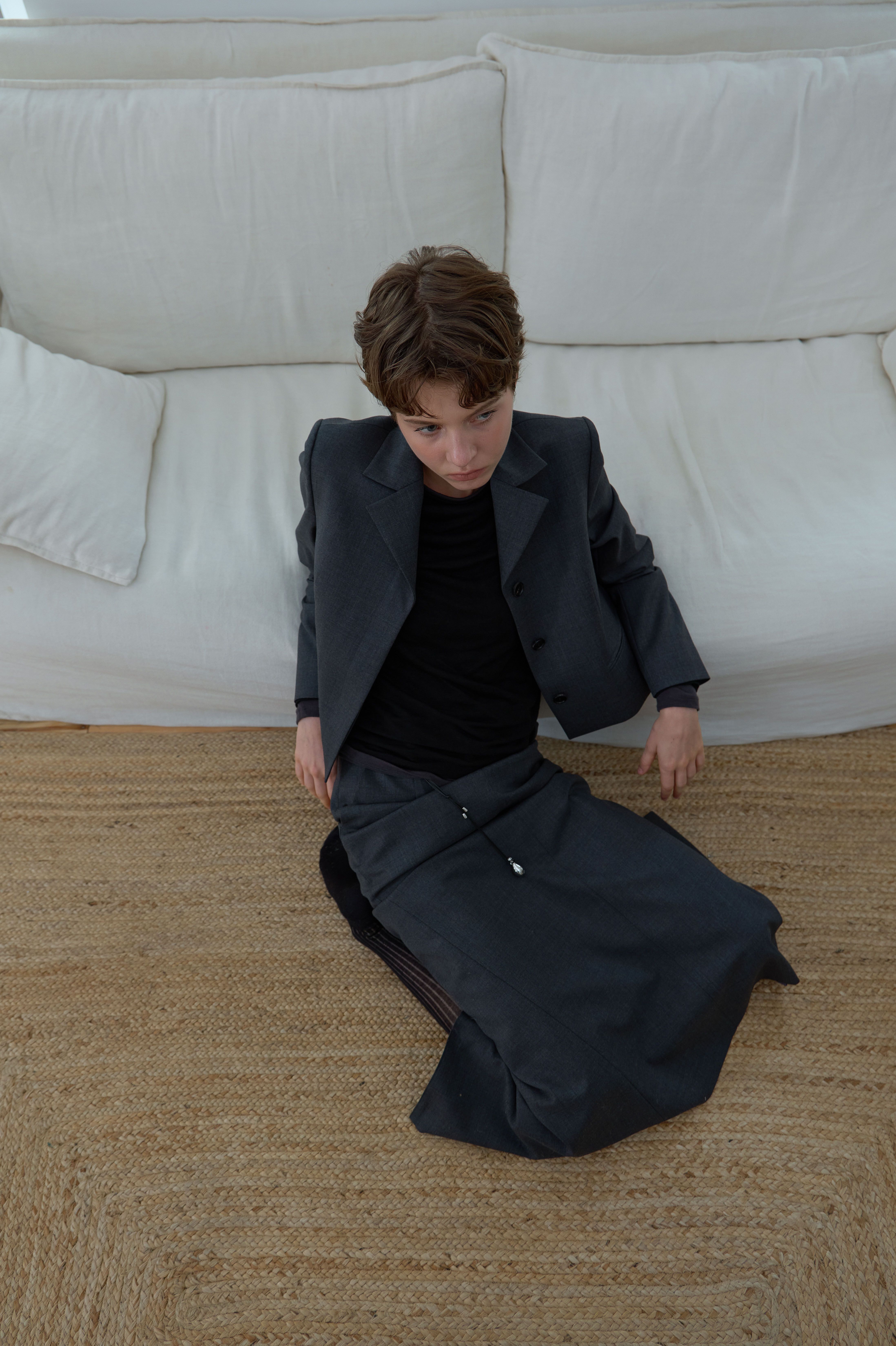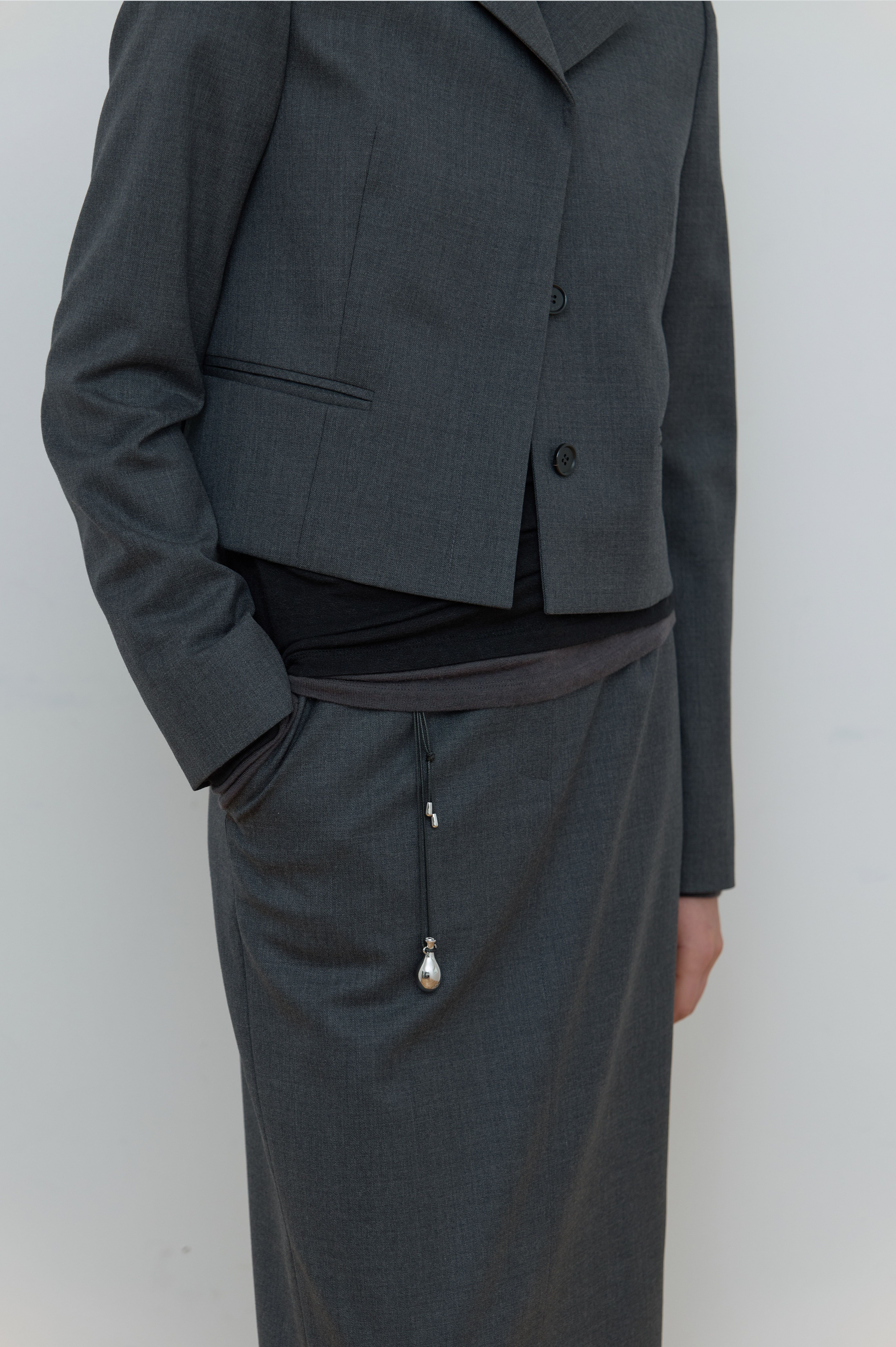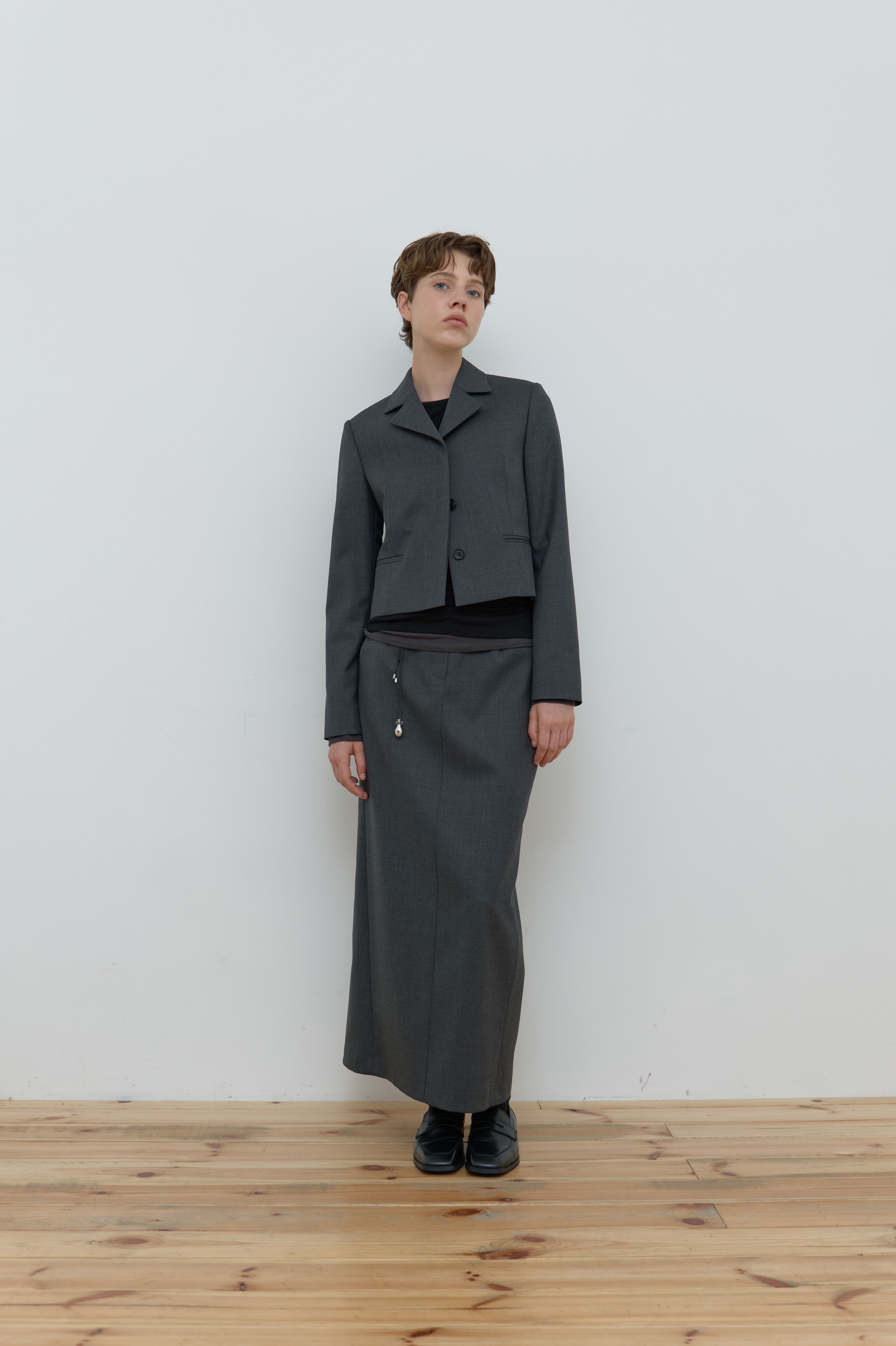SINGLE HIDDEN CROP JACKET_MELANGE GREY