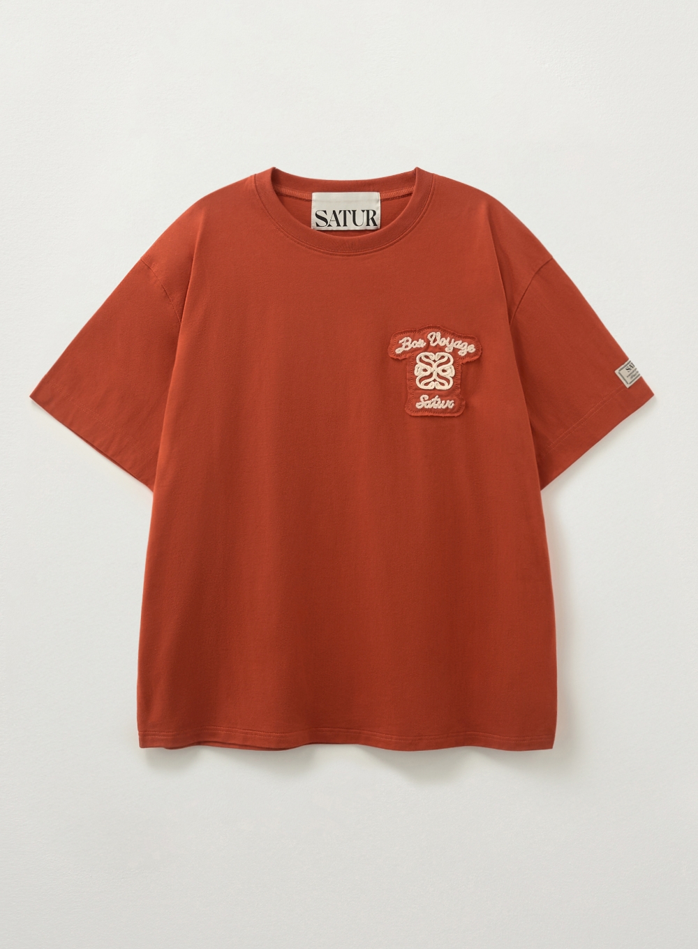 Bon Voyage Raw-Cut Applique T-Shirt - Brick Orange