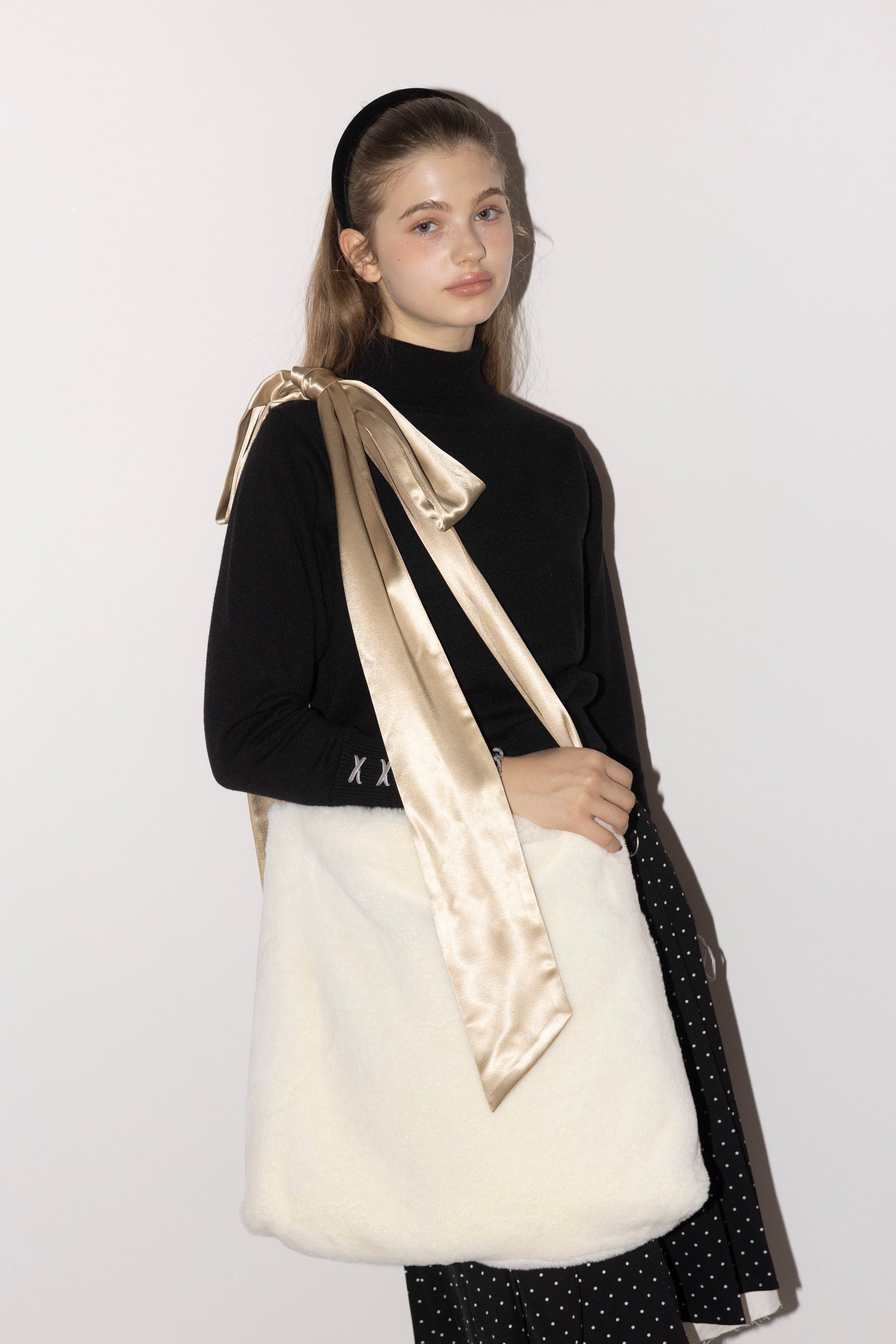 fur big ribbon tote bag