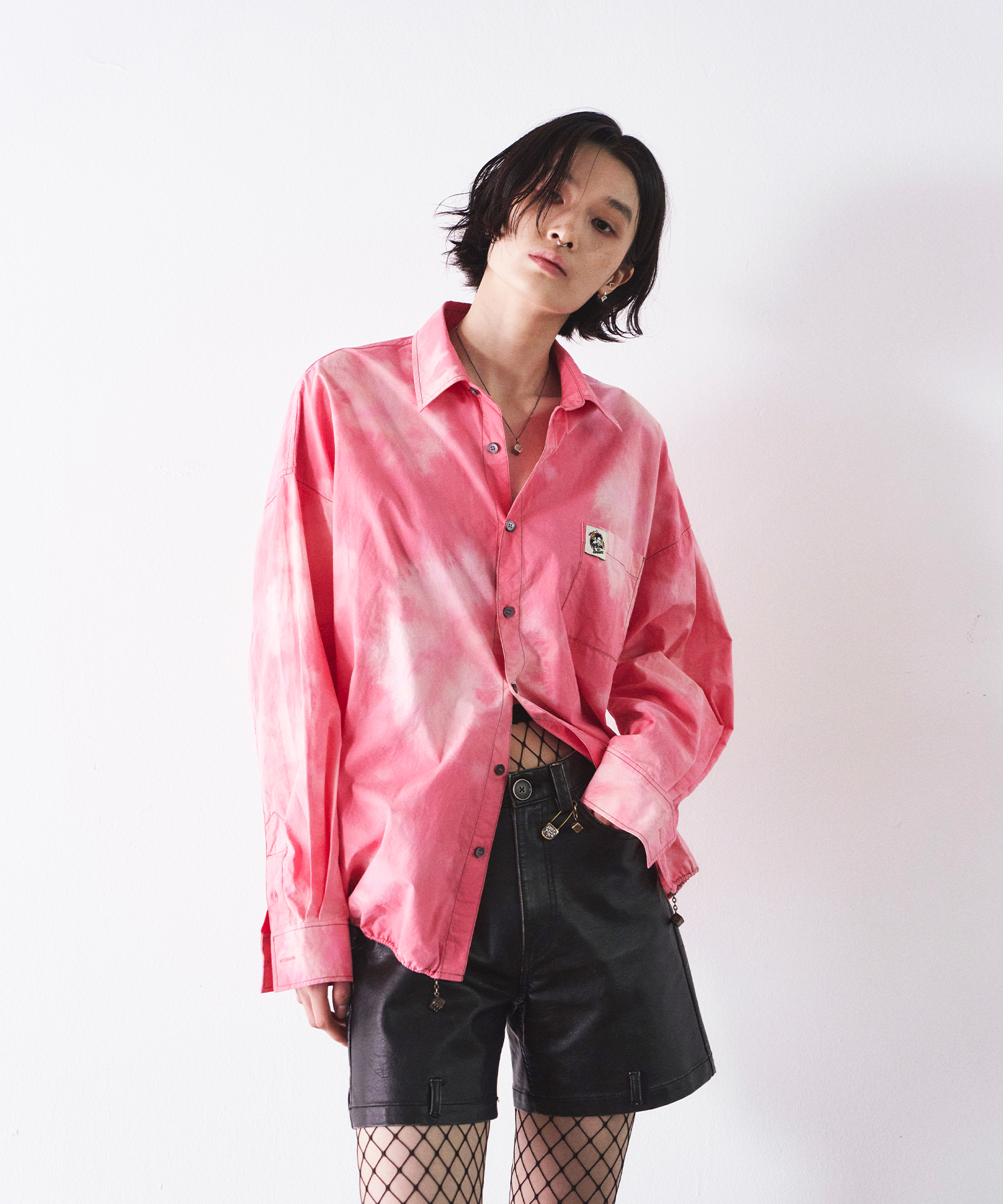 Hand bleached cotton shirts (salmon pink ver.)