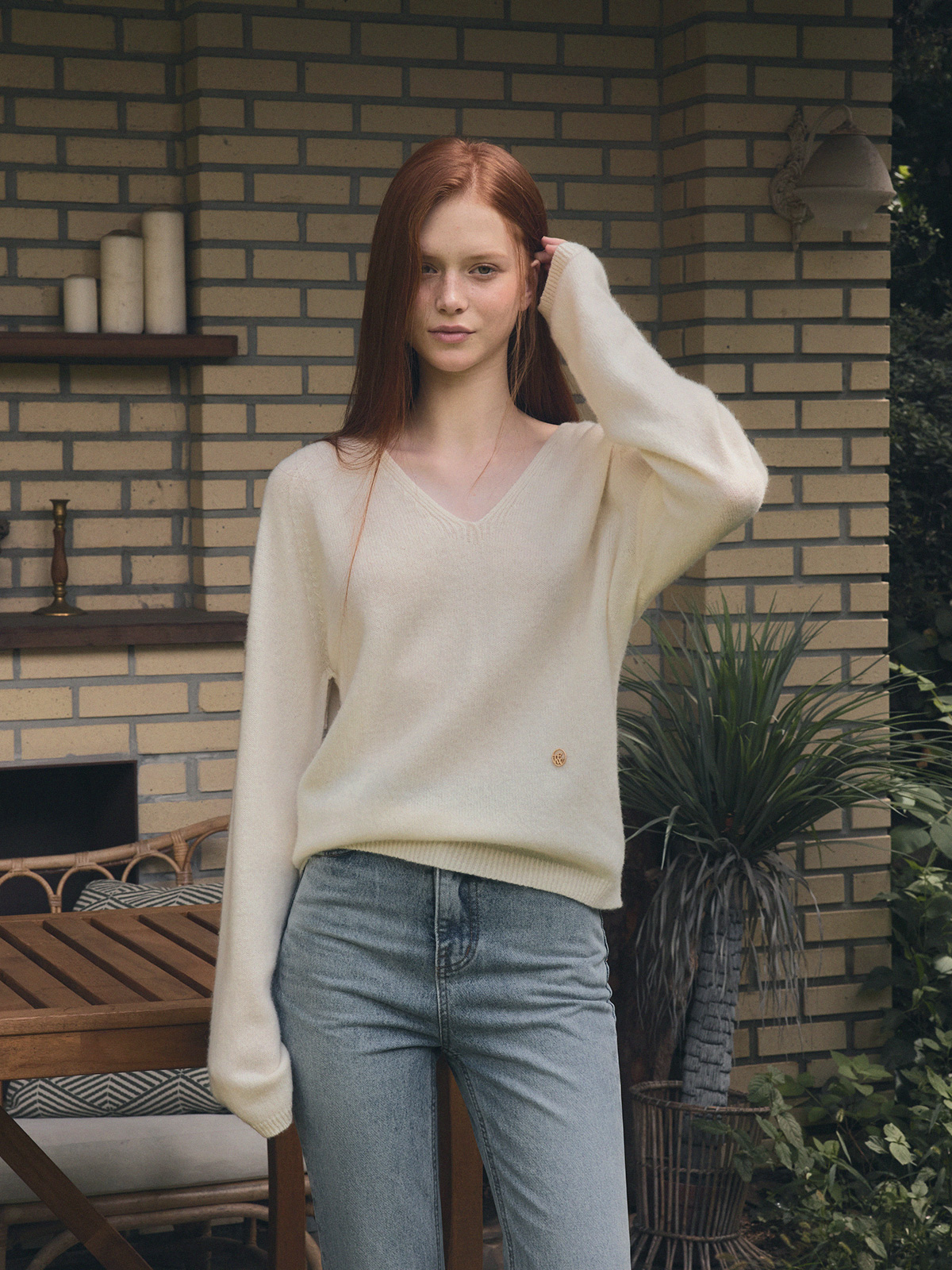 Longc Pastel V-Neck Long-Sleeve Knit