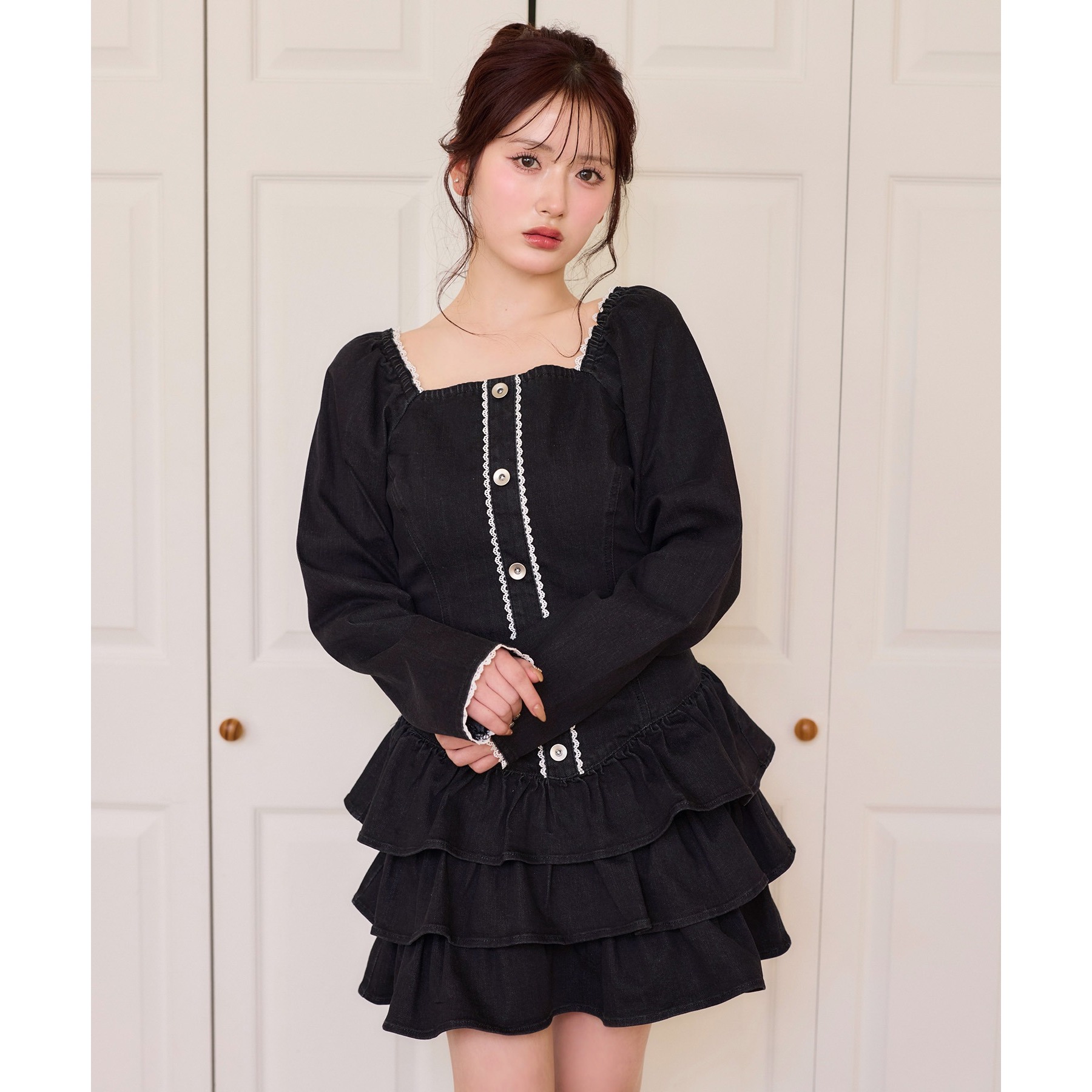 ふんわり広がるティアードデザインが可愛い、主役級ミニワンピース。