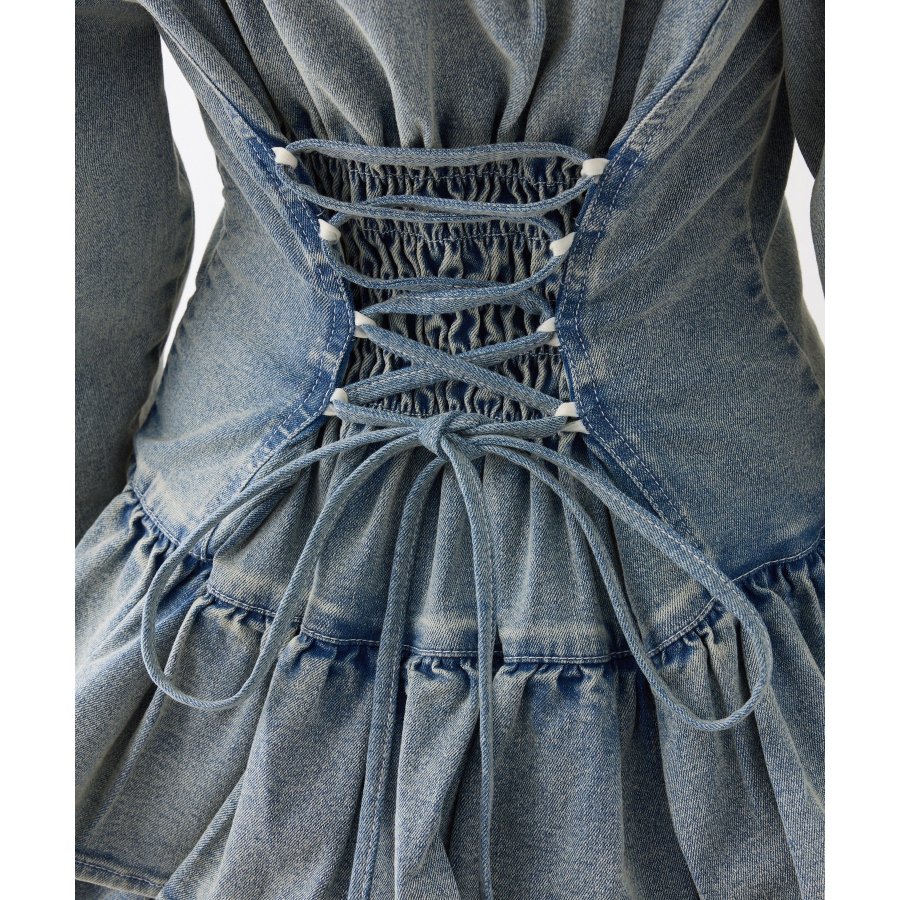 後ろはレースアップ仕様で、シルエットをきれいに見せつつさりげなくスタイルアップ♡