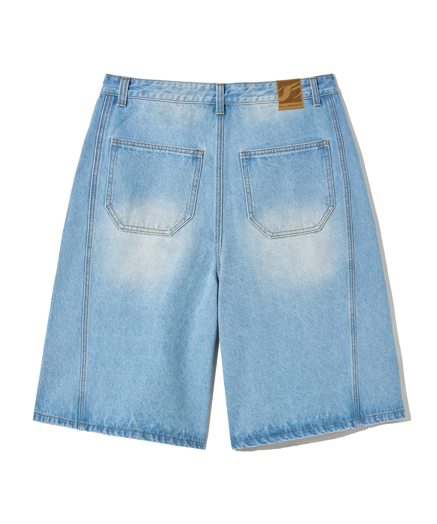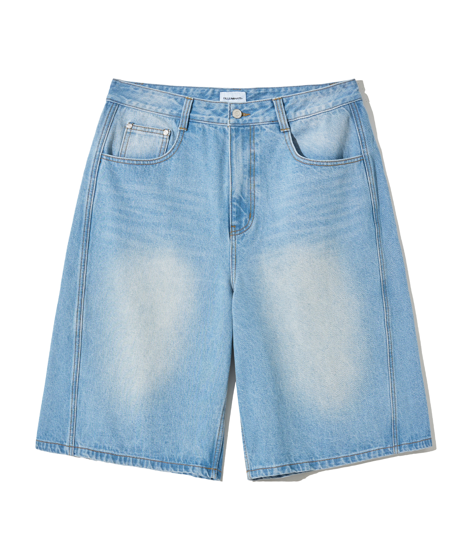 Side Curve Bermuda Denim Shorts-Light Blue