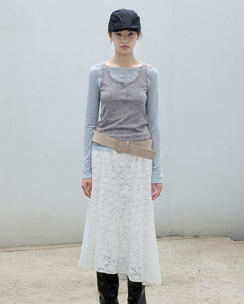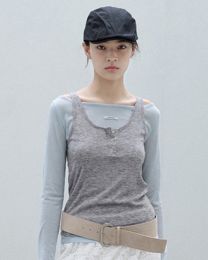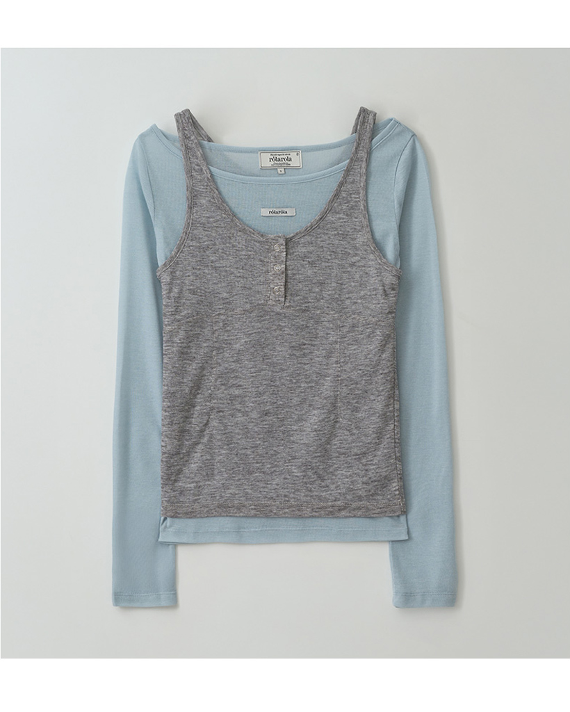 SLEEVELESS LAYERED T-SHIRT SET BL+GY