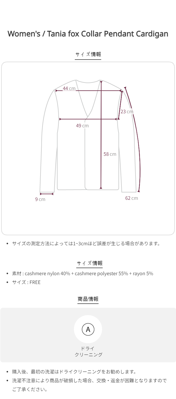 HEIGHT 168cm / BUST 81cm / WAIST 58cm / HIP 83cm