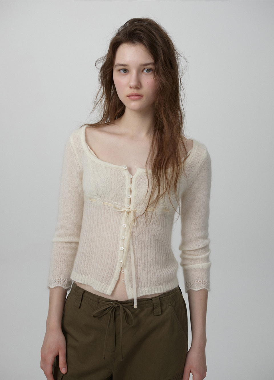 【先行販売】Velin Tie Mohair Knit Cardigan_Ivory