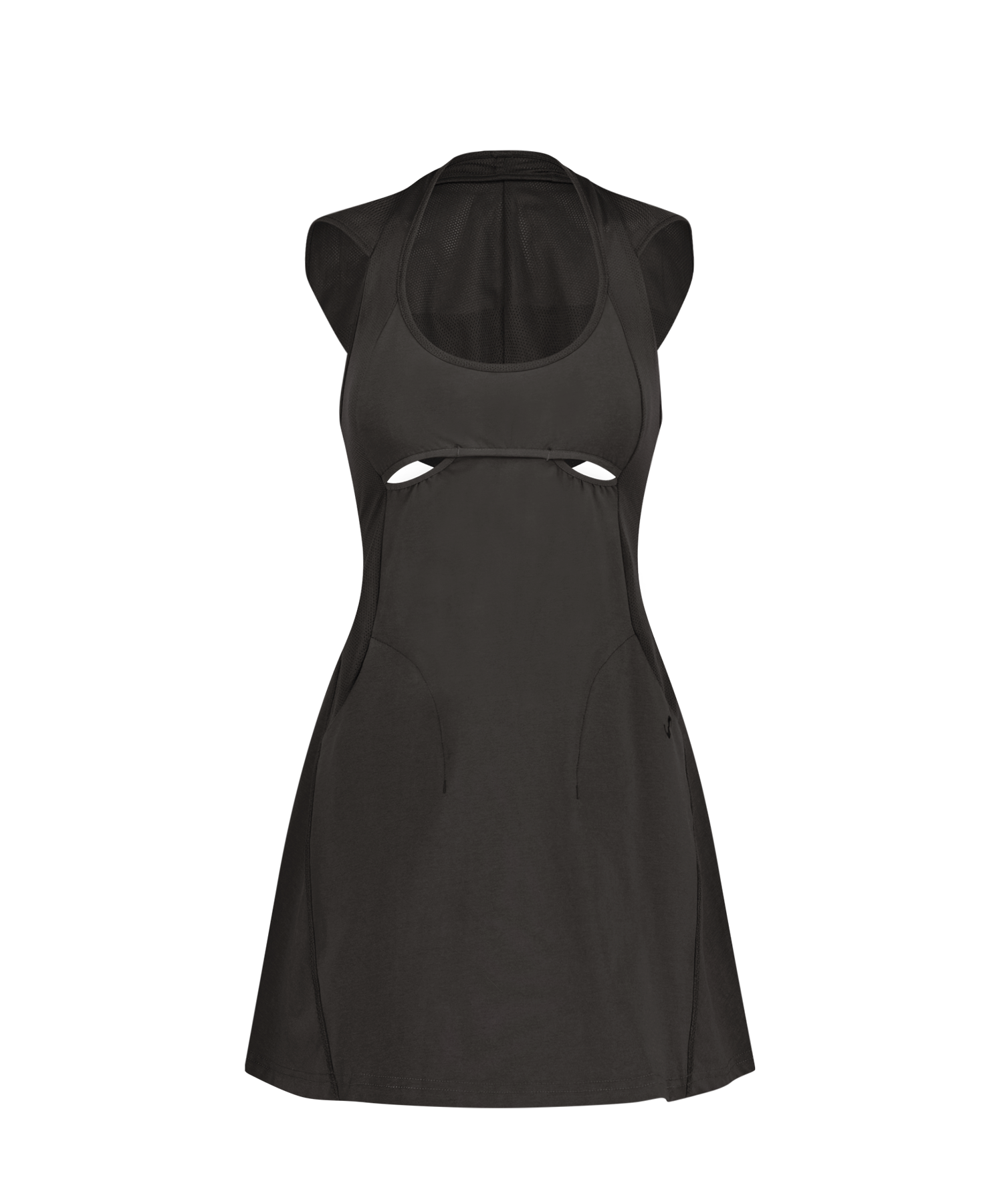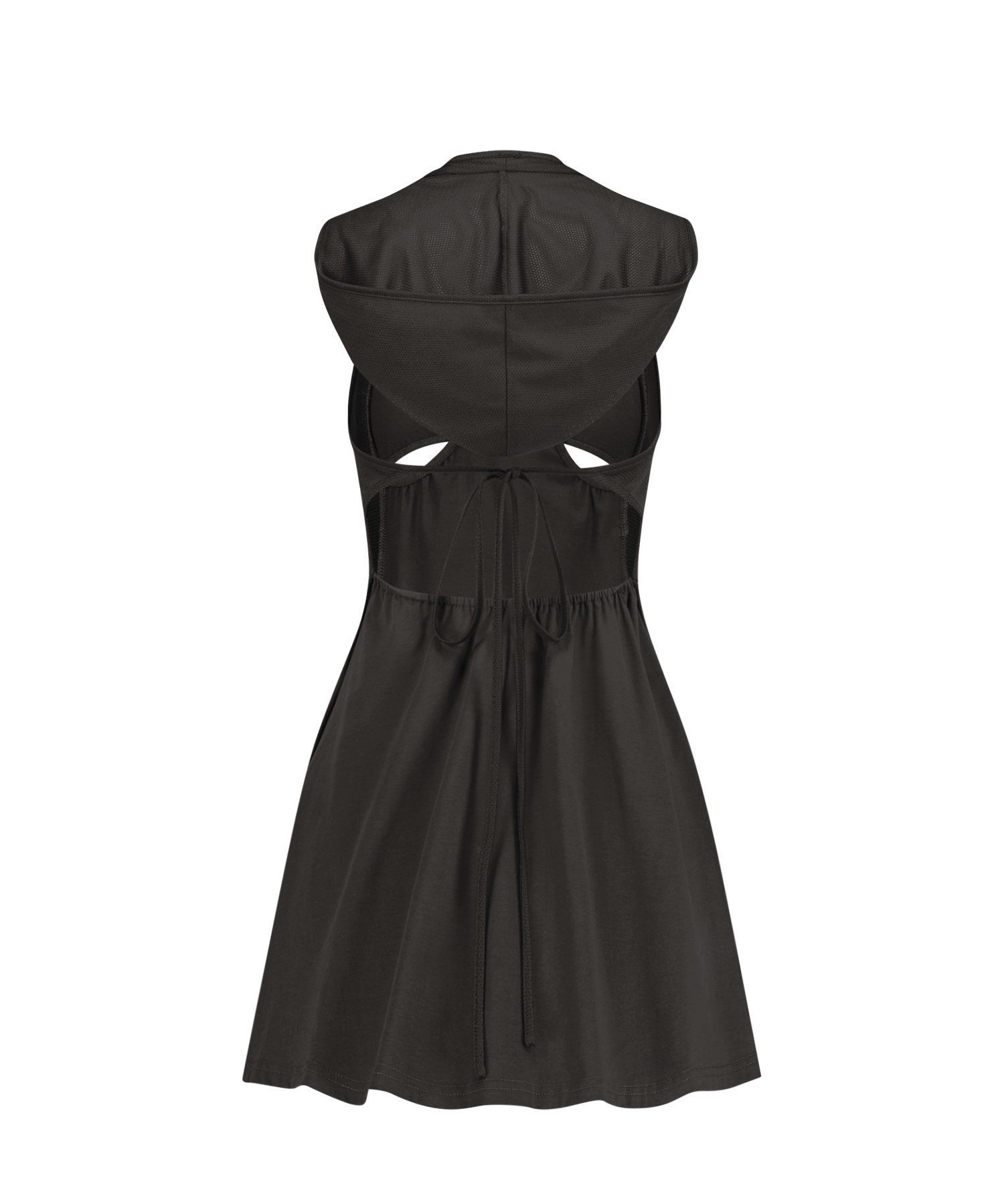 柔らかいテキスチャーのふーどが付いたエプロンドレス