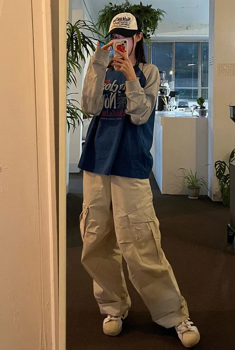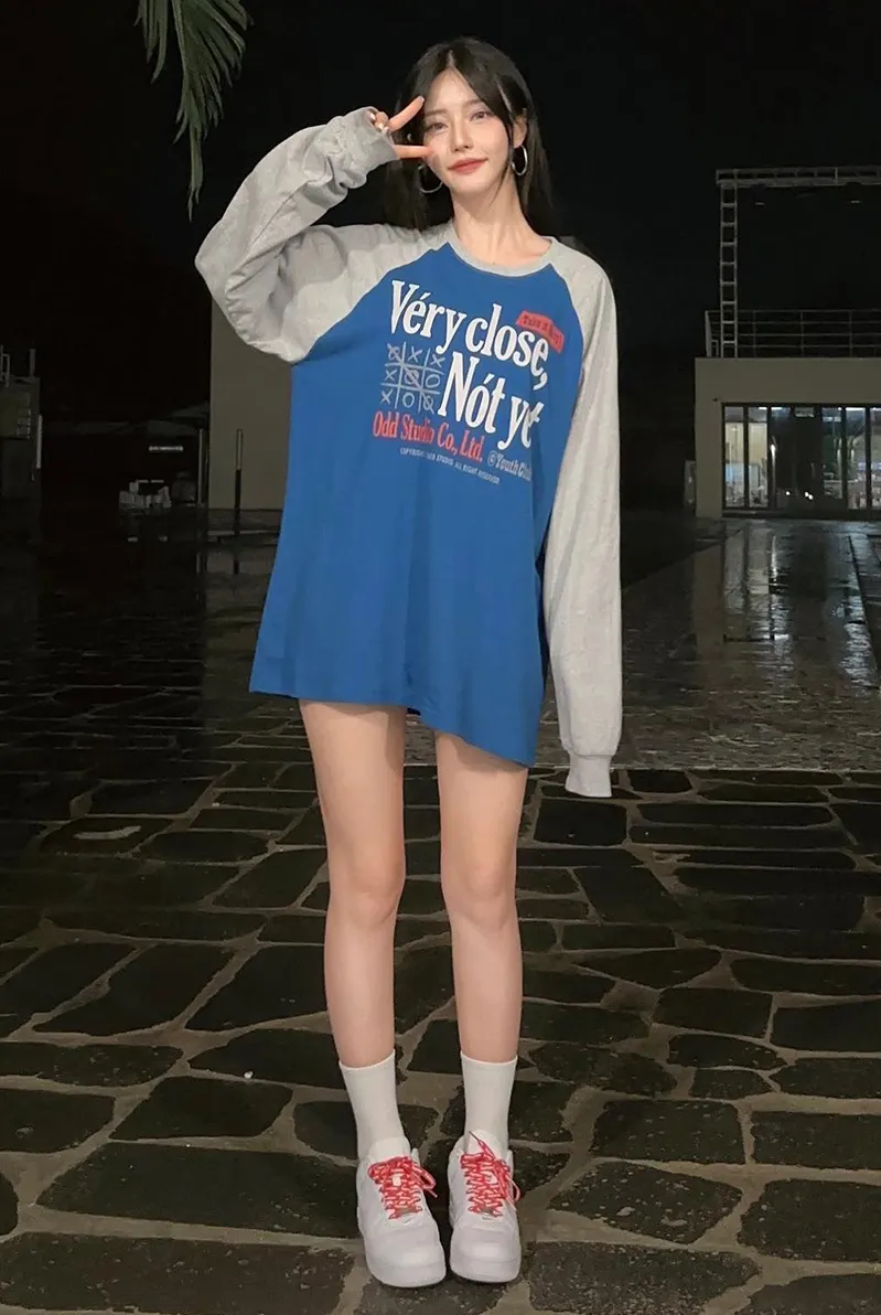 [Kアイドル着用]VeryCloseRaglanOverFitLongSleeve-blue/gray