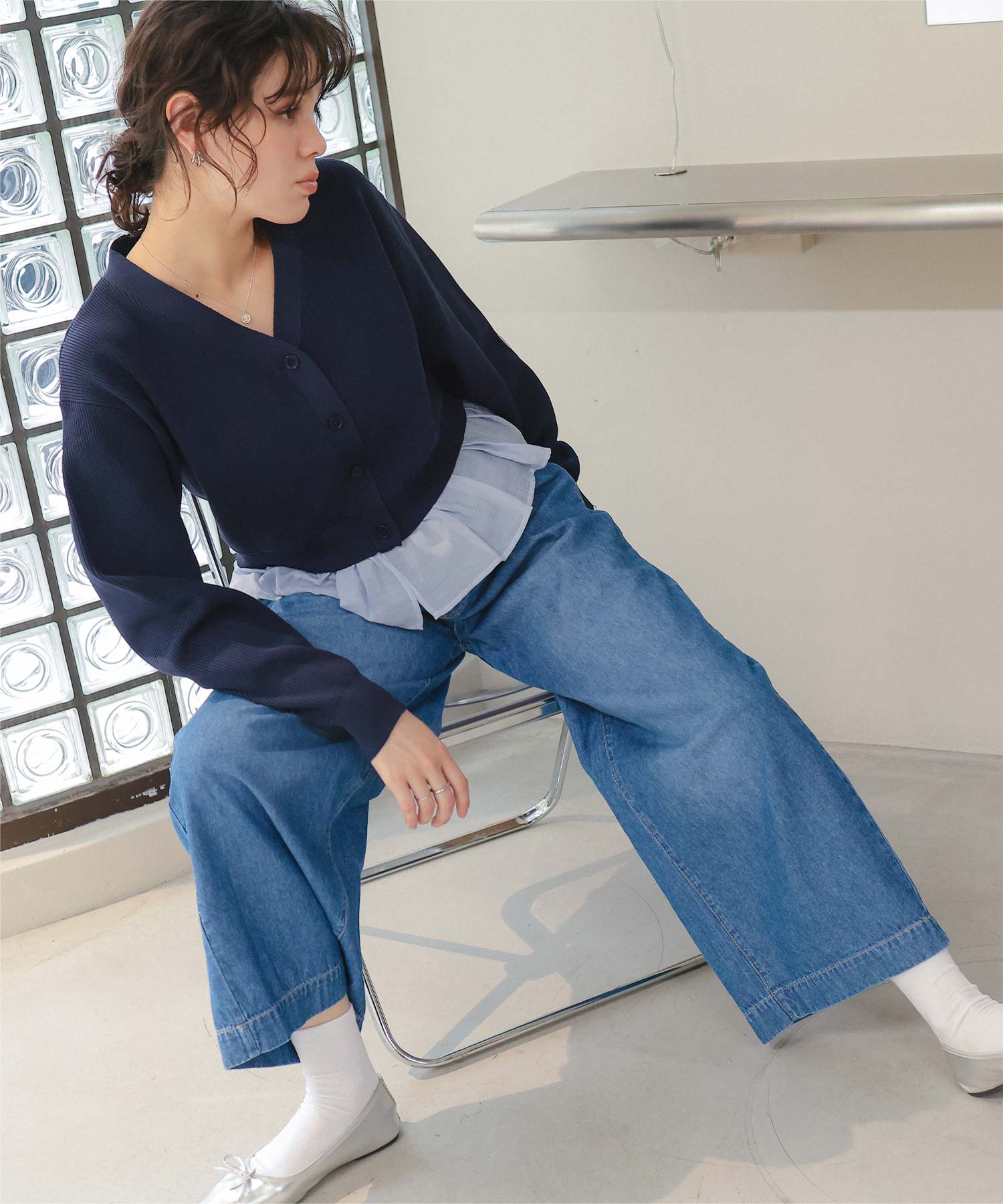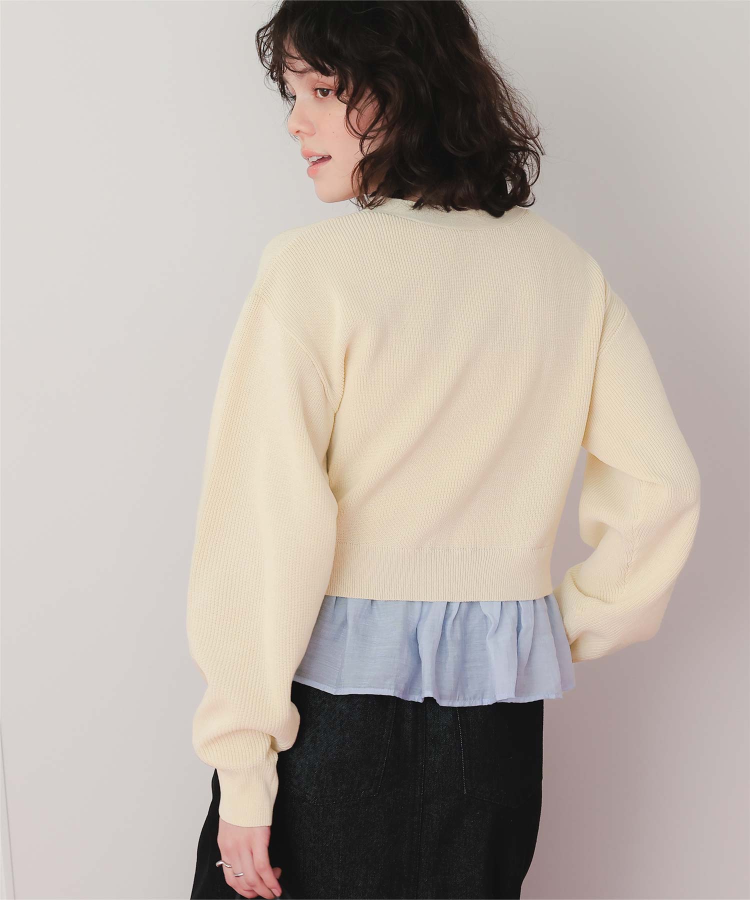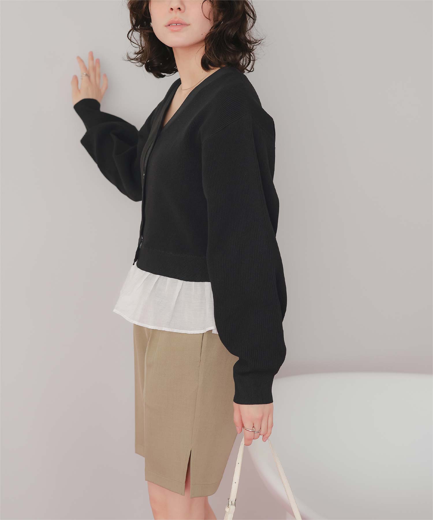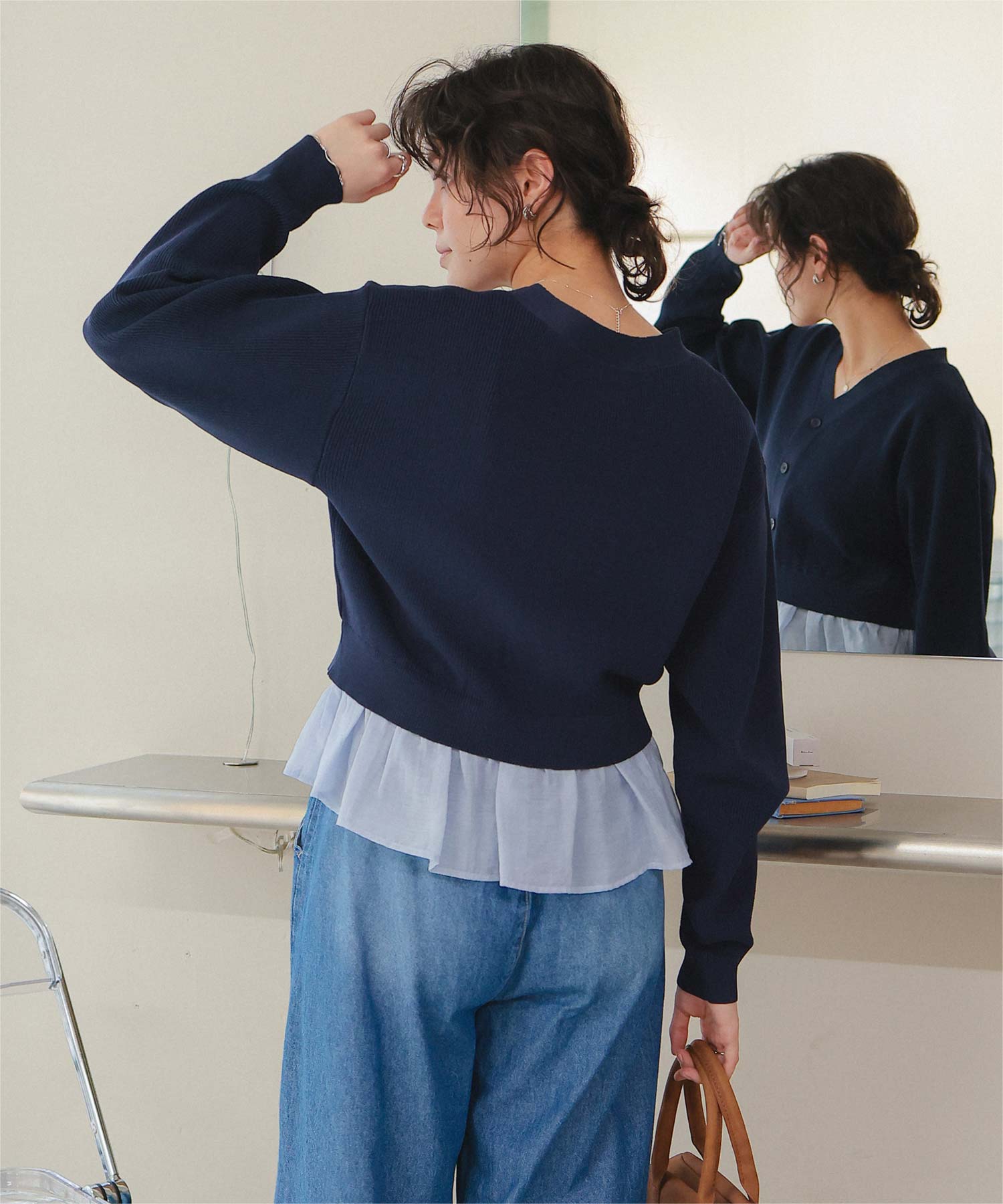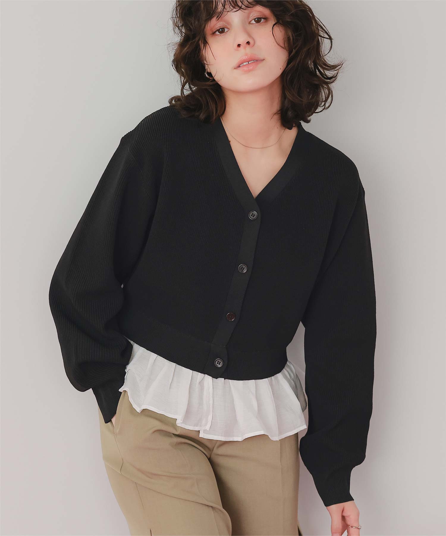 ・裾のふんわりドッキングフリルが、着こなしに上品な甘さを添える映えデザインカーディガン