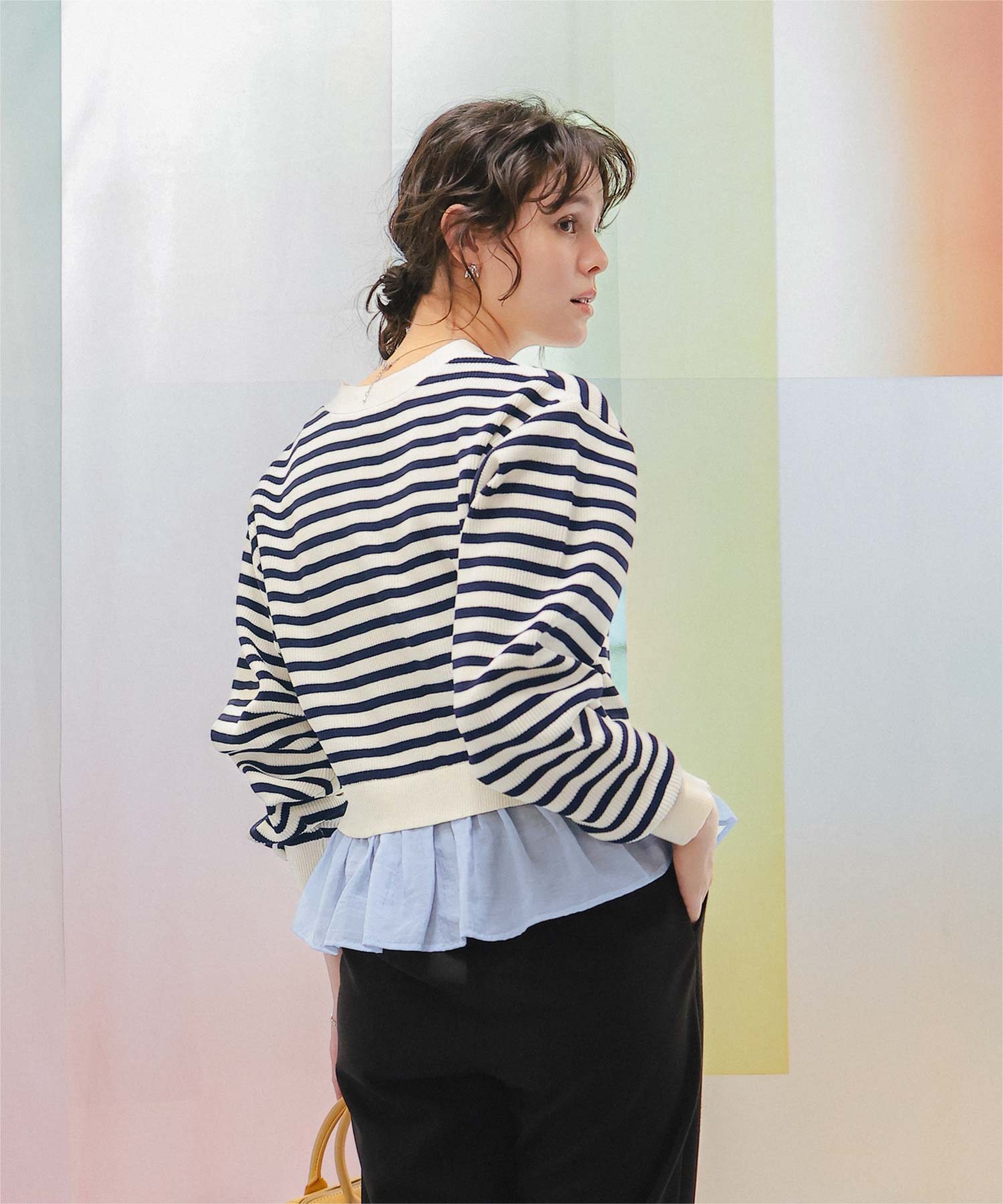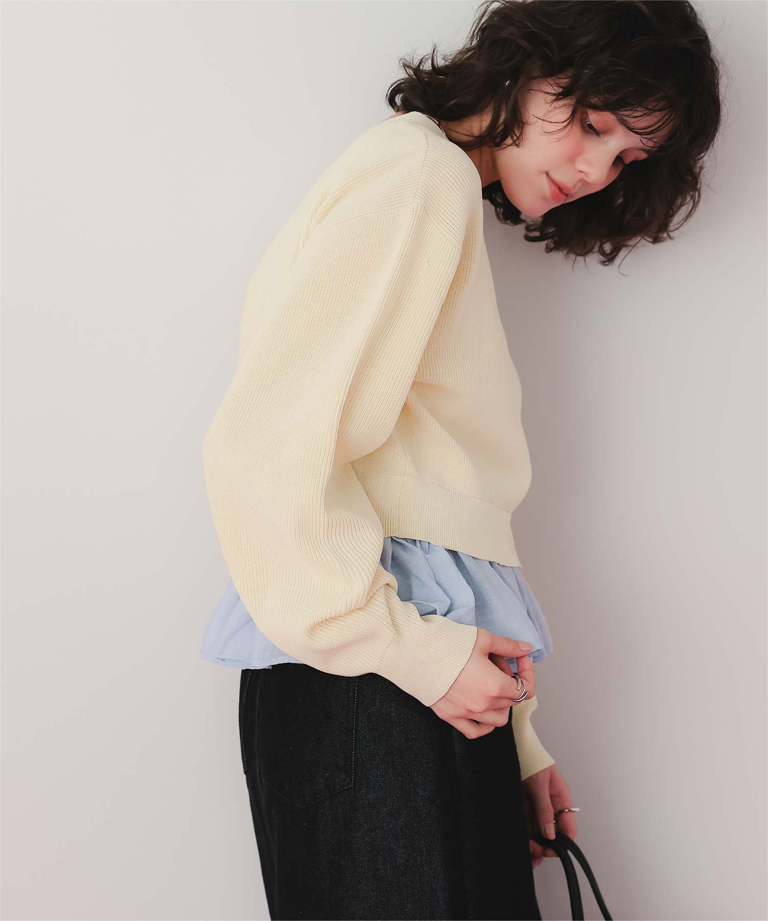 ・ニット×布帛の異素材ミックスが立体感を生み、1枚でレイヤード風の洒落感を演出