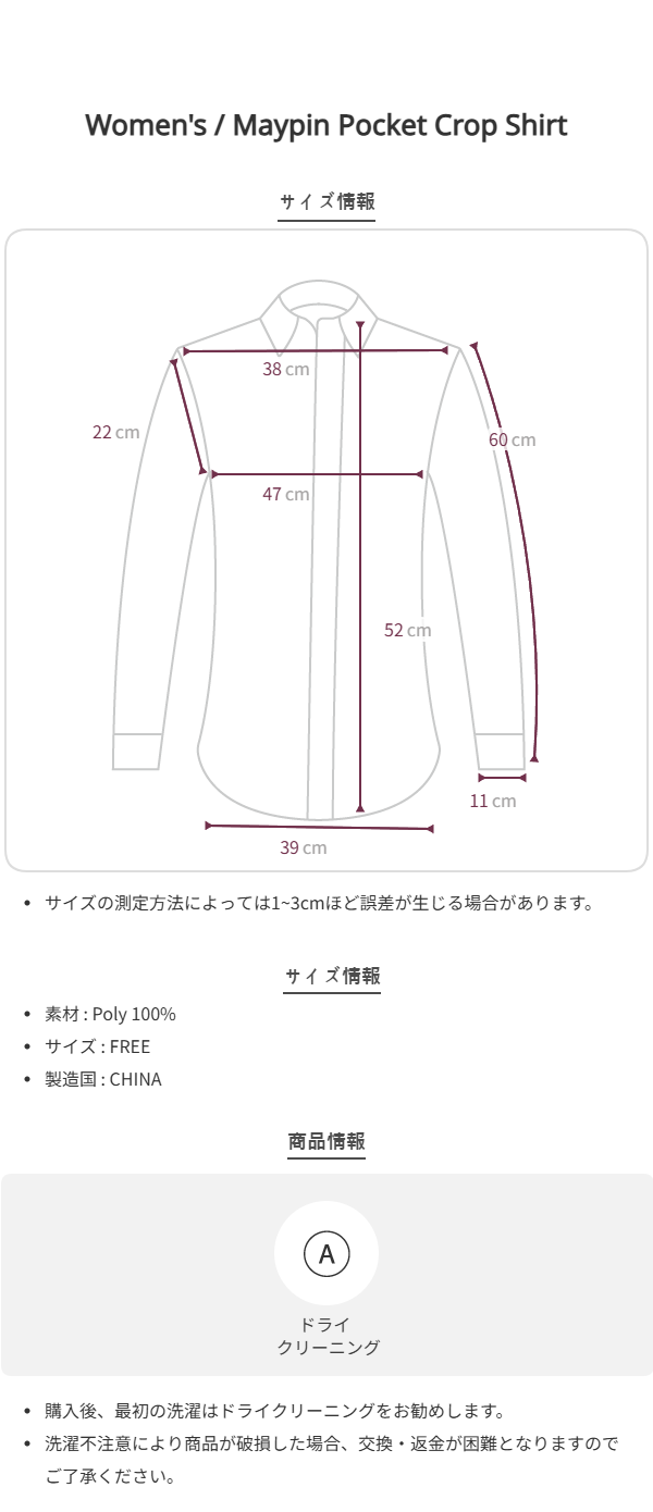 HEIGHT 174cm / BUST 83cm / WAIST 59cm / HIP 89cm