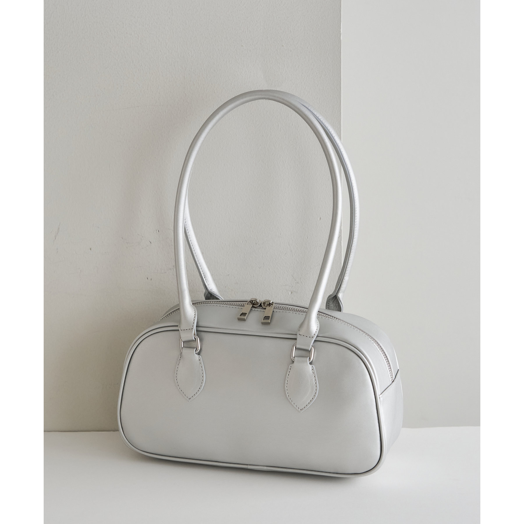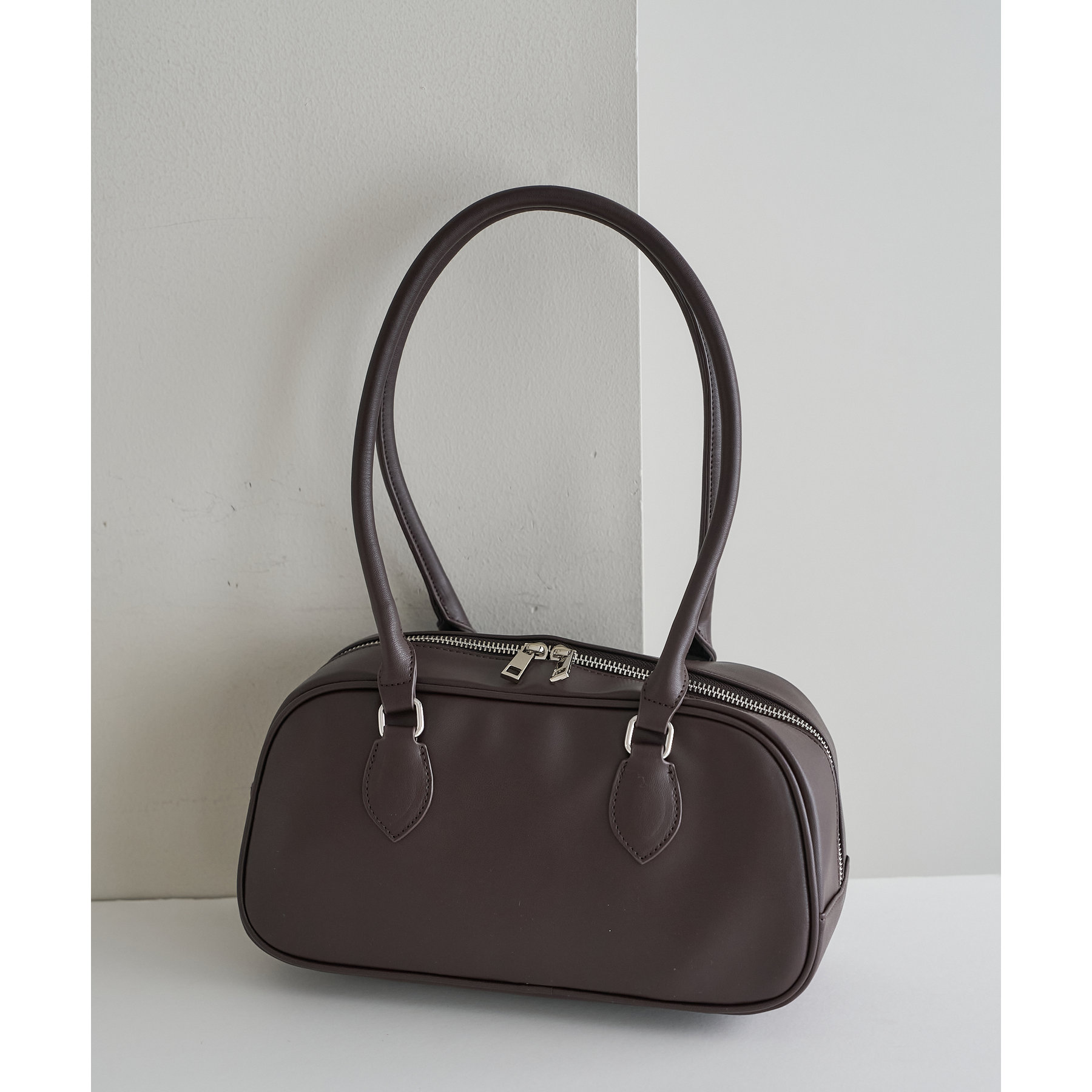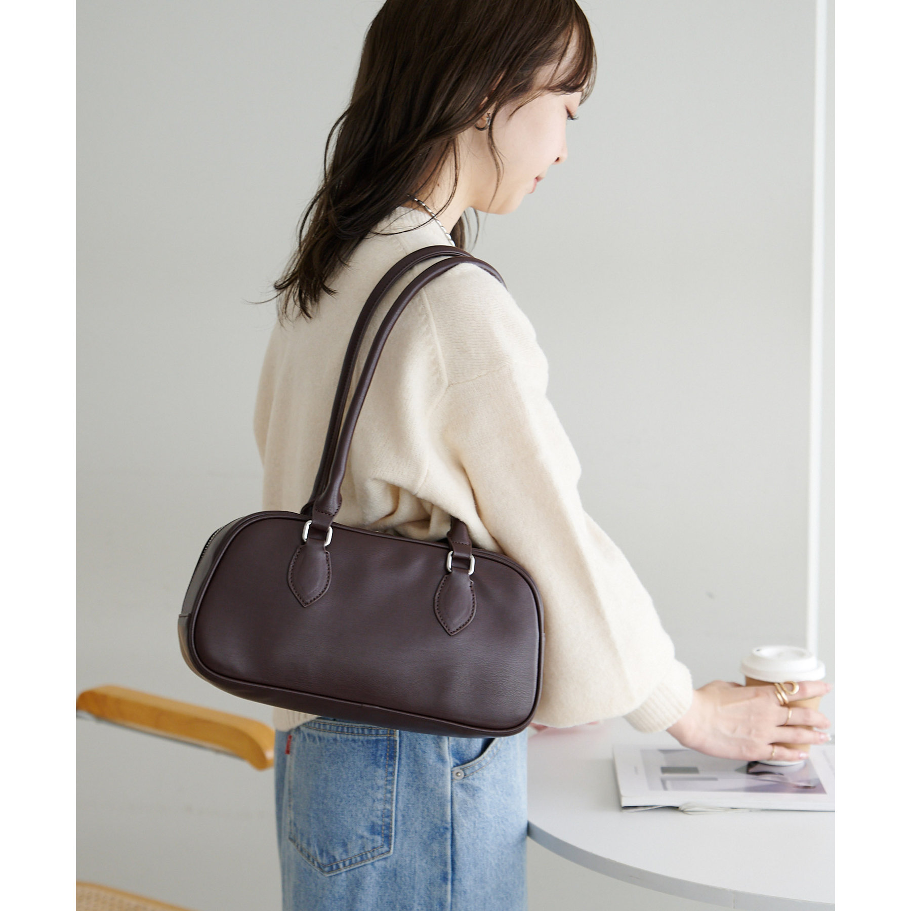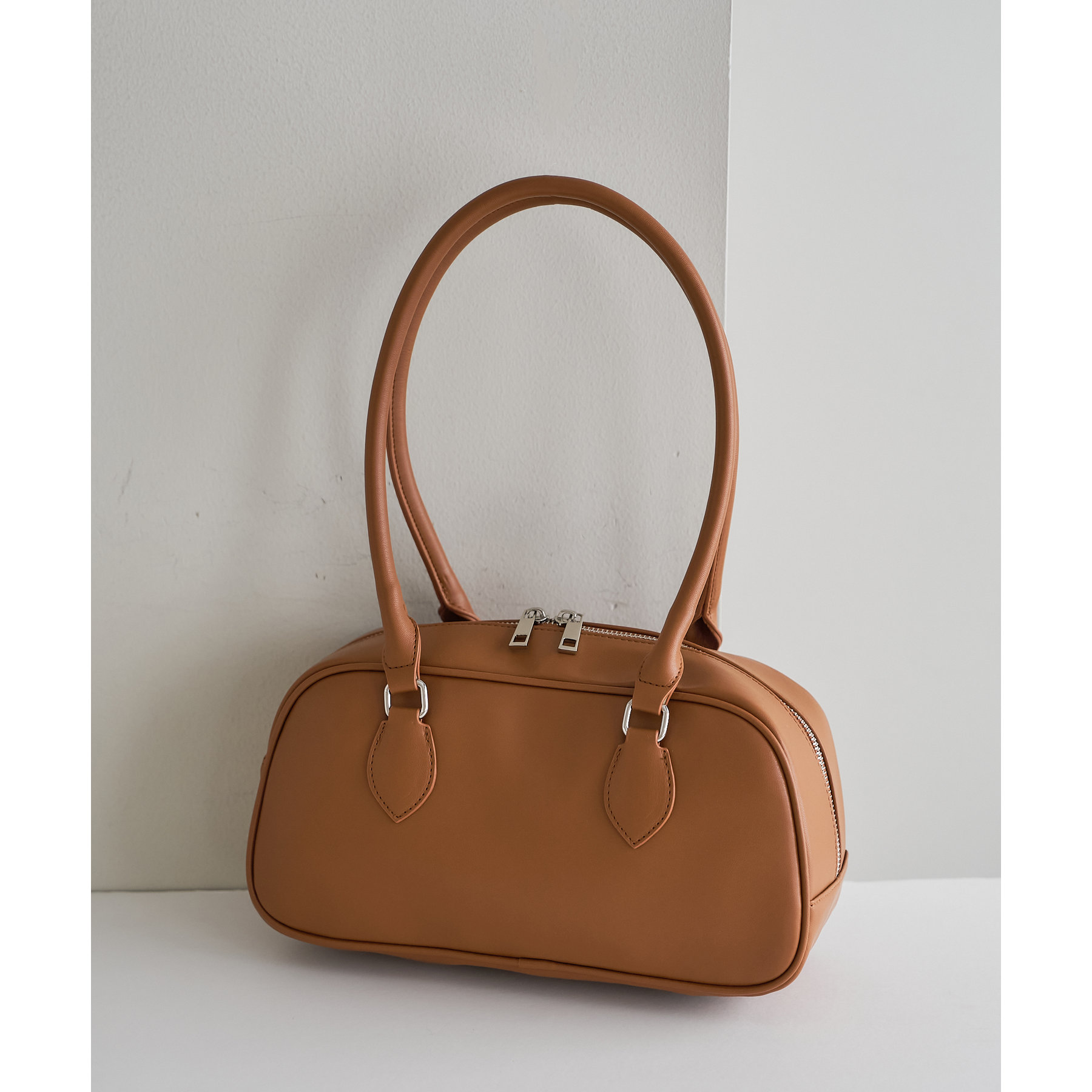 シンプルながらトレンドライクなロングハンドルボストンバッグ。
