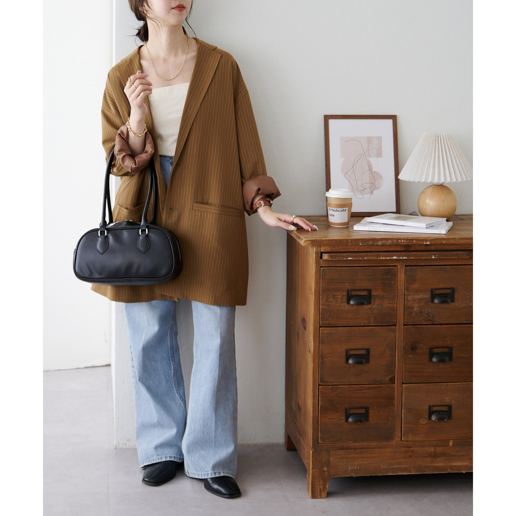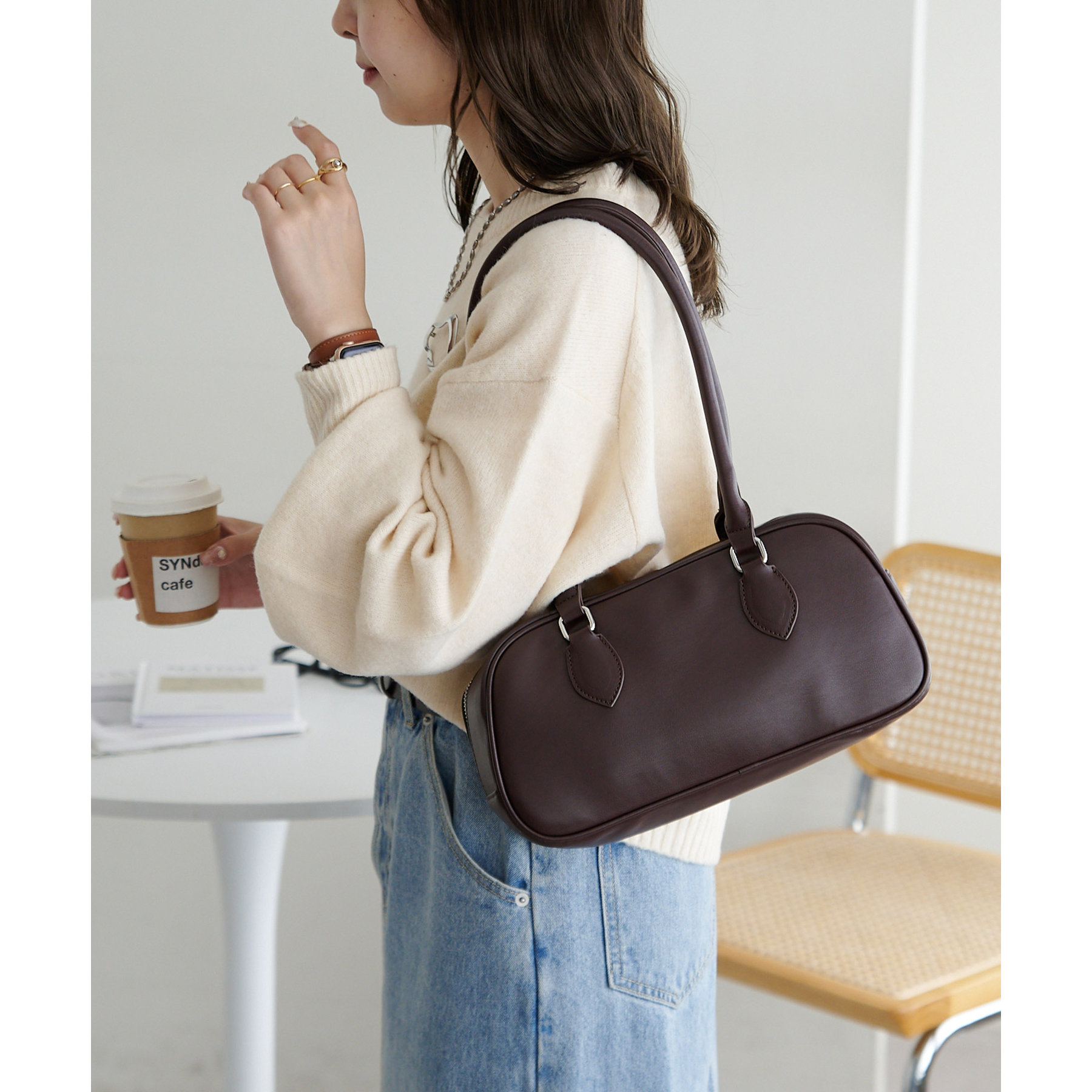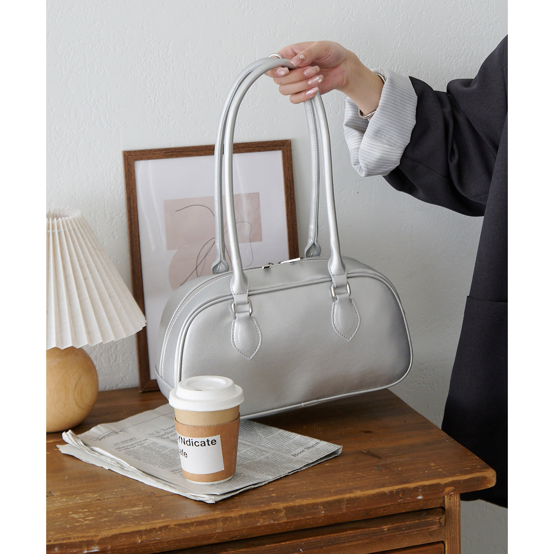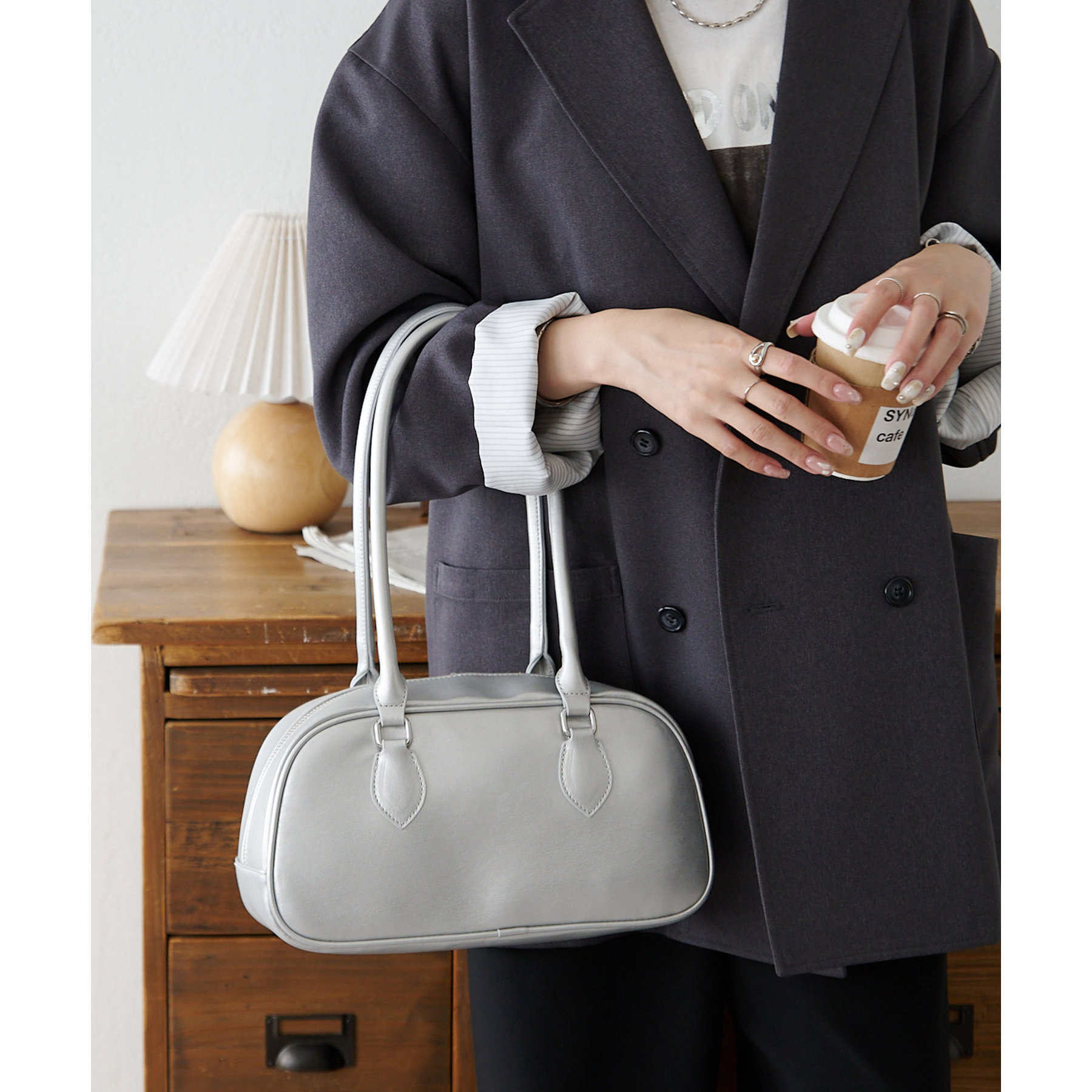 シンプルながらトレンドライクなロングハンドルボストンバッグ。