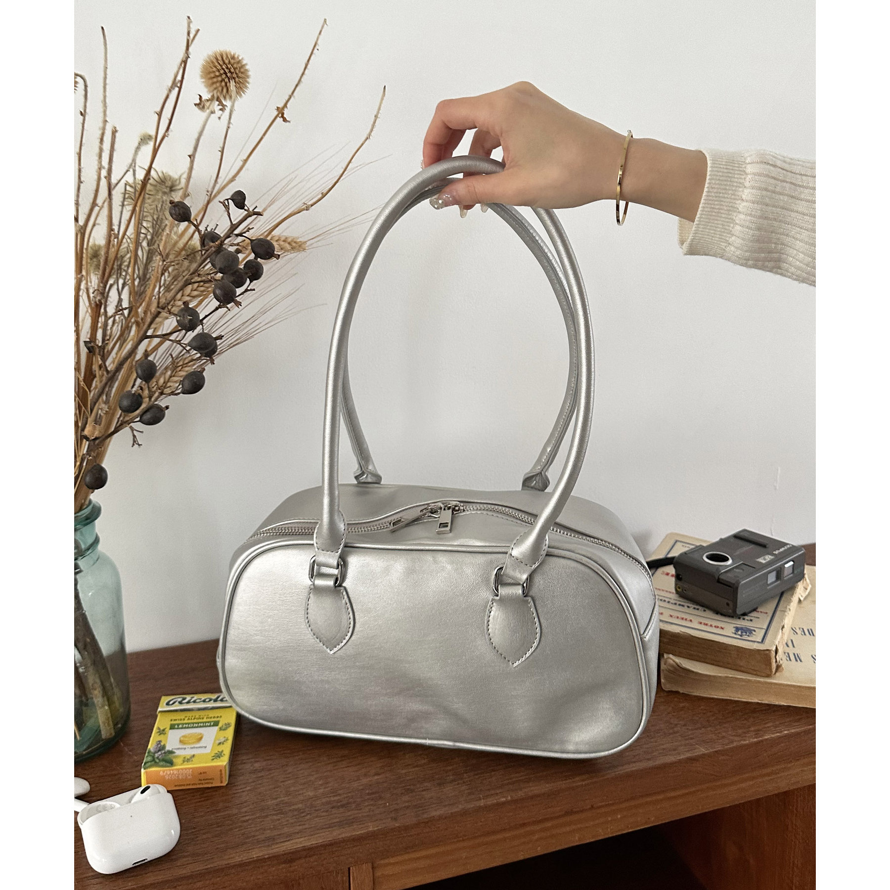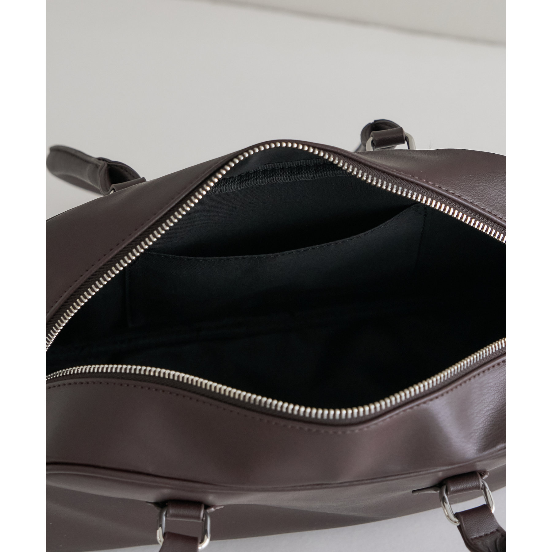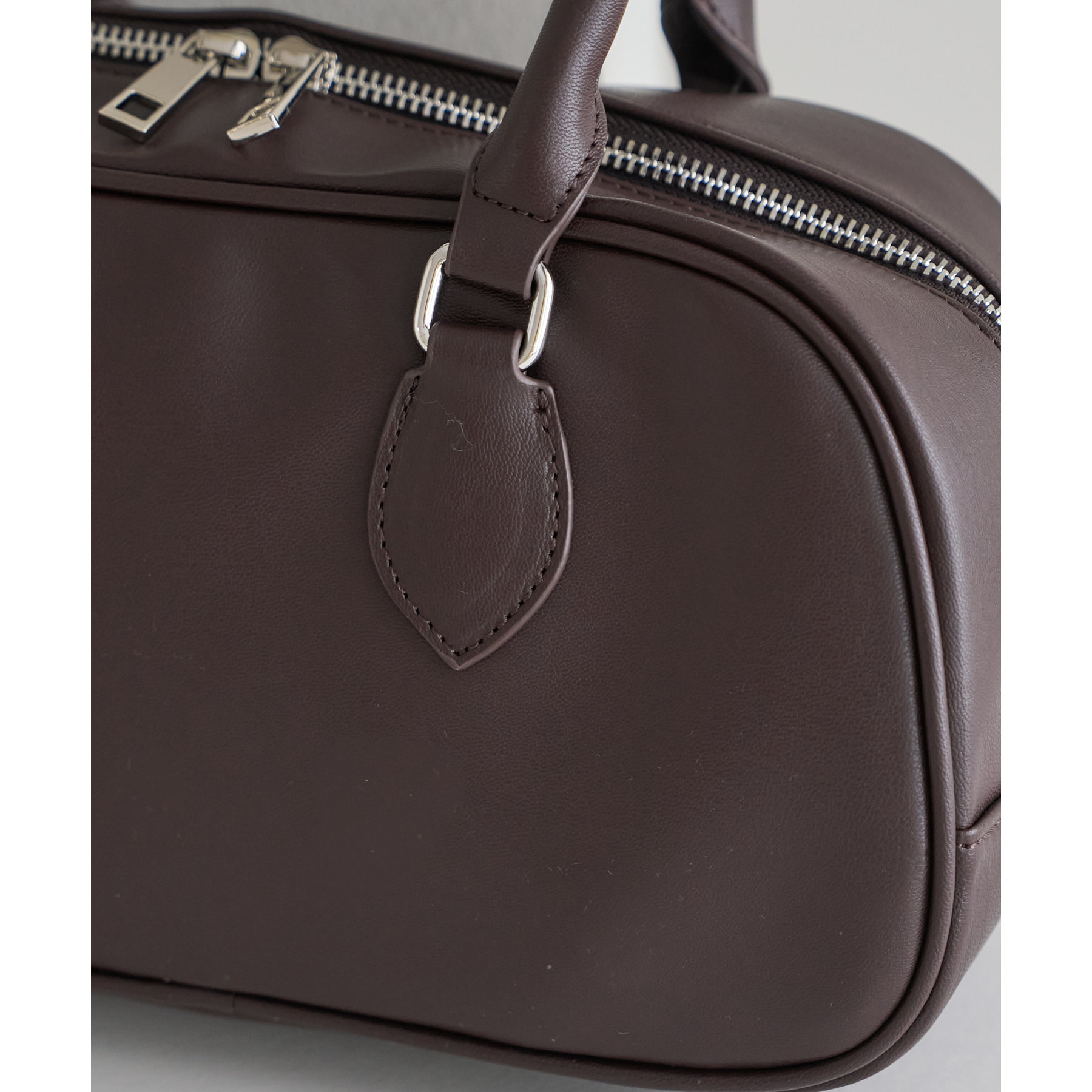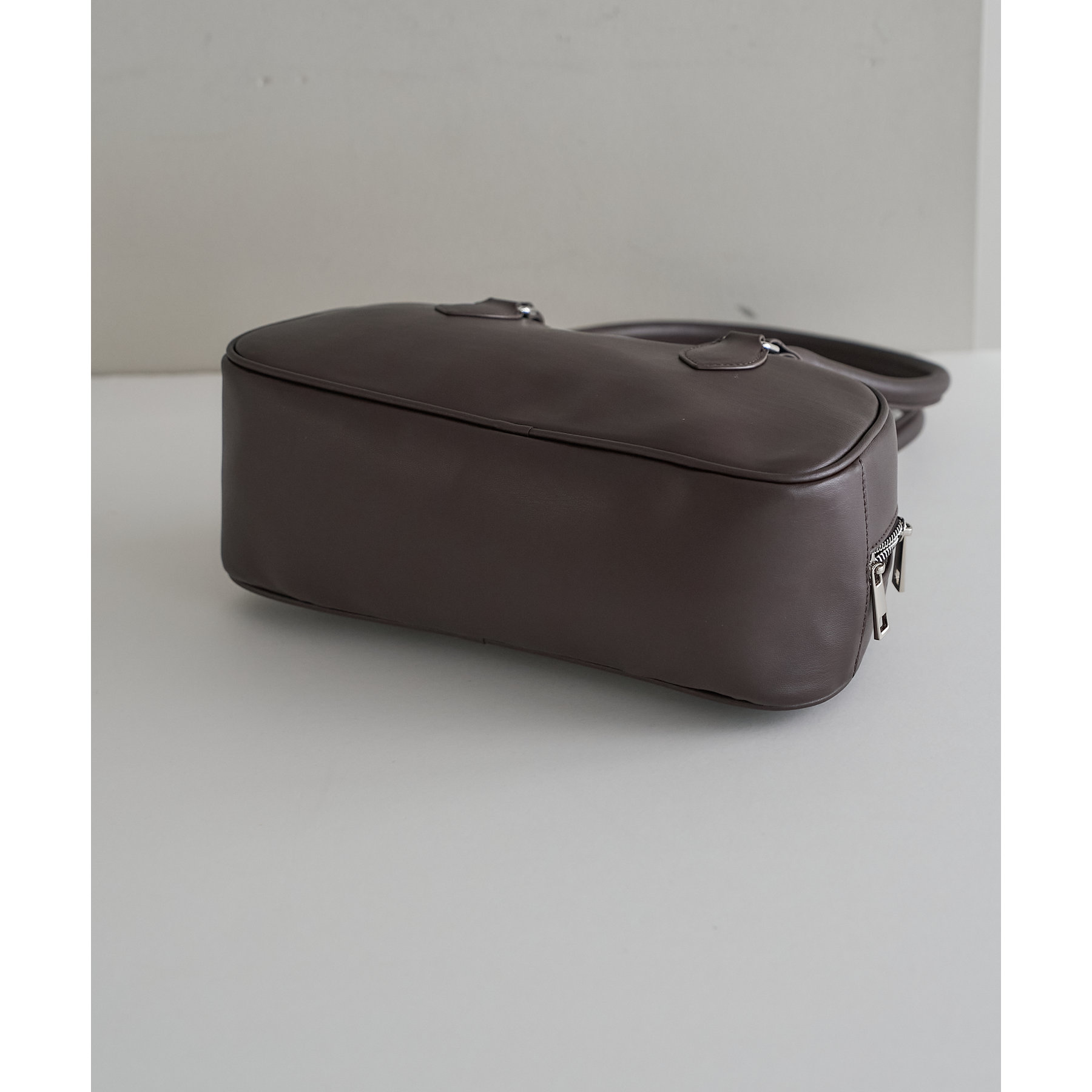とにかくシンプルなデザインに仕上げたことで、系統や年齢関係なく使いやすいボストンバッグです。ポイントのロングハンドルは、厚手のスウェットやアウター着用時でも肩掛けしやすいように長さを調整しています。また、開口部が大きく開く為、物の出し入れもしやすいです。さらに、マチが10㎝と、自立してくれるのも嬉しいポイントです。横長なデザインなので長財布・折りたたみ傘・500mlペットボトルのども楽々収納できます◎カラー展開は、定番のブラック・ブラウンに加え、コーデのポイントになるシルバー・キャメルの4色展開です。