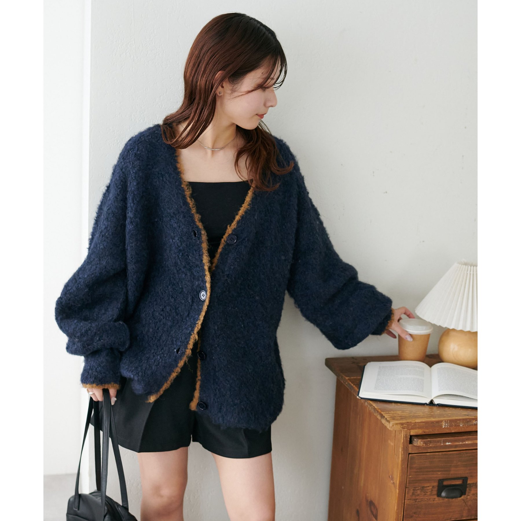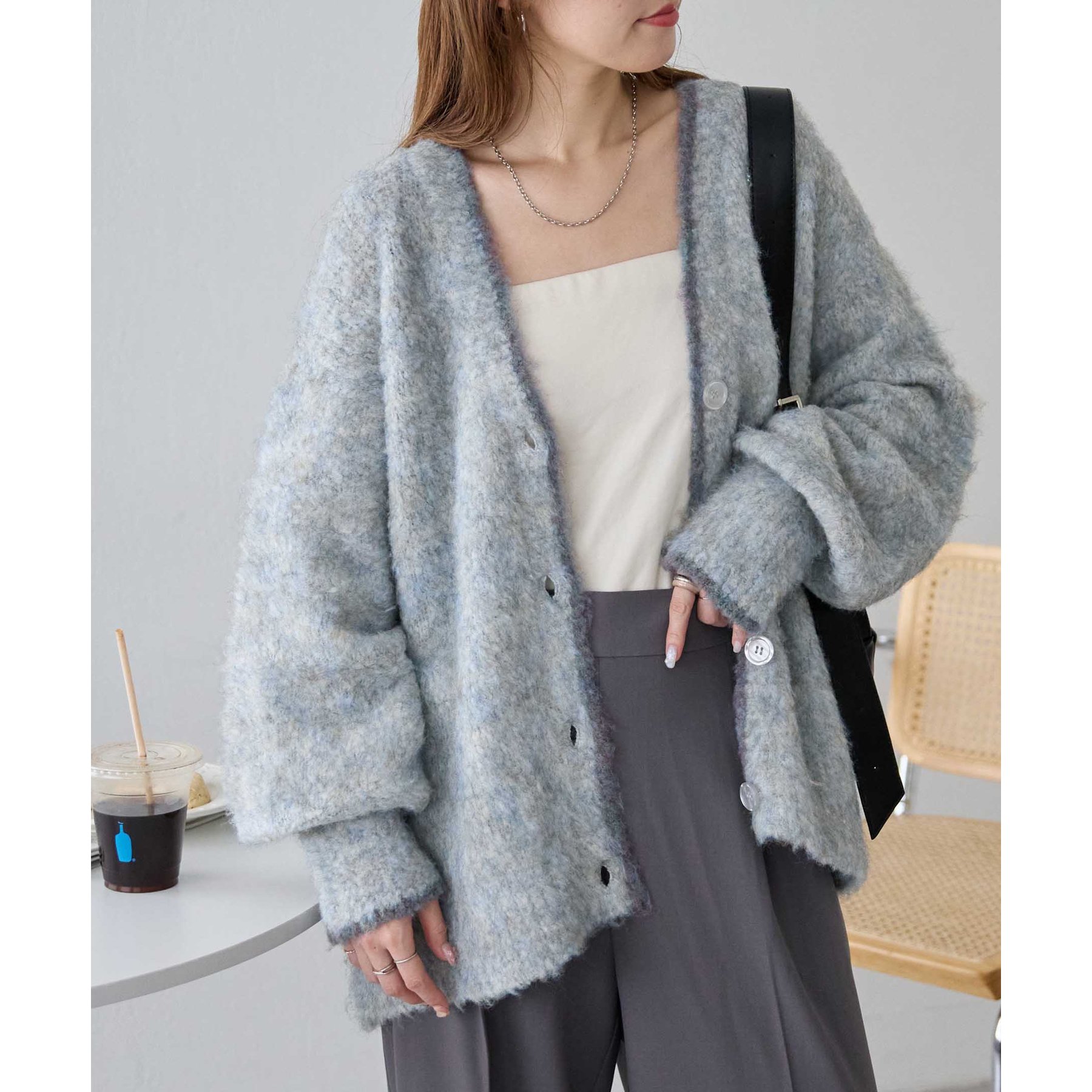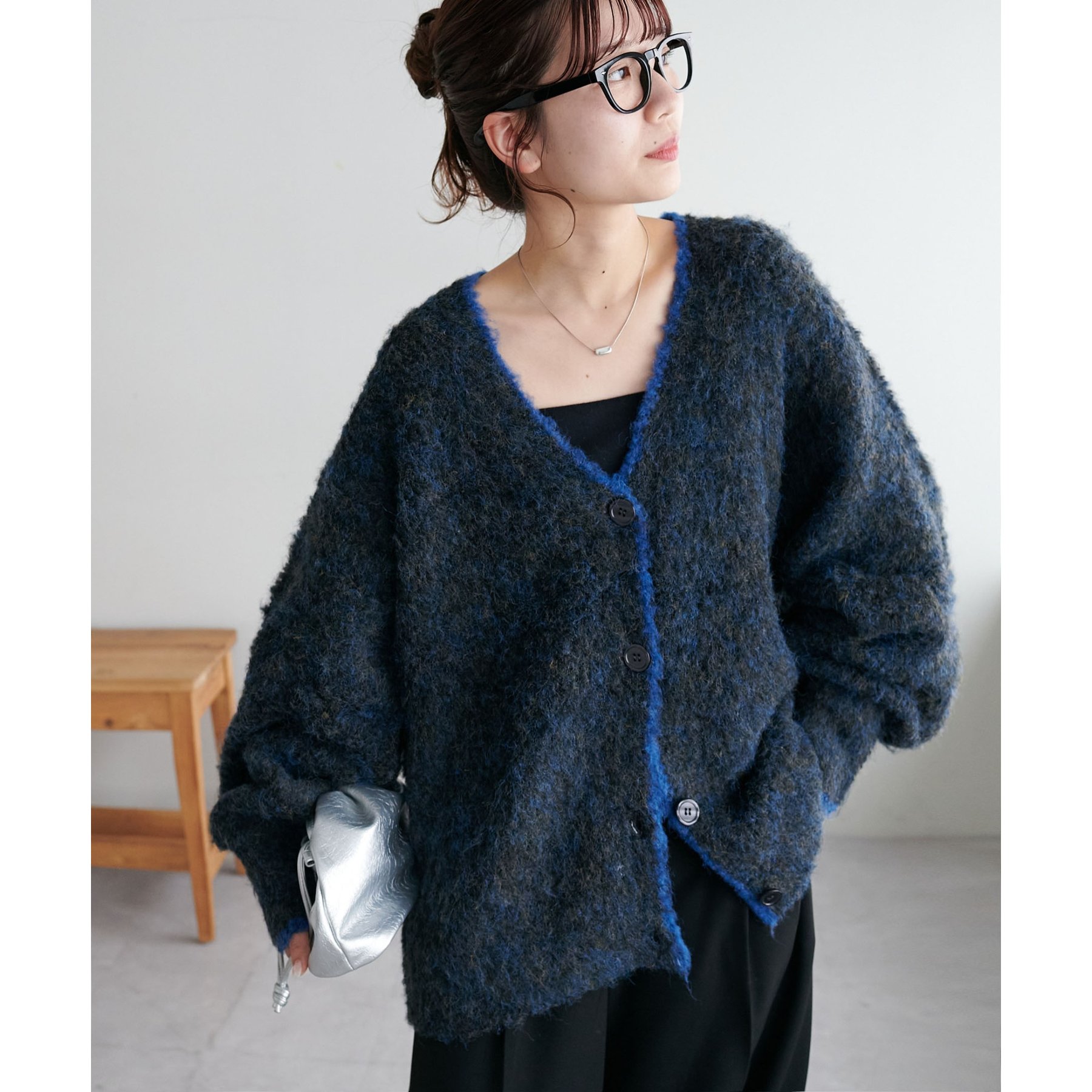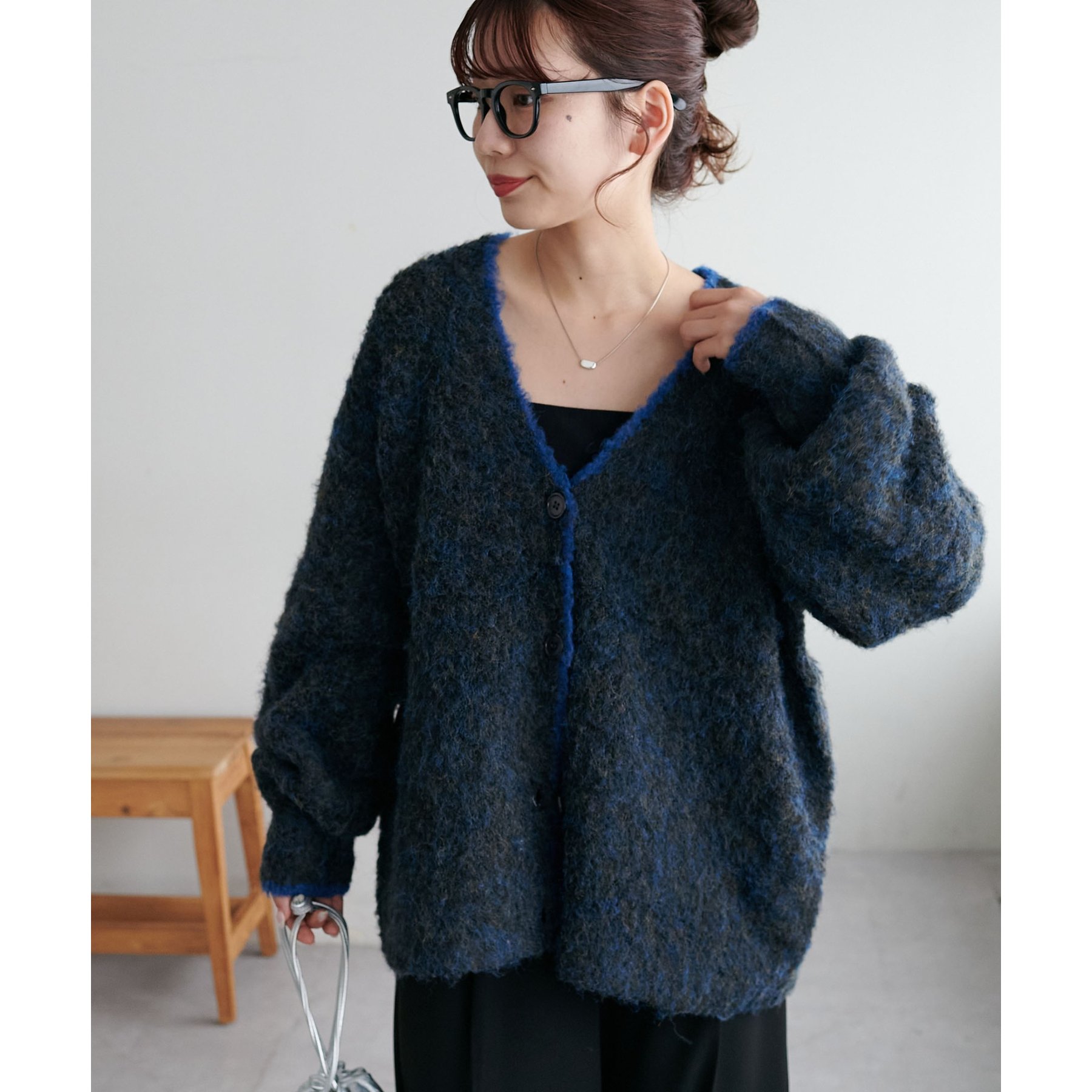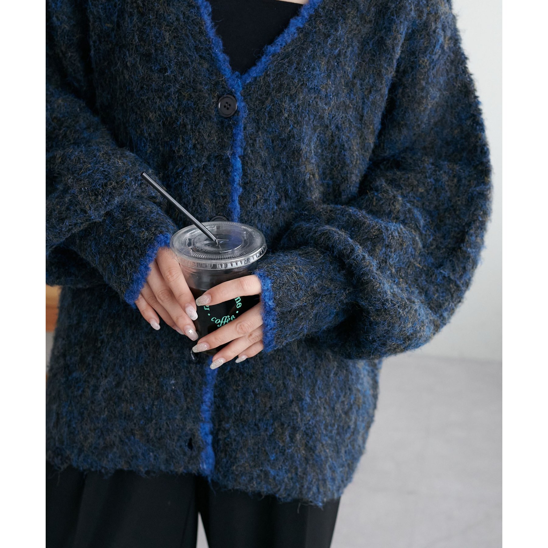 【新色追加!/WEB限定】MIXブークレシャギー配色Vネックカーディガン