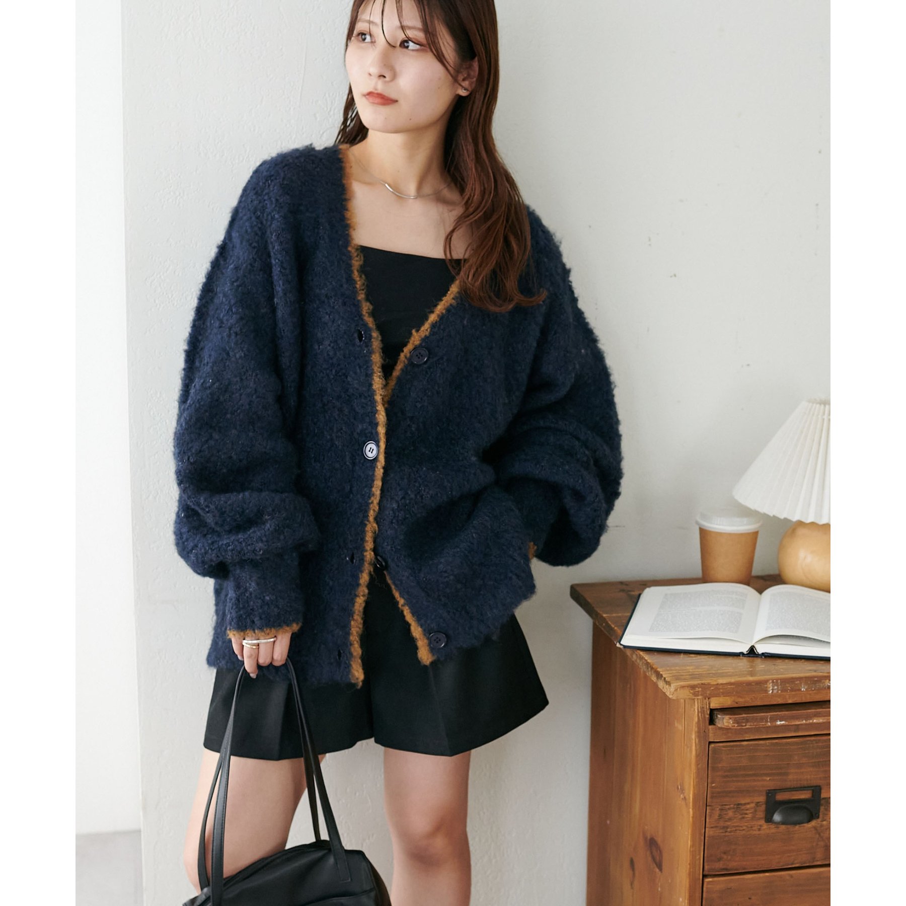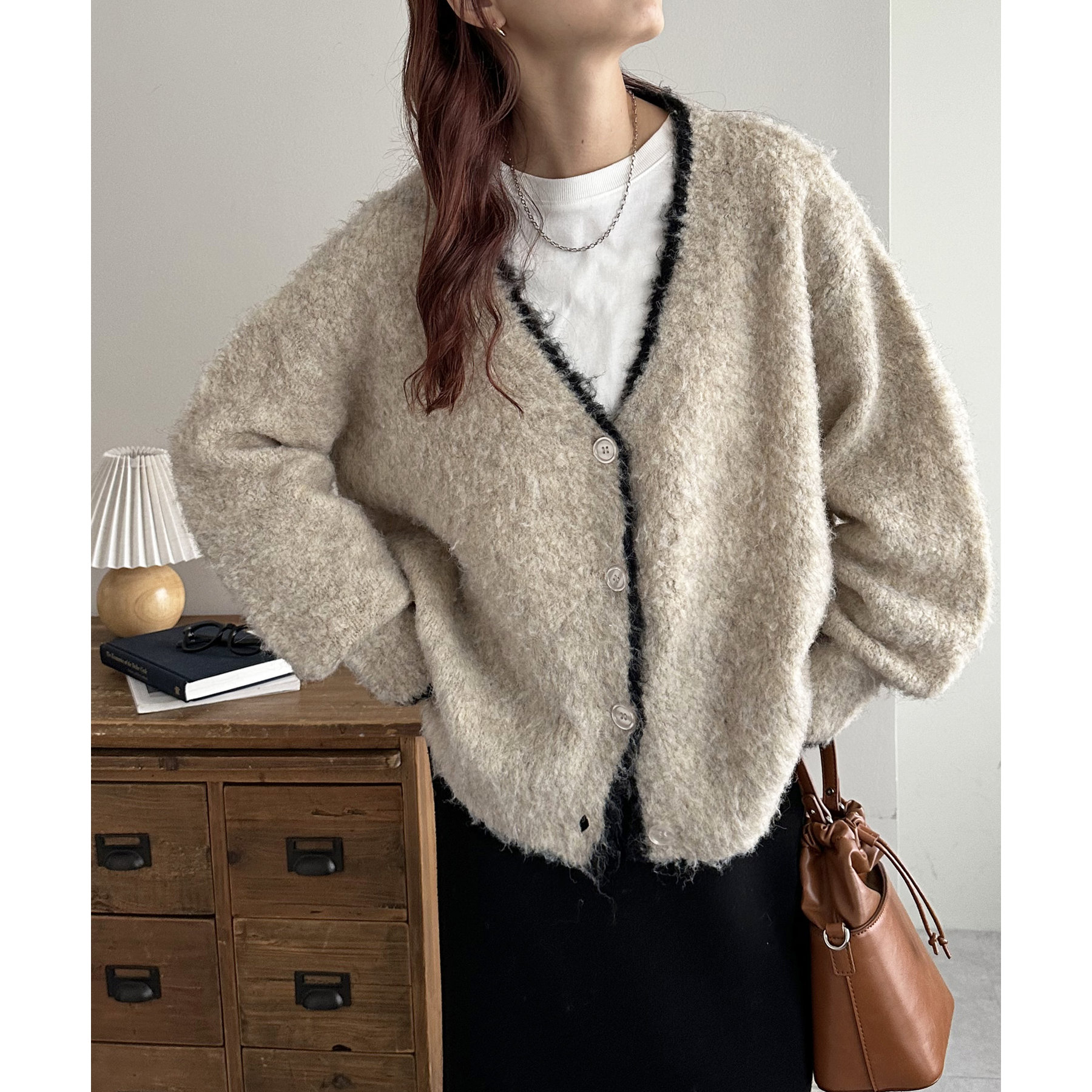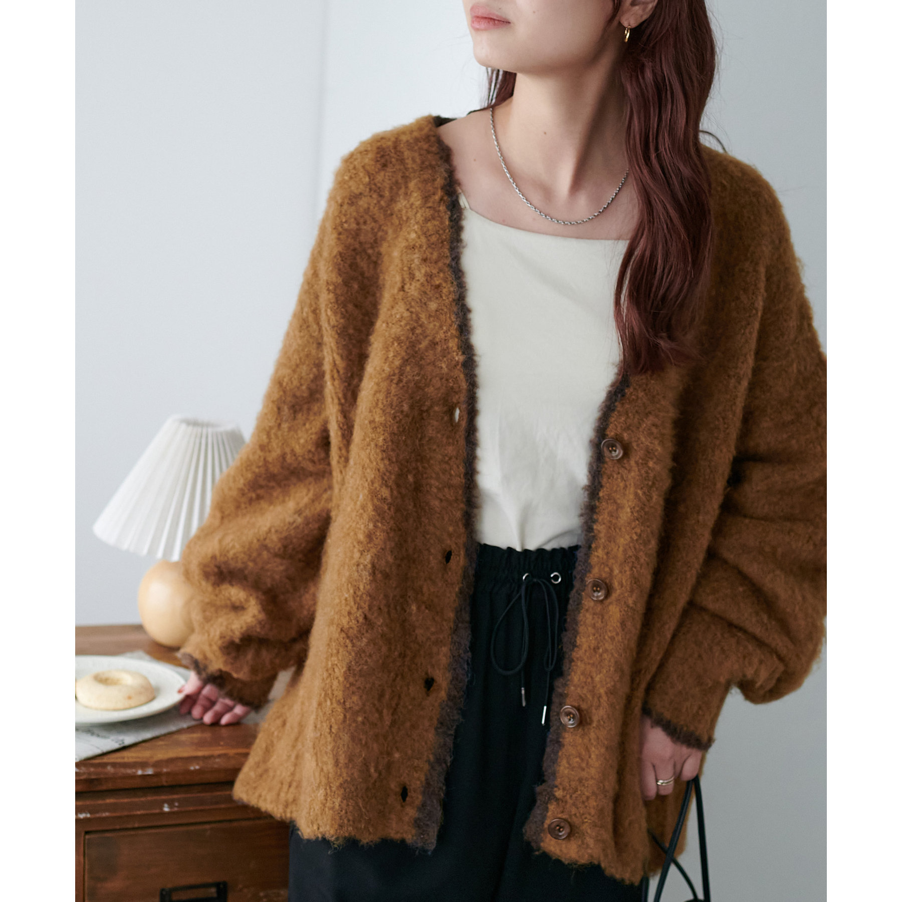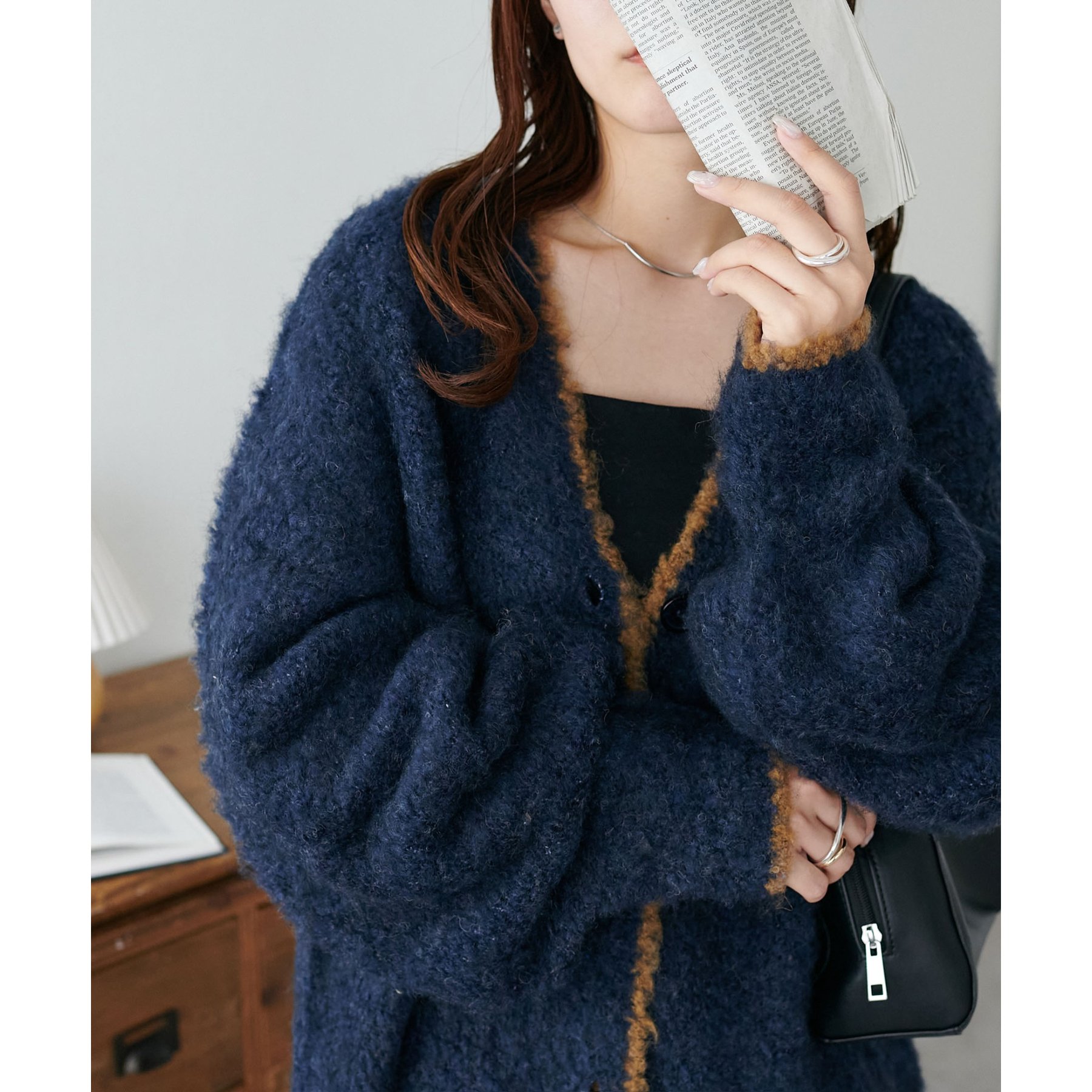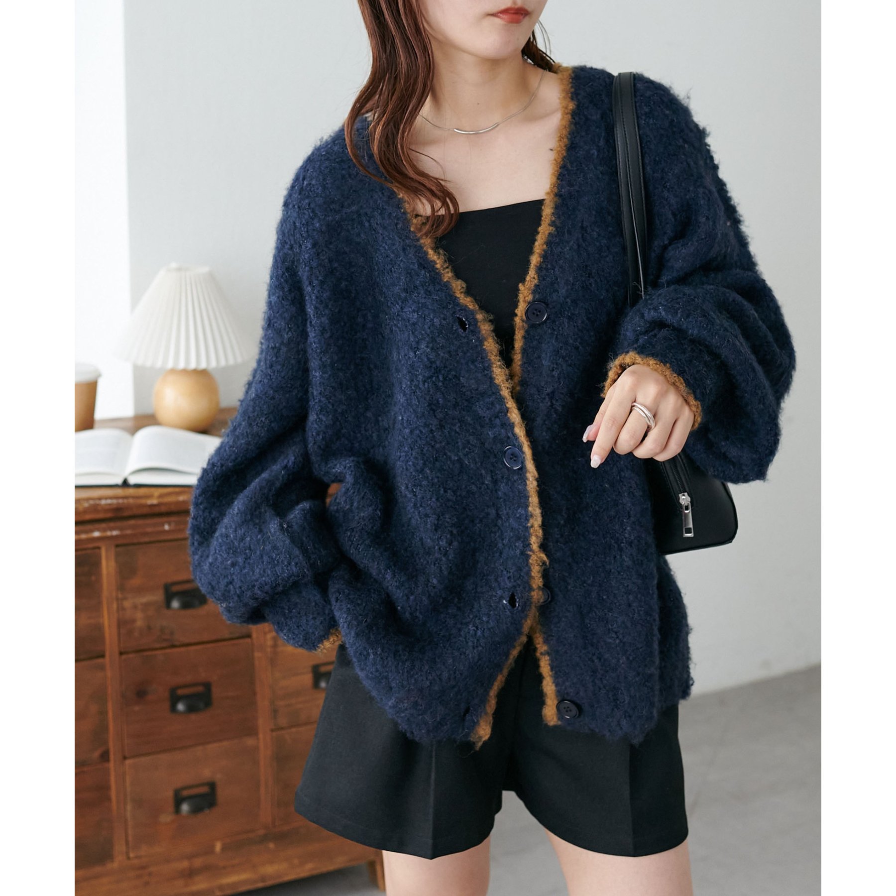 【新色追加!/WEB限定】MIXブークレシャギー配色Vネックカーディガン