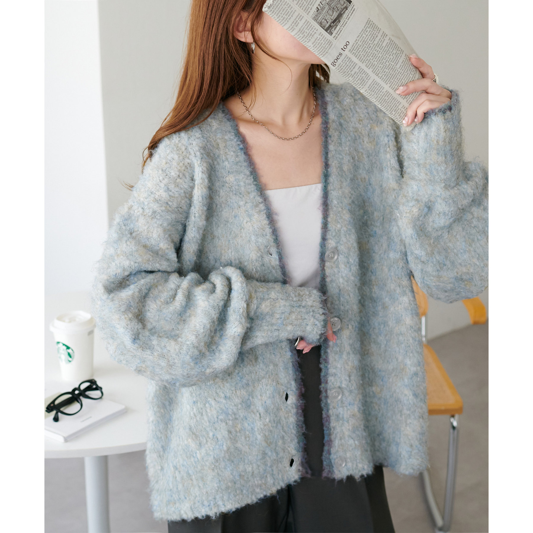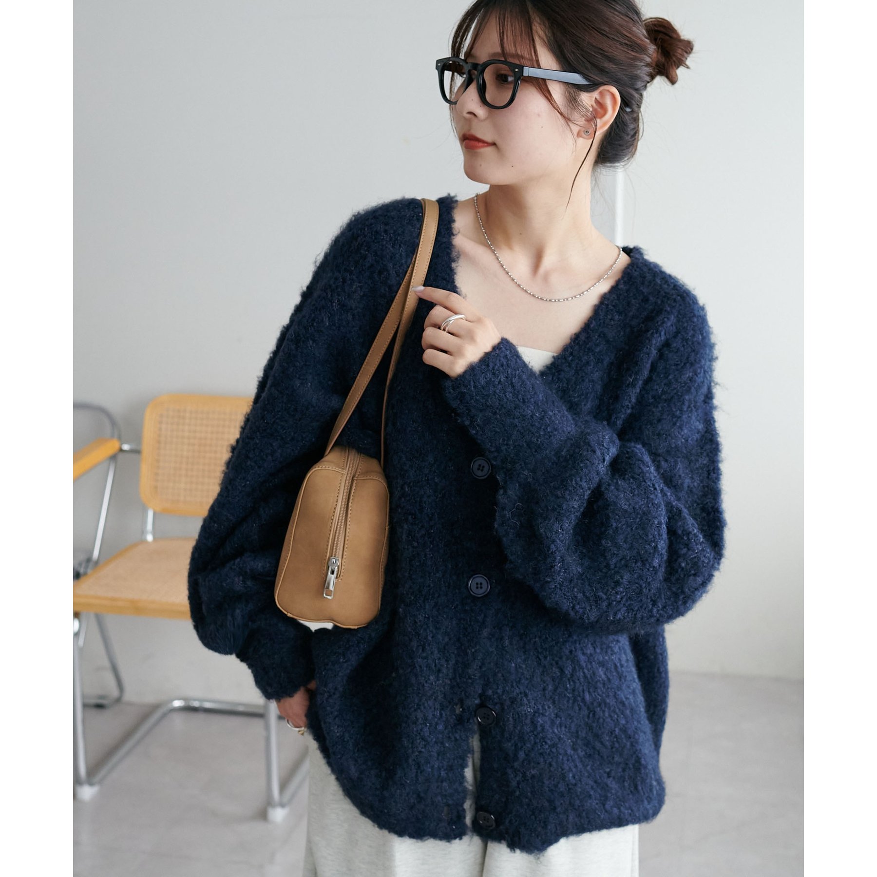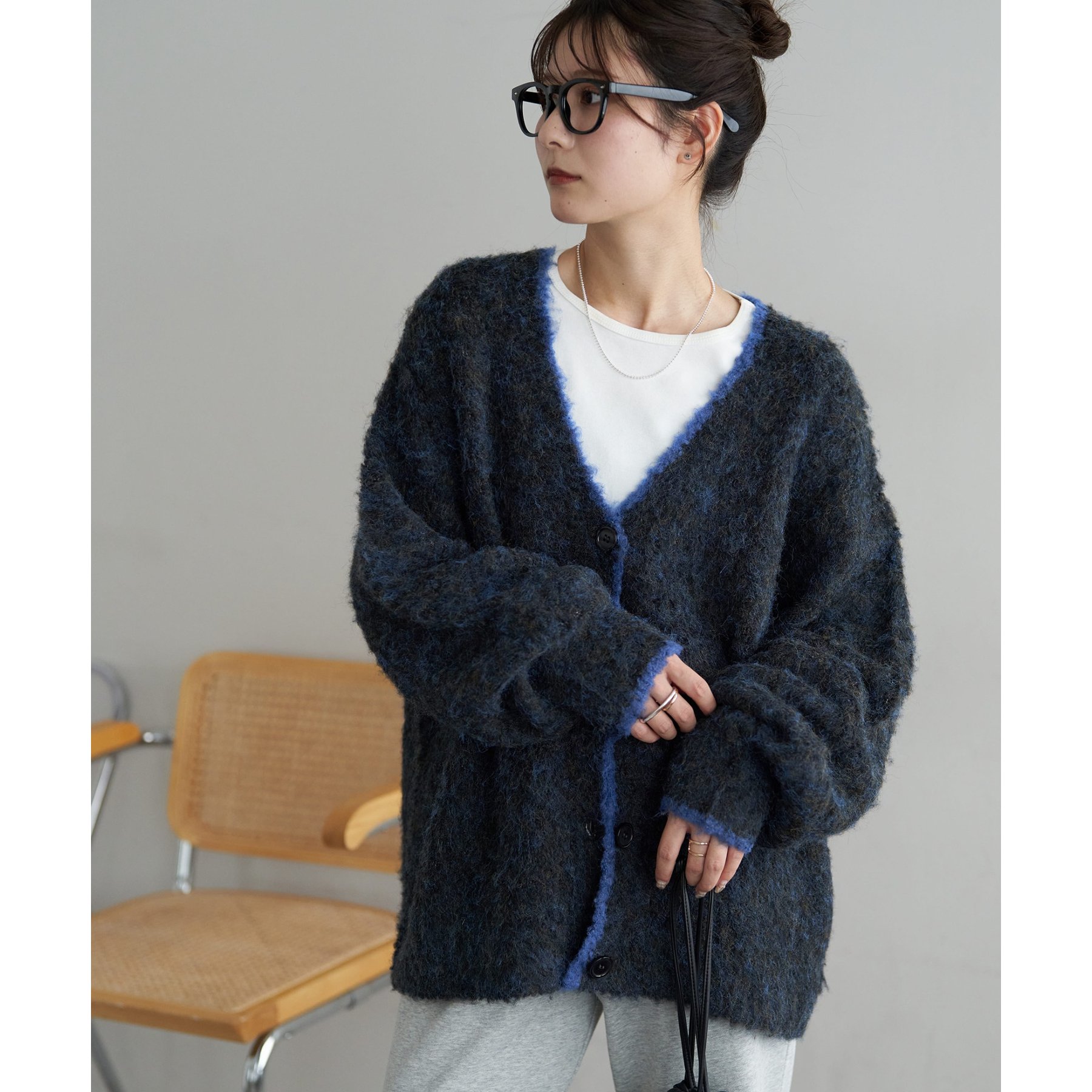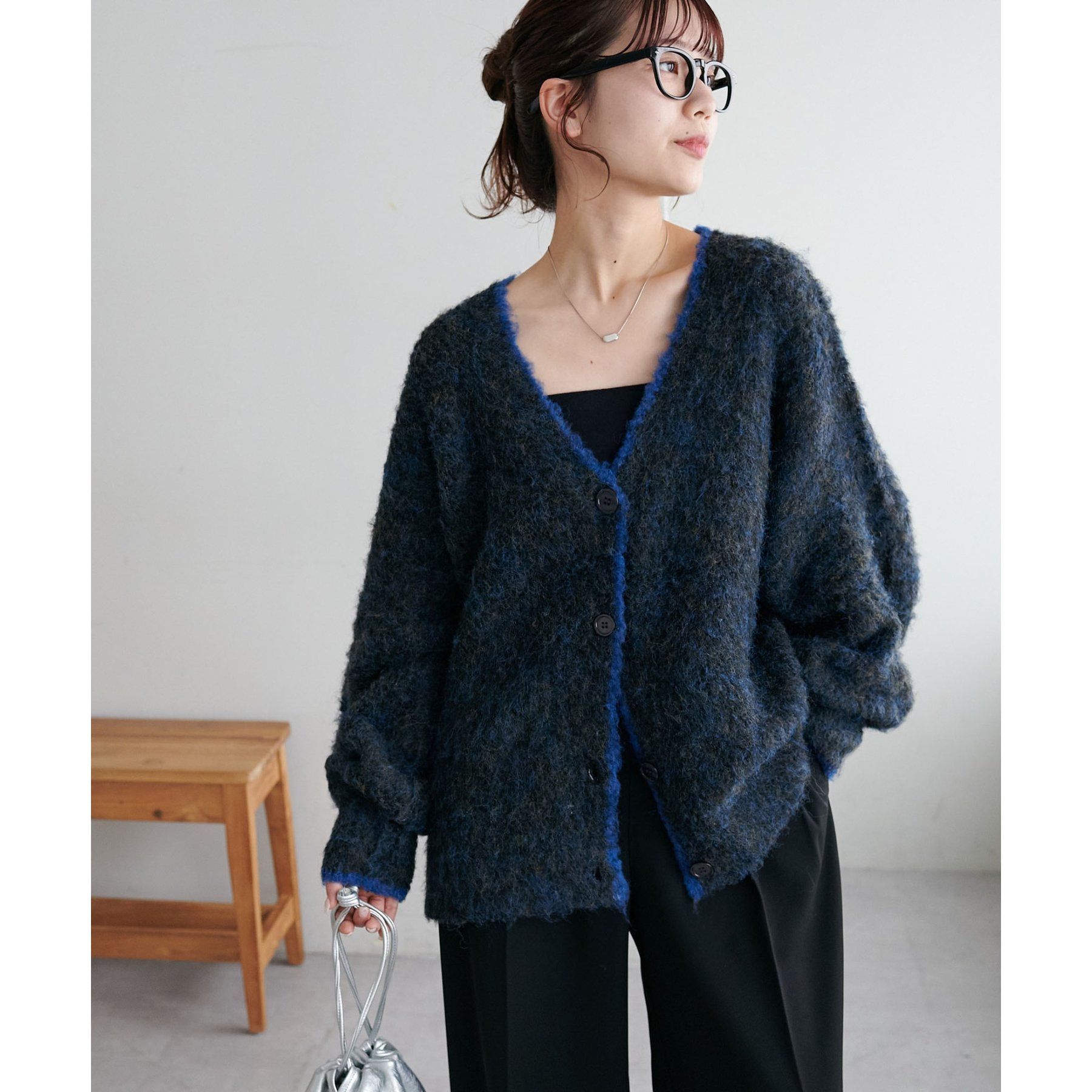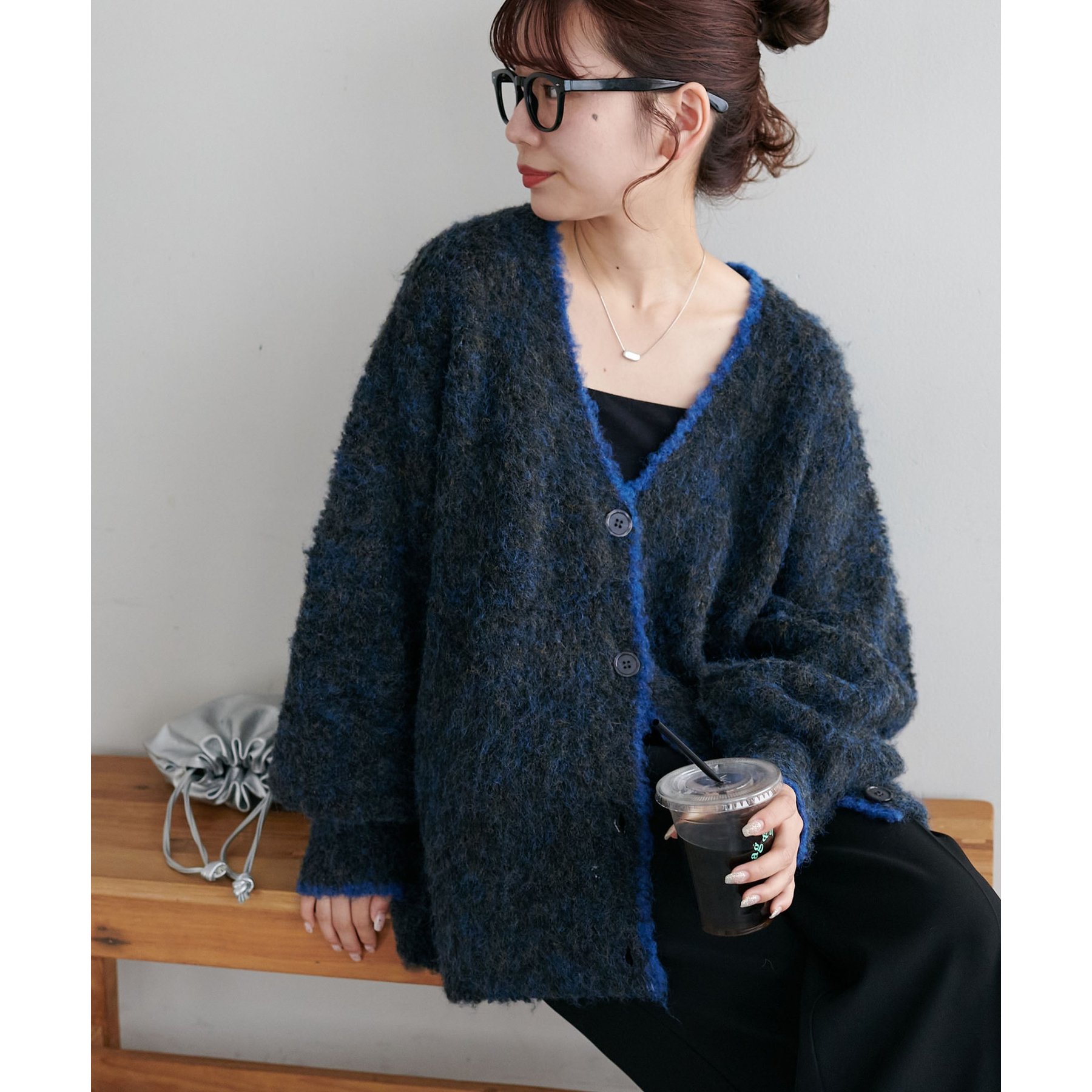 【新色追加!/WEB限定】MIXブークレシャギー配色Vネックカーディガン